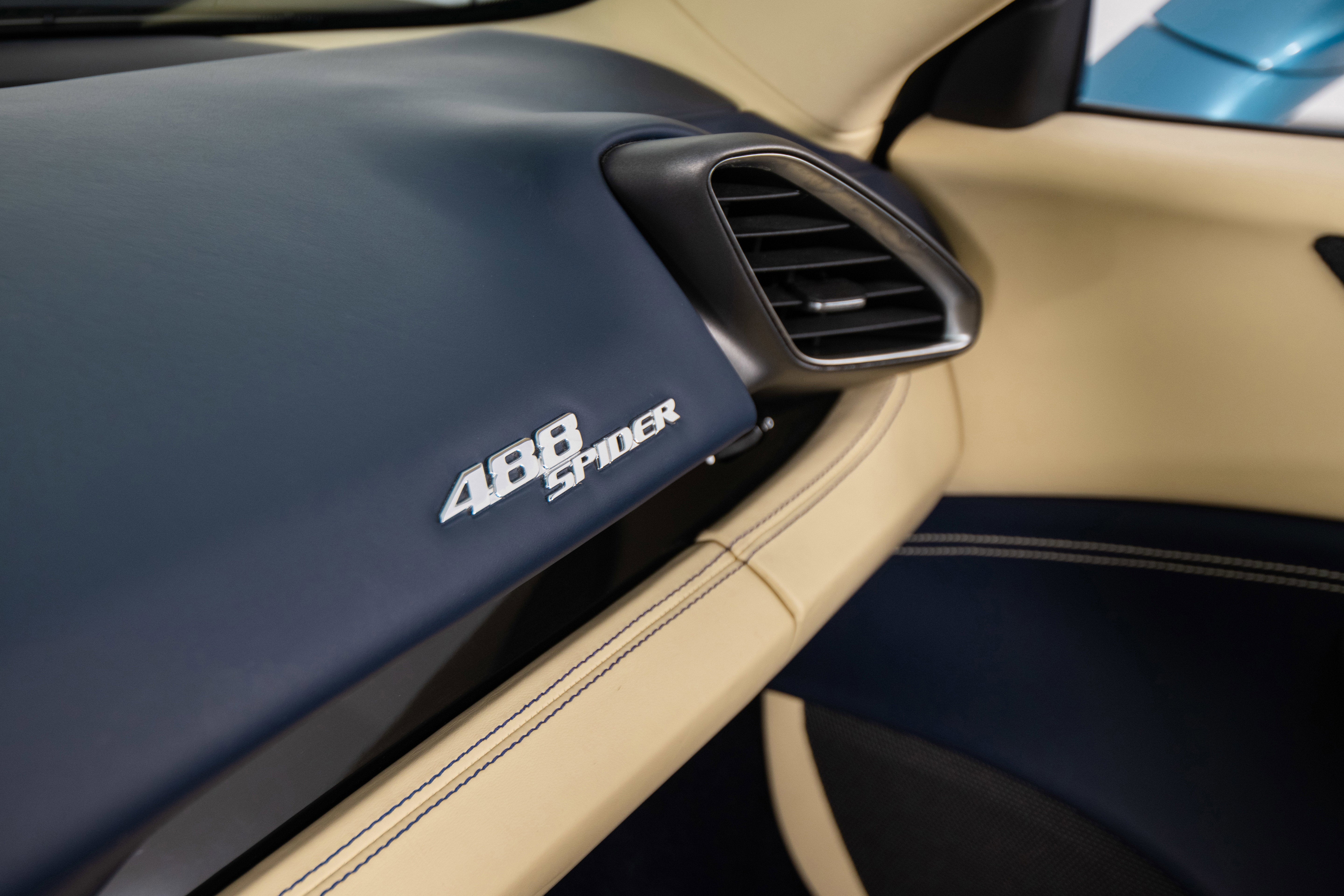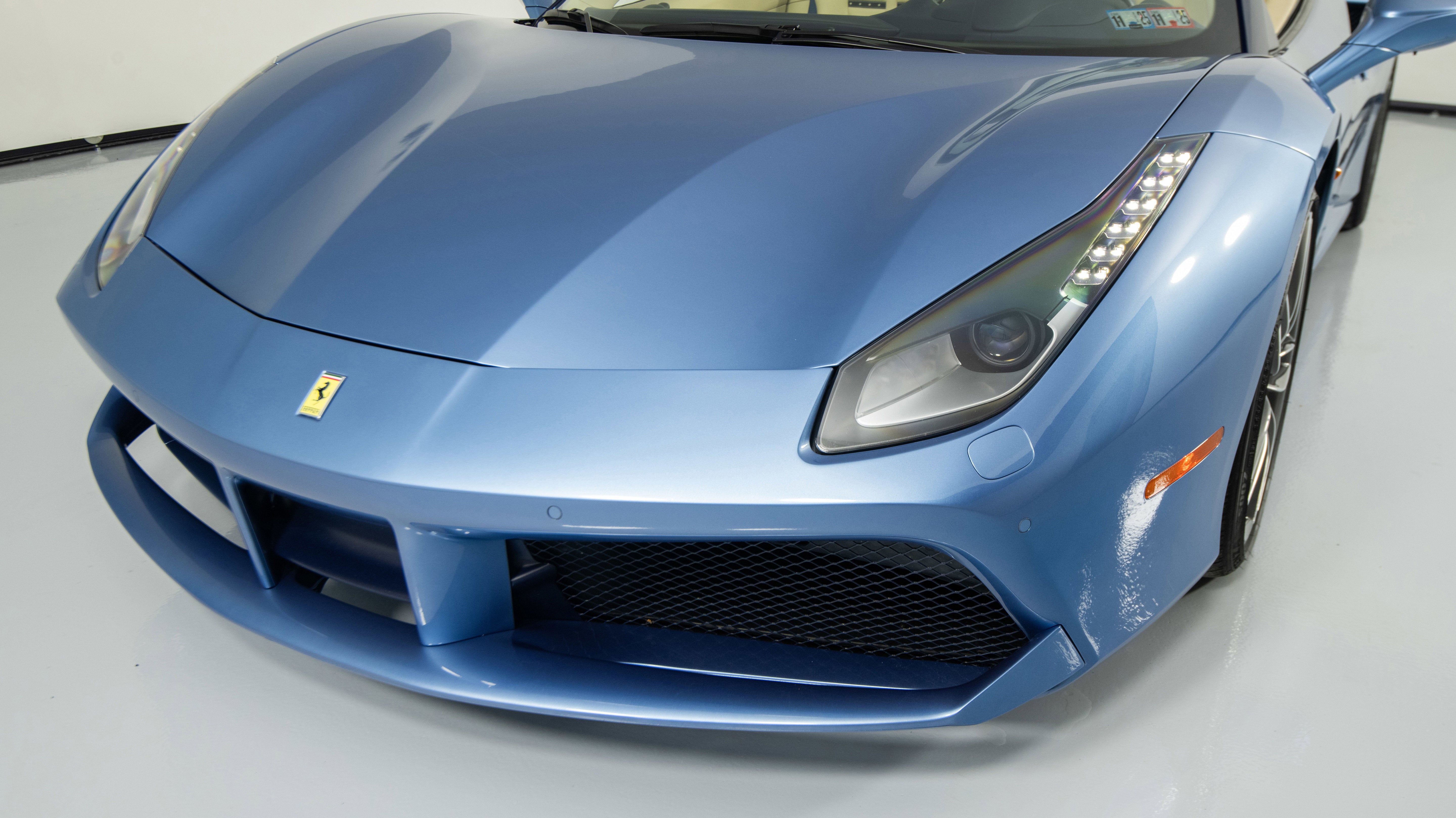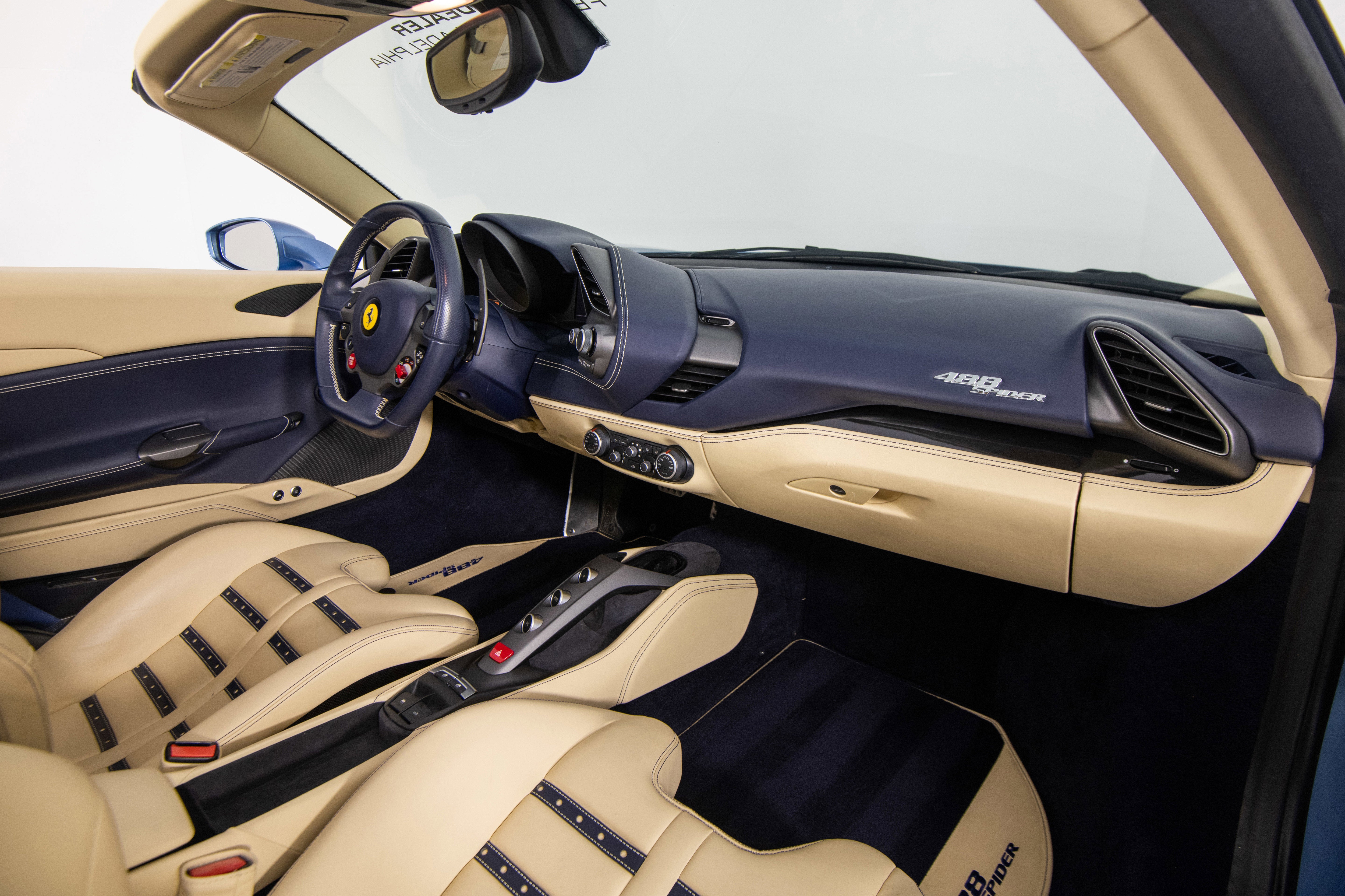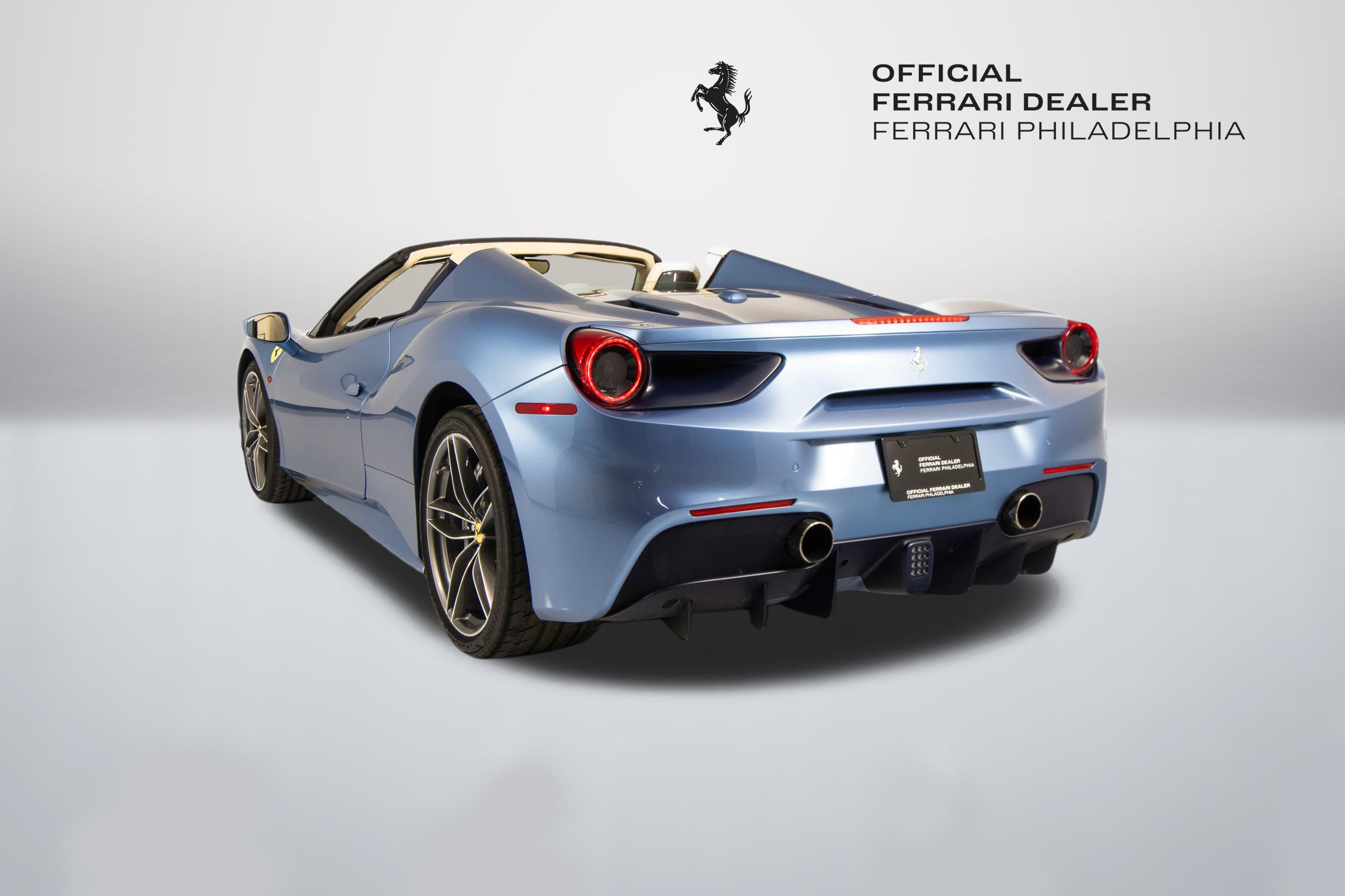 Ferrari Philadelphia is pleased to offer this 2017 Ferrari 488 Spider with only 16,479 miles. This vehicle is being sold under the Ferrari Certified Pre-Owned. The 488 Spider, among Ferrari's finest open-top sports cars, boasts performance of the first order 0-60mph in under 3 seconds, a sculptural design with superb aerodynamics, and an F1-inspired interior for a seamless relationship between car and driver. It's a car that enhances the pleasure of driving on any route. The exterior color of this Ferrari is hand-finished in Azzurro California complemented by a Crema leather interior. The options on this 488 Spider include: