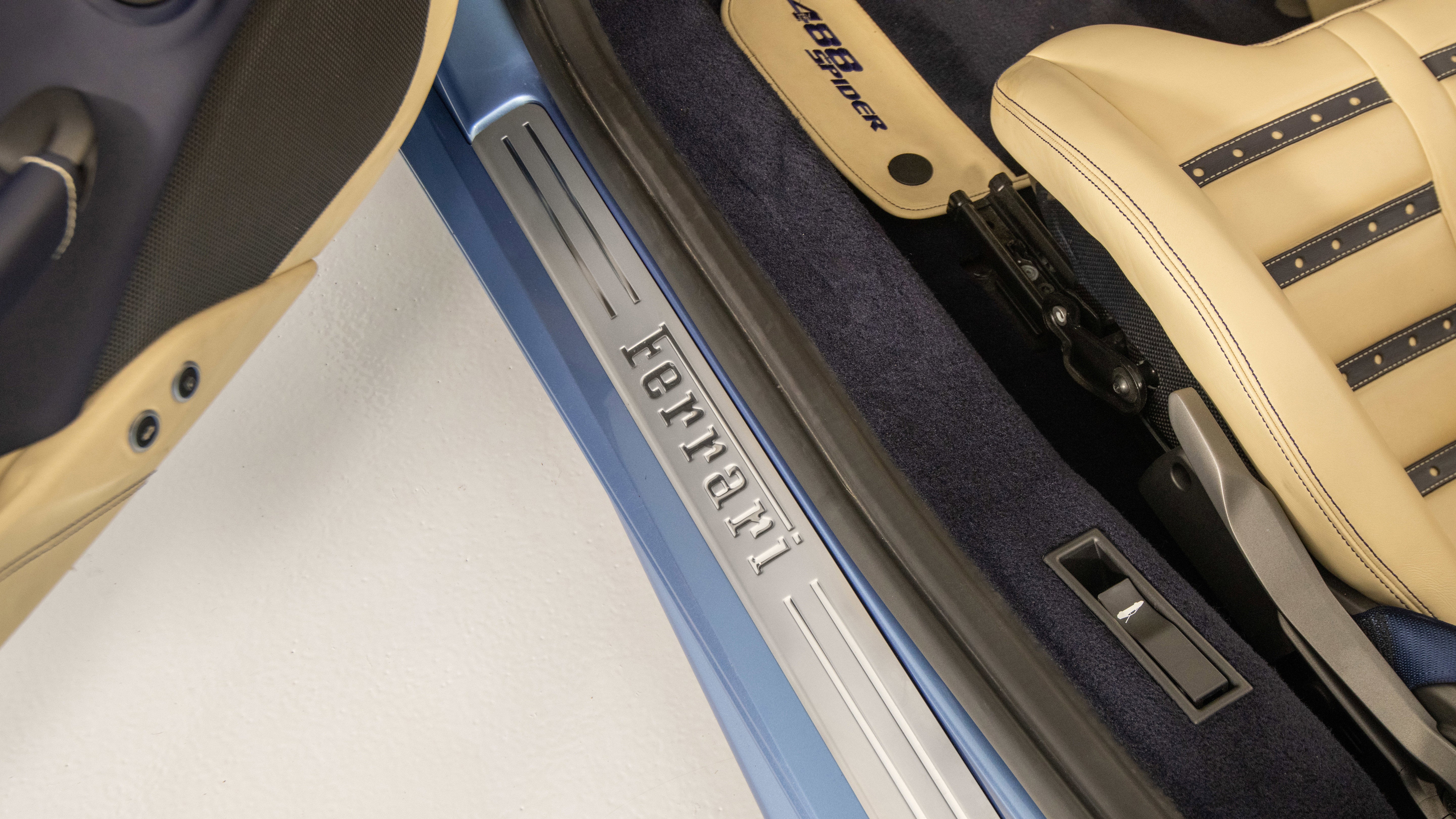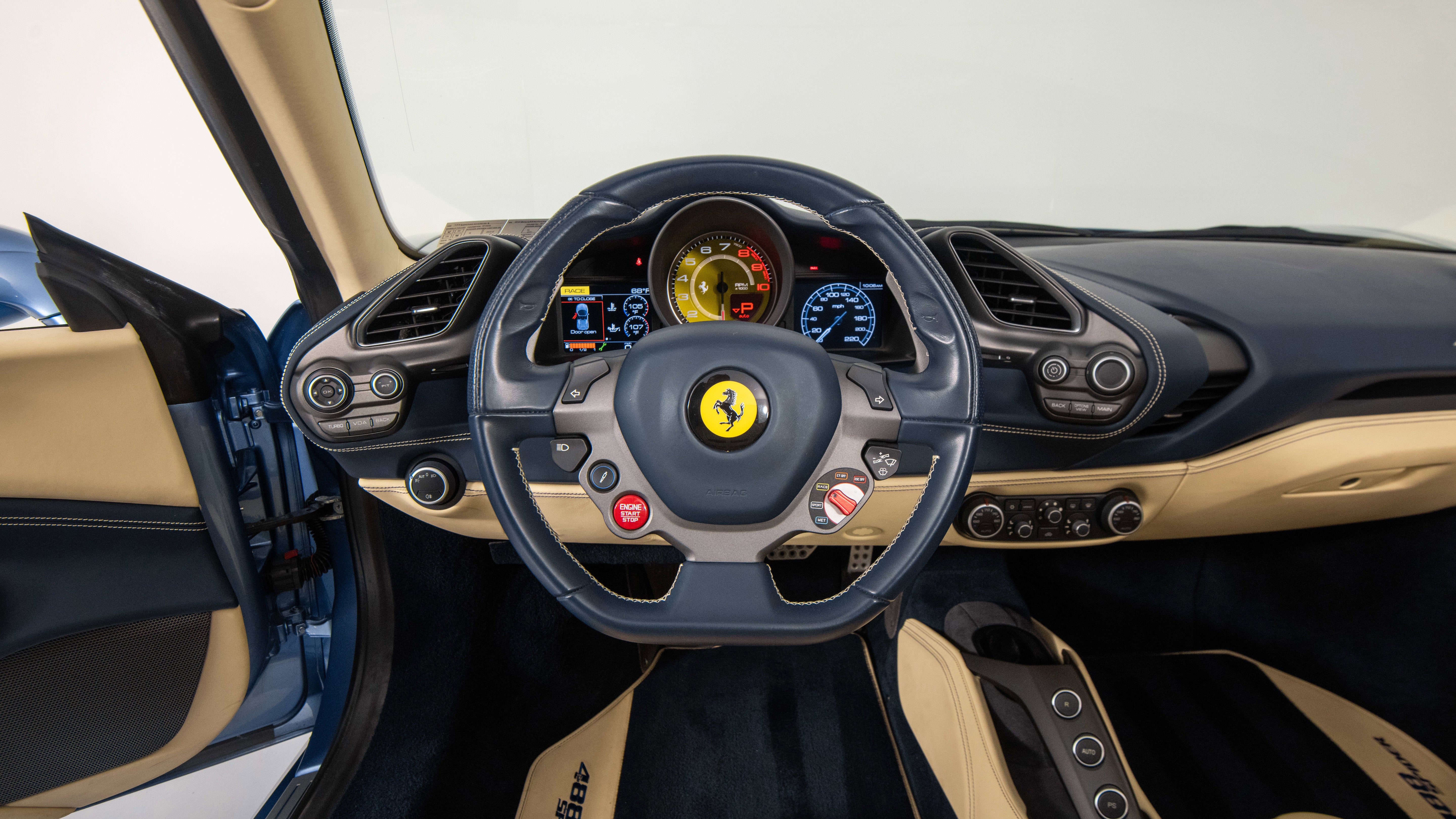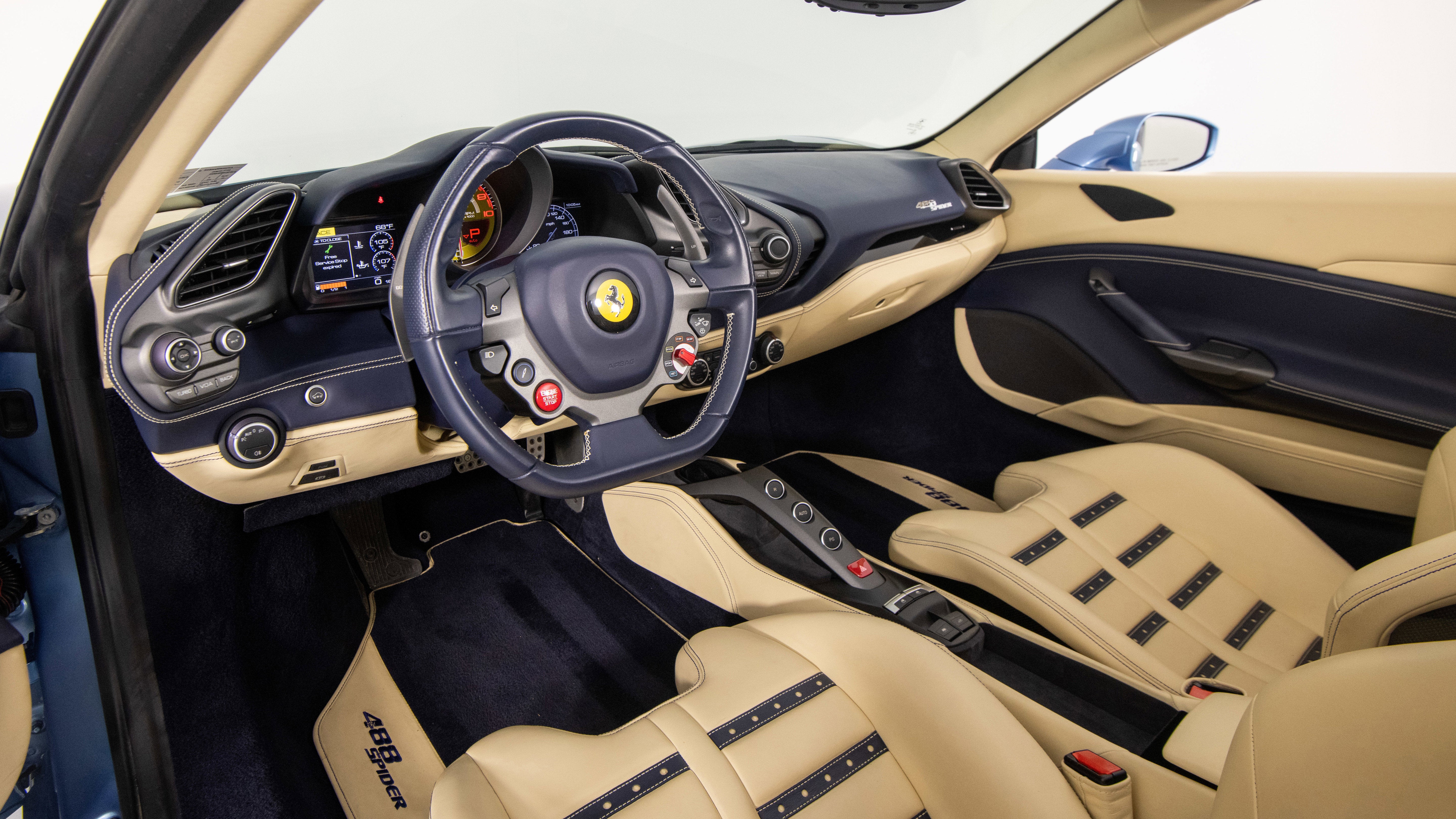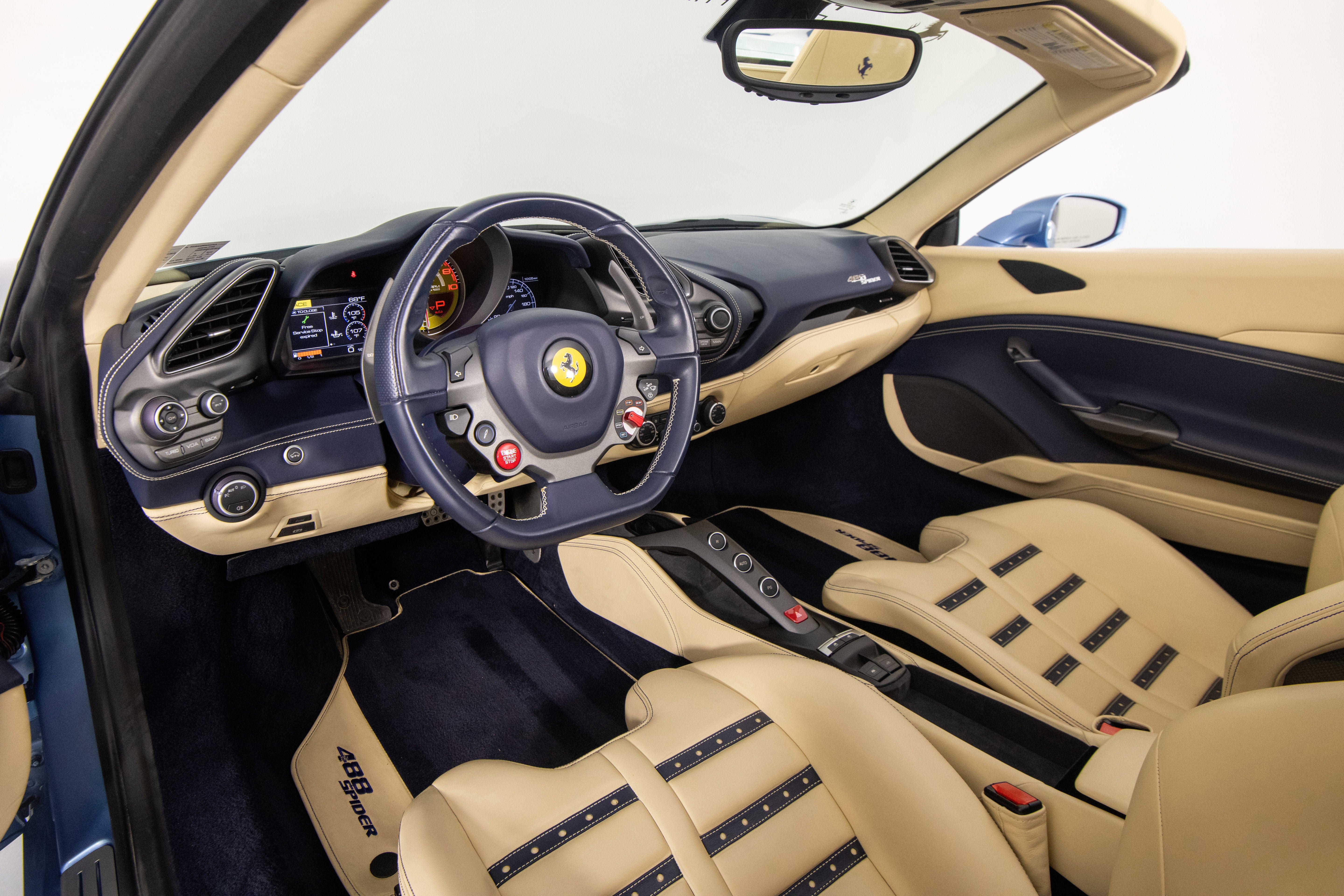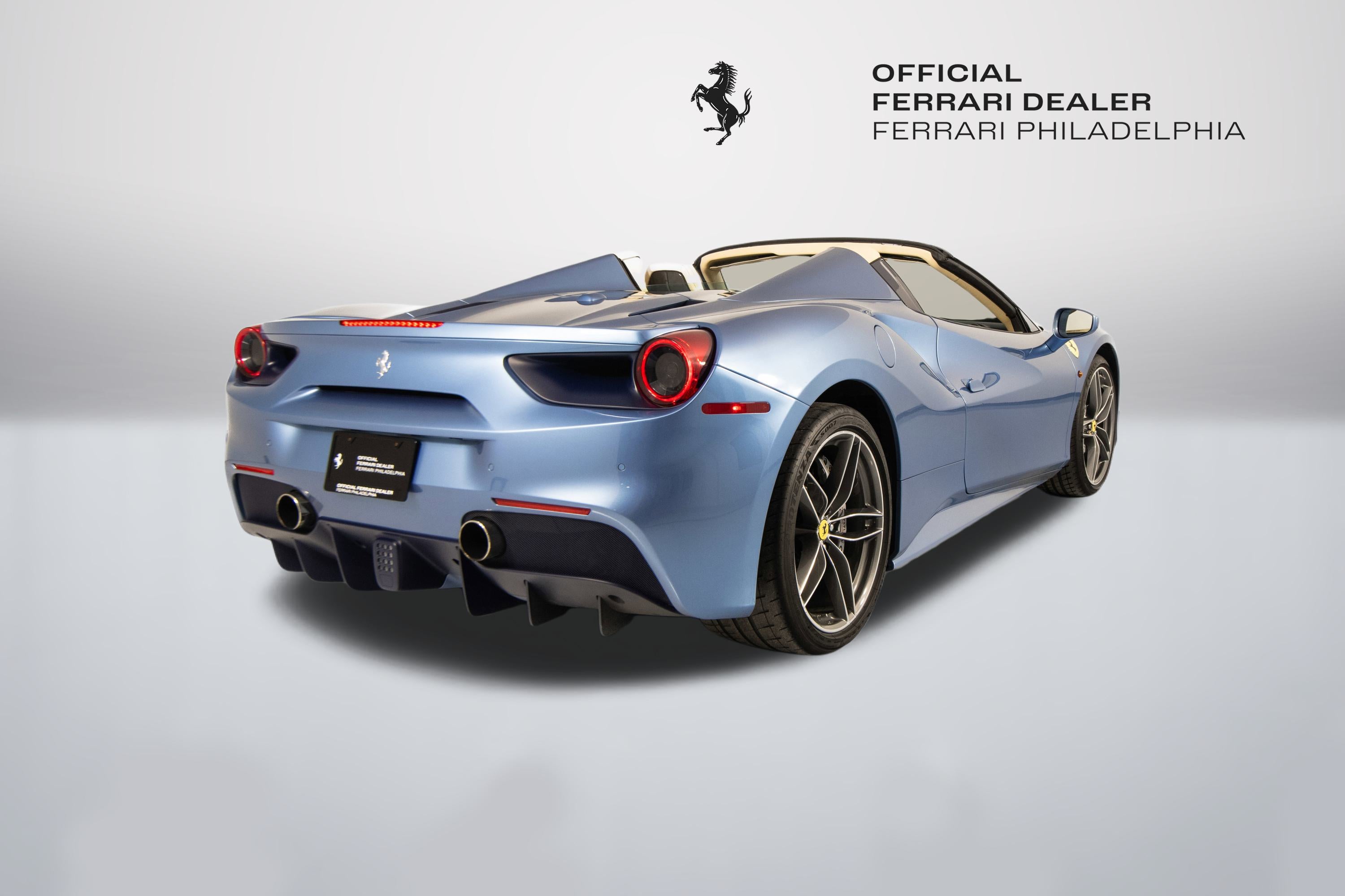 Ferrari Philadelphia is pleased to offer this 2017 Ferrari 488 Spider with only 16,479 miles. This vehicle is being sold under the Ferrari Certified Pre-Owned. The 488 Spider, among Ferrari's finest open-top sports cars, boasts performance of the first order 0-60mph in under 3 seconds, a sculptural design with superb aerodynamics, and an F1-inspired interior for a seamless relationship between car and driver. It's a car that enhances the pleasure of driving on any route. The exterior color of this Ferrari is hand-finished in Azzurro California complemented by a Crema leather interior. The options on this 488 Spider include: