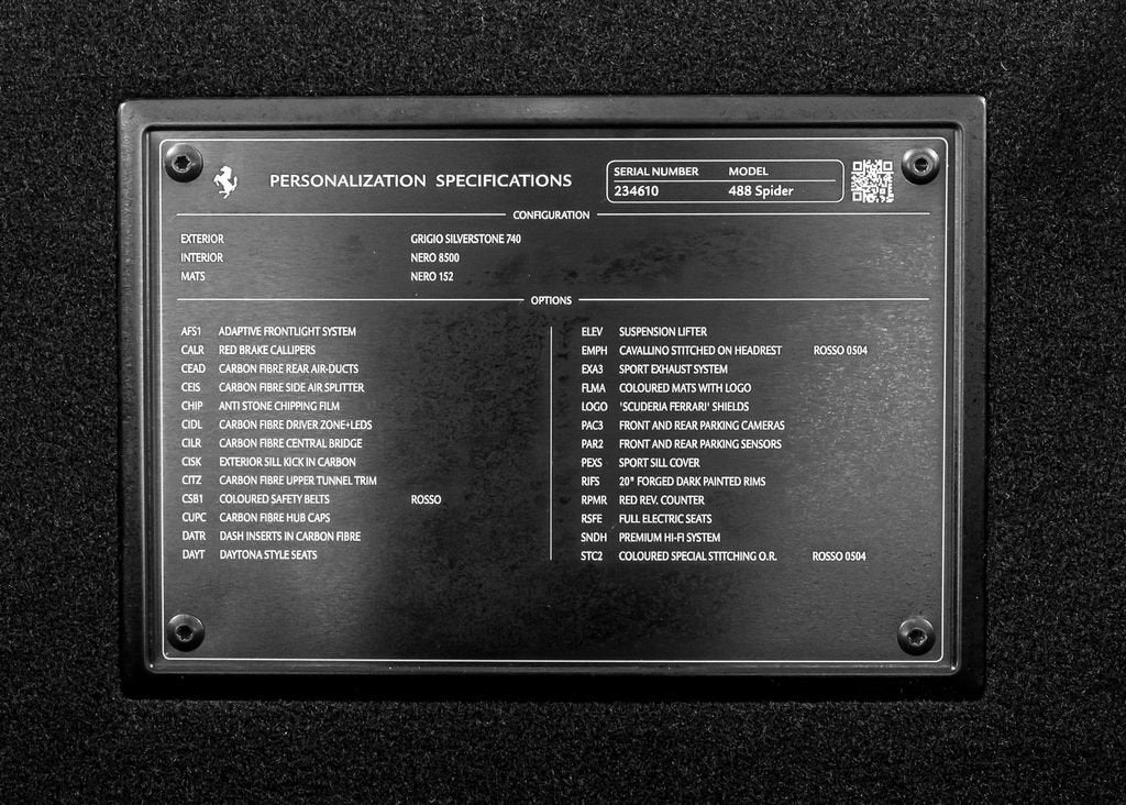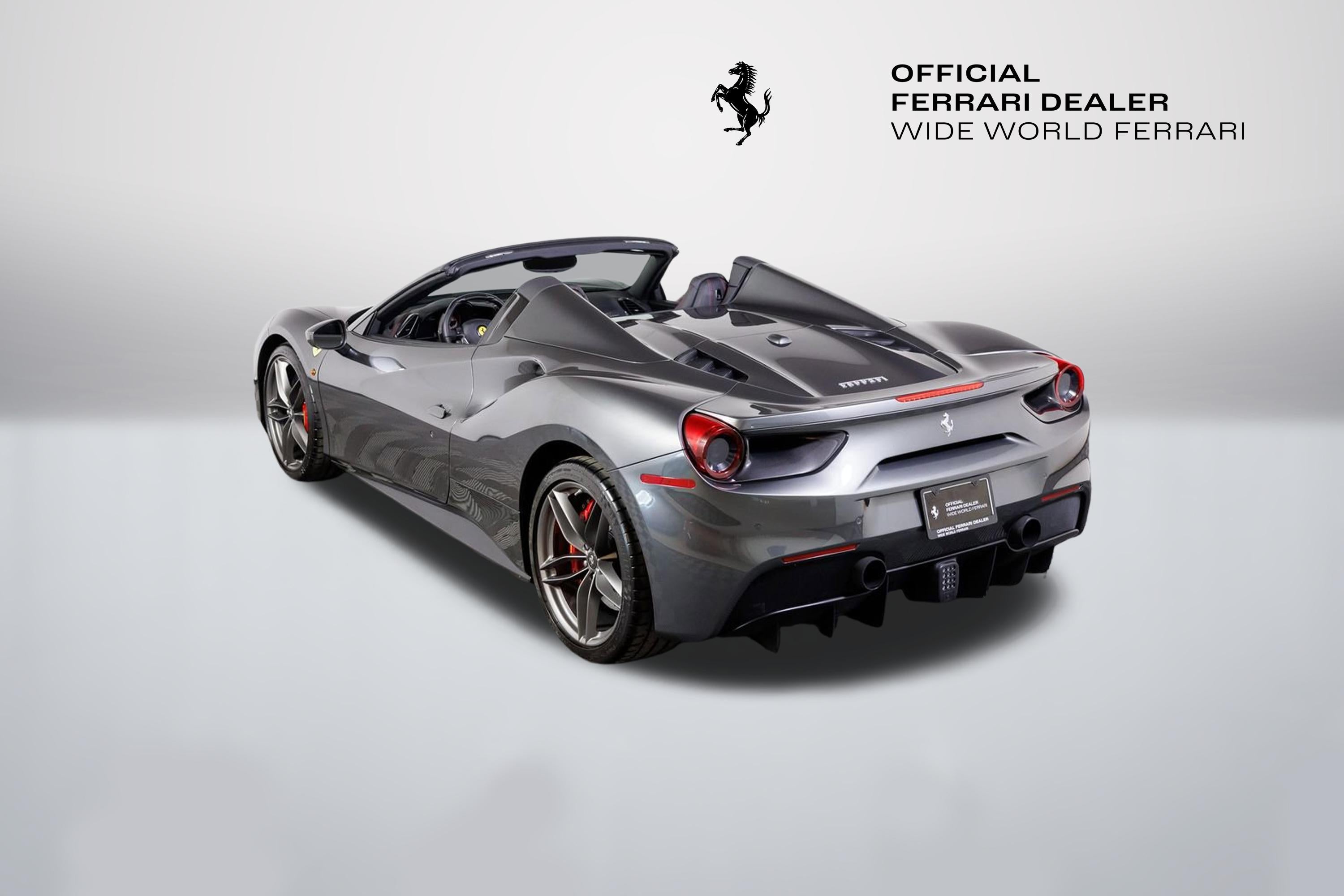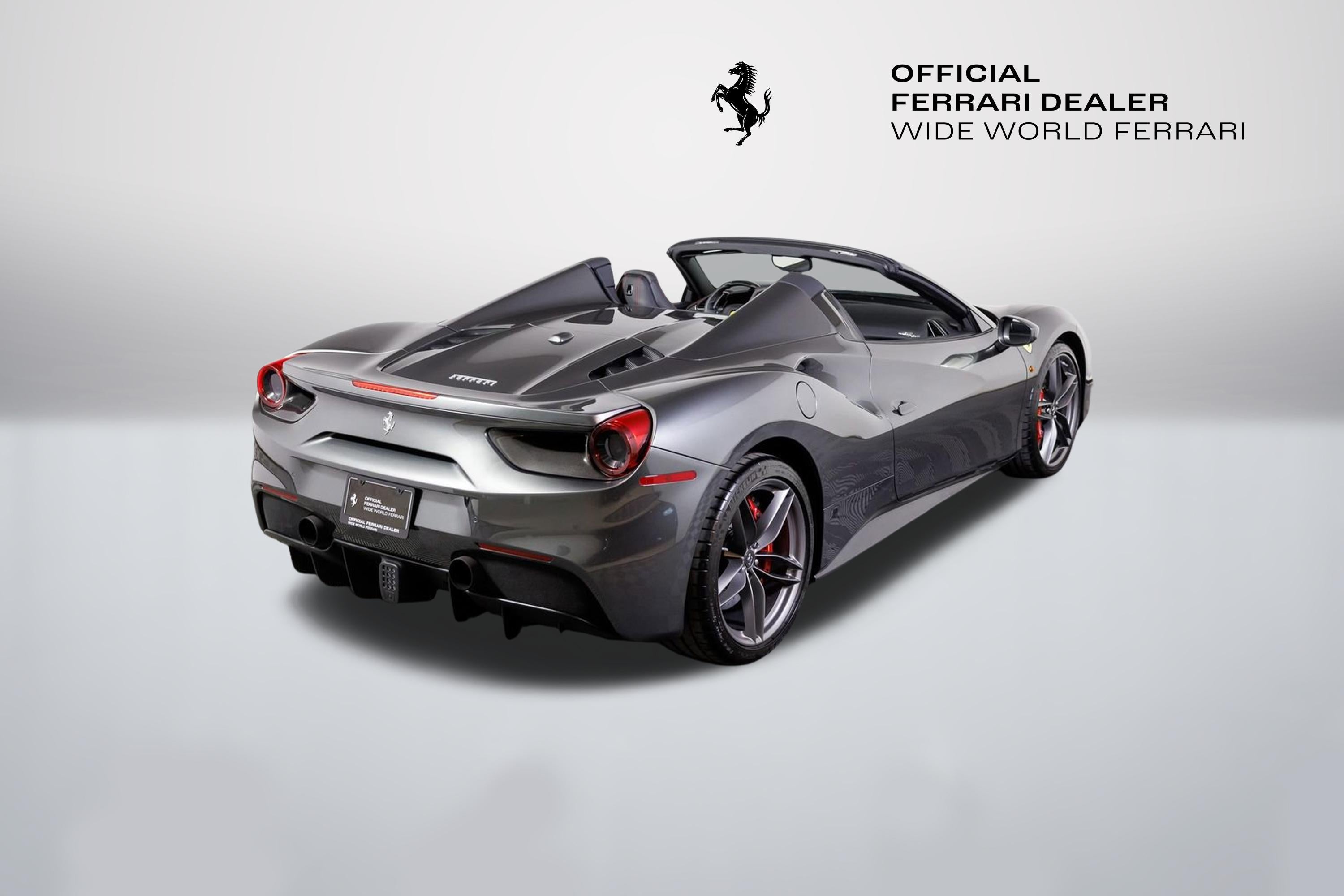 SALE PENDING! Wide World Ferrari is proud to present this exceptionally well-preserved Ferrari 488 Spider, a stunning example showing just 1,610 miles and accompanied by a clean Carfax. Finished in a sophisticated and highly desirable specification, this 488 Spider pairs unmistakable Ferrari performance with a beautifully curated carbon fibre-laden configuration, delivering open-air exhilaration with unmistakable Italian presence. Finished in elegant Grigio Silverstone over Nero, this example offers a refined yet purposeful take on Ferraris turbocharged V8 masterpiece. Rosso Corsa brake calipers provide a striking contrast behind the 20 forged wheels finished in matte Grigio Corsa, while the Scuderia Ferrari shields proudly displayed on the fenders pay homage to the brands legendary racing pedigree. Carbon fibre rear air intakes, carbon fibre lateral air intake splitters, and a carbon fibre exterior sill plate enhance both aerodynamics and visual aggression. Additional details such as carbon fibre wheel centre caps, sports external sill trim panels, and aggressive sports tailpipe tips complete the exterior with unmistakable motorsport intent. Inside, the driver-focused cockpit is equally compelling. Daytona-style seats in Nero are beautifully accented by special Rosso stitching, Rosso seat belts, and embroidered Cavallino headrests in Rosso, creating a dramatic and cohesive interior theme. A red tachometer dial face commands attention at the center of the instrument cluster, reinforcing the cars sporting character. Extensive carbon fibre appointments, including the carbon fibre driver zone with LED shift indicators on the steering wheel, carbon fibre centre console, carbon fibre dashboard accents, and carbon fibre upper tunnel trim, immerse the driver in a true Formula 1inspired environment. Full-electric seats provide comfort and adjustability, while overmats with the embroidered vehicle logo add a bespoke finishing touch. Technology and convenience are thoughtfully specified, including the Adaptive Frontlight System for enhanced nighttime visibility, a front suspension lift for added practicality, and both front and rear parking cameras with front parking sensors for confident maneuvering. A Premium Hi-Fi system ensures the soundtrack is as refined as the engine note when desired. Additionally, the car is Ferrari Approved and eligible for up to a 2-year Ferrari Certification warranty (available at an additional charge). Currently benefits from an active warranty September 2027. As the only 4-Time Cavallino Winning Ferrari Center in the tri-state area and one of the first Ferrari Centers in North America, we pride ourselves on exceptional service. We assist with all aspects of your purchase, including trade-ins, shipping, registration, non-reported financing, and customizations. Conveniently located in Rockland County, just under 30 miles from Manhattan. For more information, email us at ferrarivip@newcountry.com or call 845-682-0129.