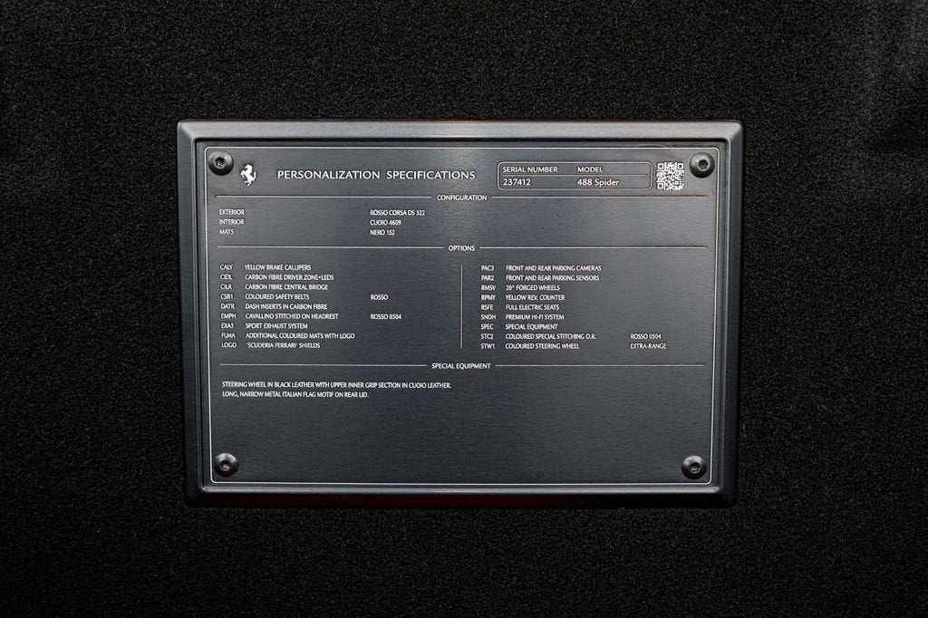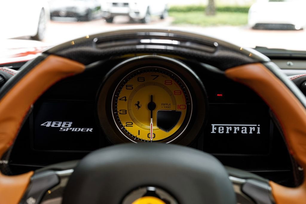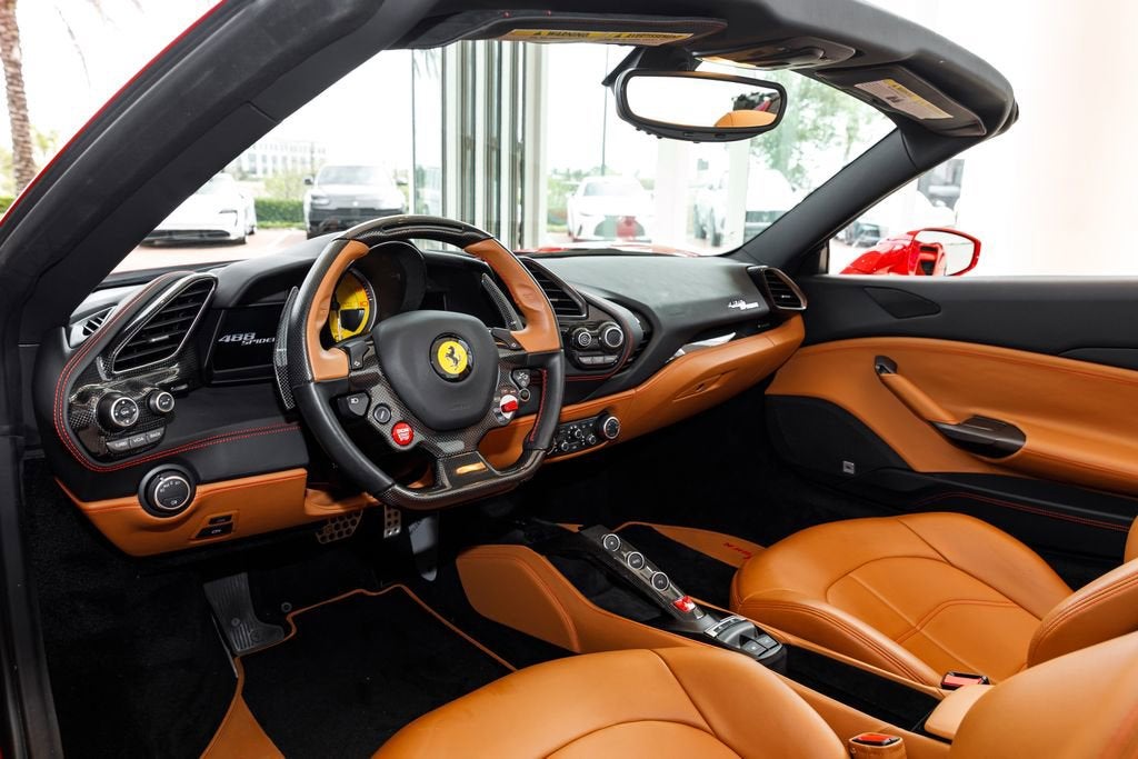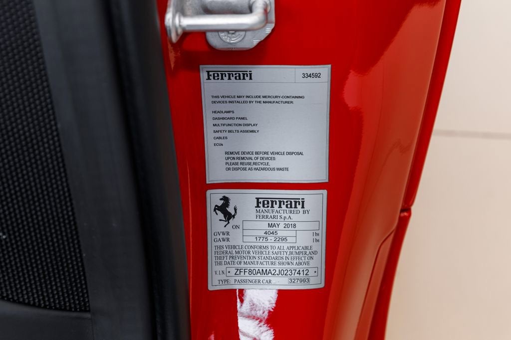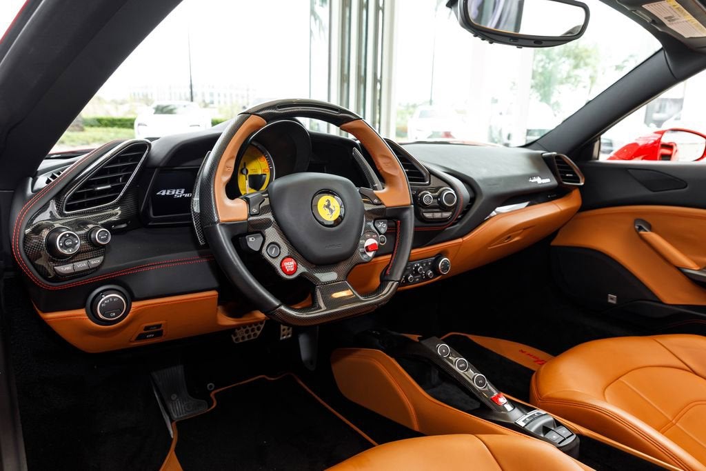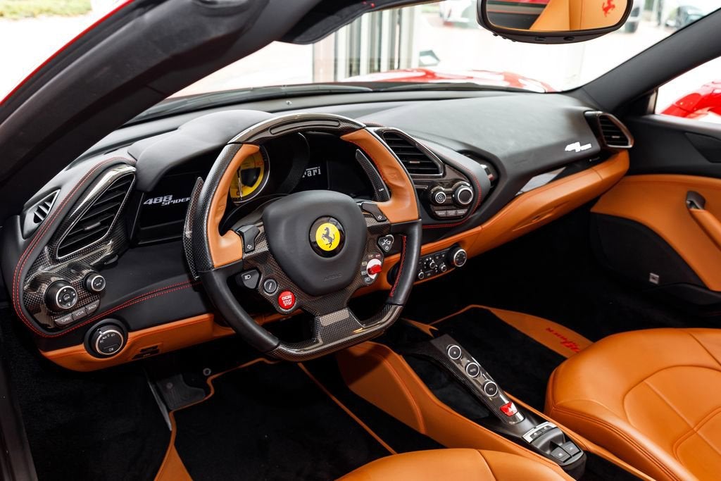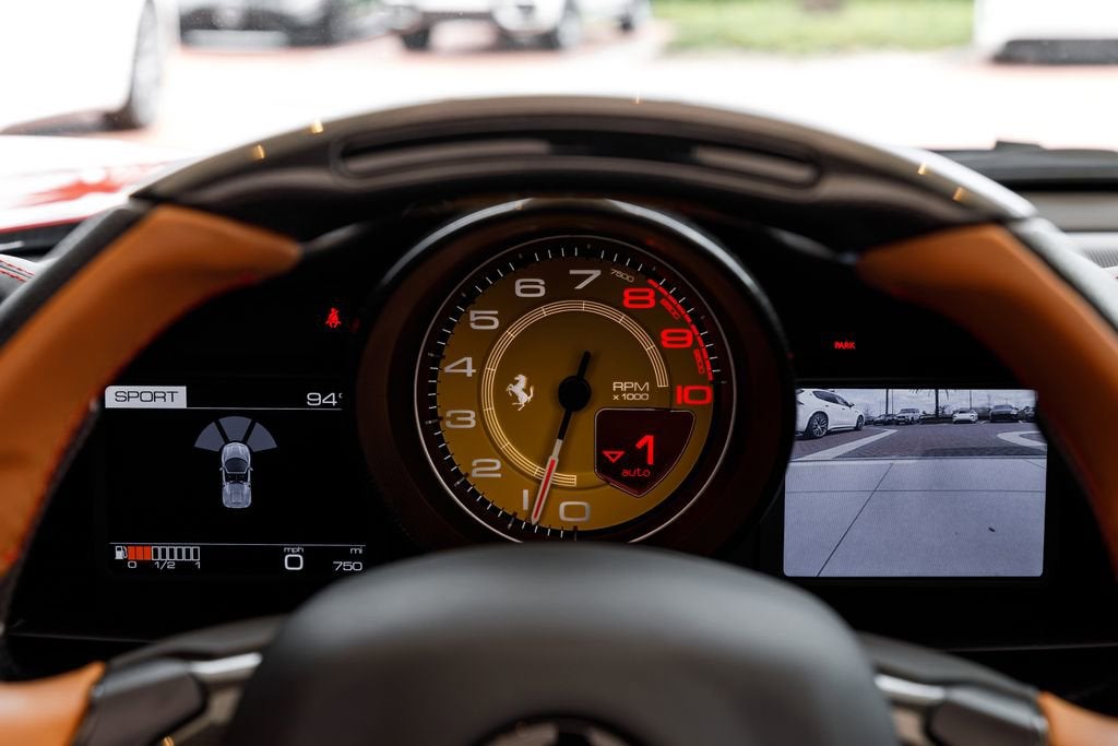 Factory options: Exterior Color - Rosso Corsa Interior Color - Cuoio Carpet Color - Nero -Giallo Modena Brake Calipers -Scuderia Ferrari Shields on Fenders -20" Forged Wheels with Chrome Finish -Sports Tailpipe Tips -Carbon Fiber Driver Zone with LED Shift Indicators -Carbon Fiber Center Console -Carbon Fiber Dashboard Accents -Colored Seat Belts -Embroidered Cavallino Emblem on Headrests -Overmats with Embroidered Vehicle Logo -Yellow Tachometer Dial Face -Full Electric Seats -Special Stitching in Customers Choice Color -Leather Steering Wheel in Customers Choice Color -Front and Rear Parking Cameras -Front Parking Sensors -Premium Hi-Fi System For more information or to schedule a test drive, contact us today!