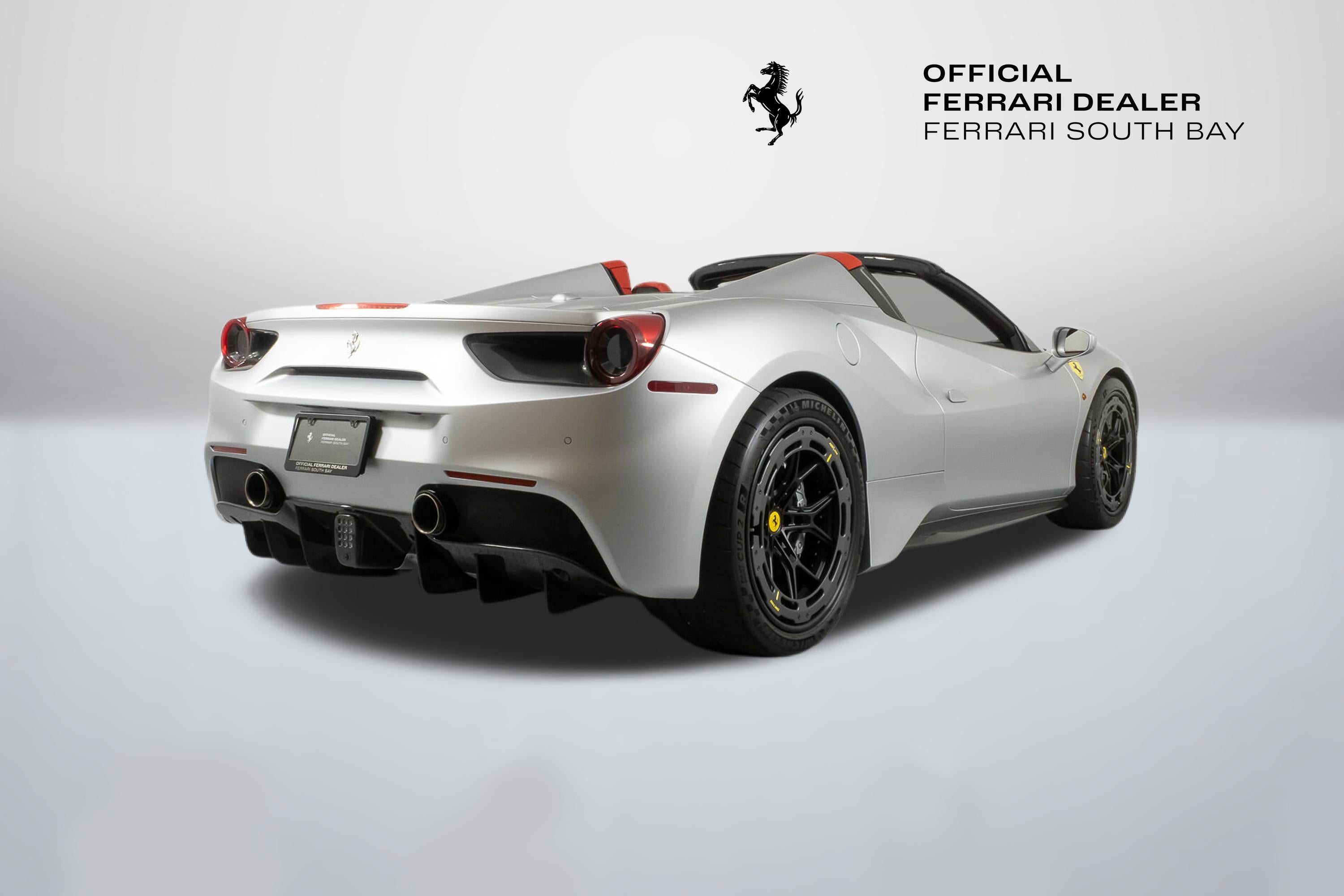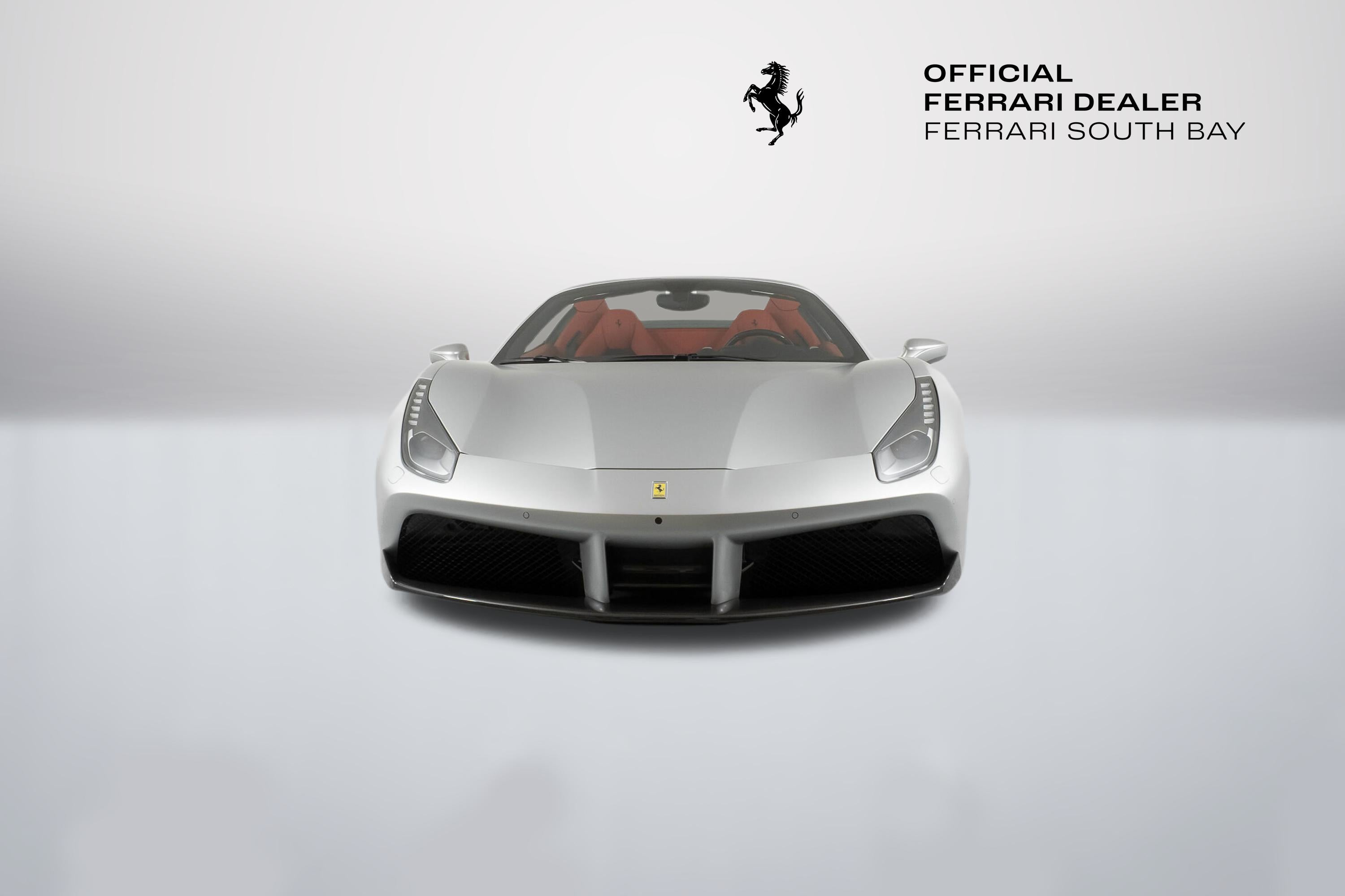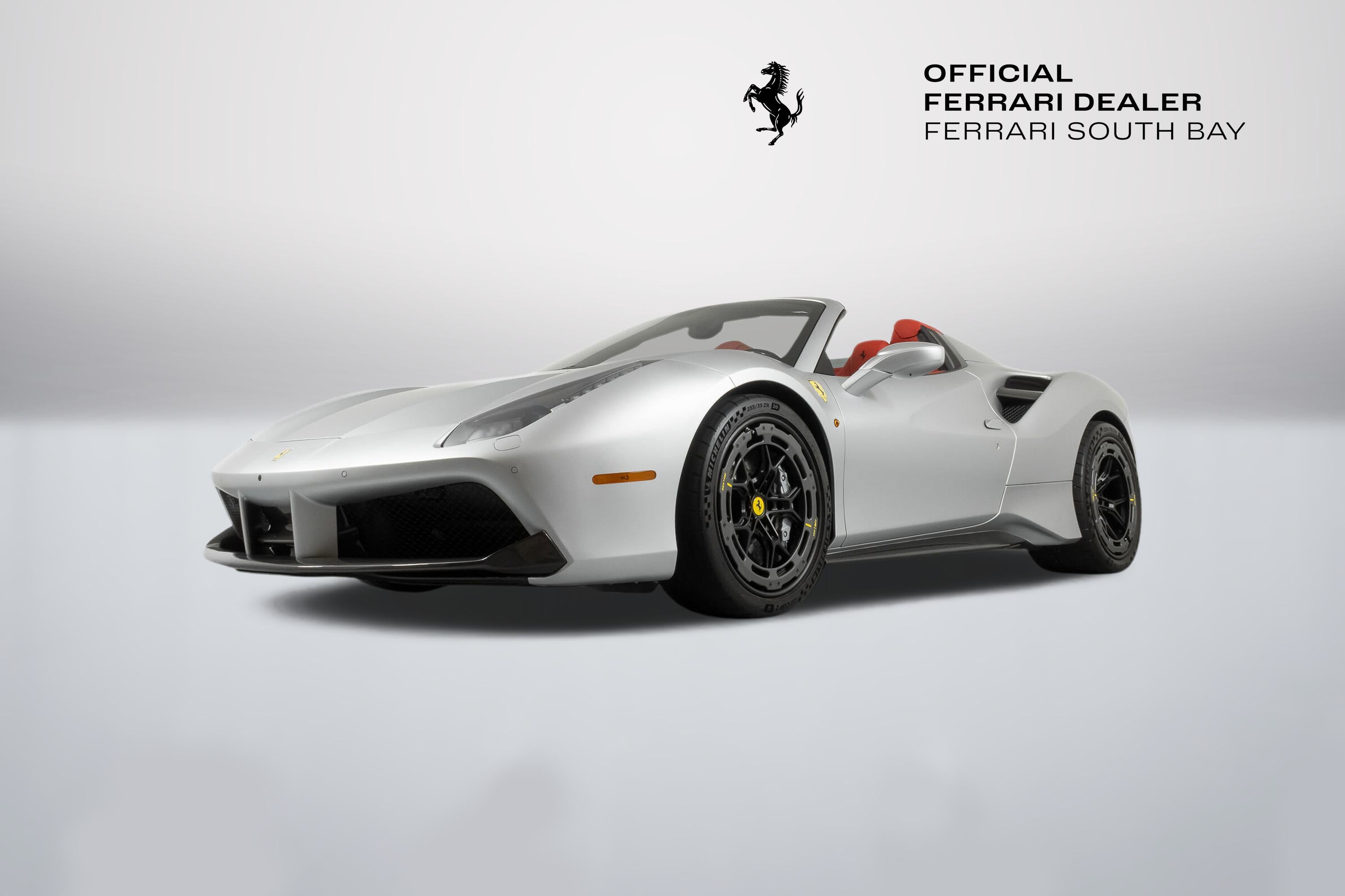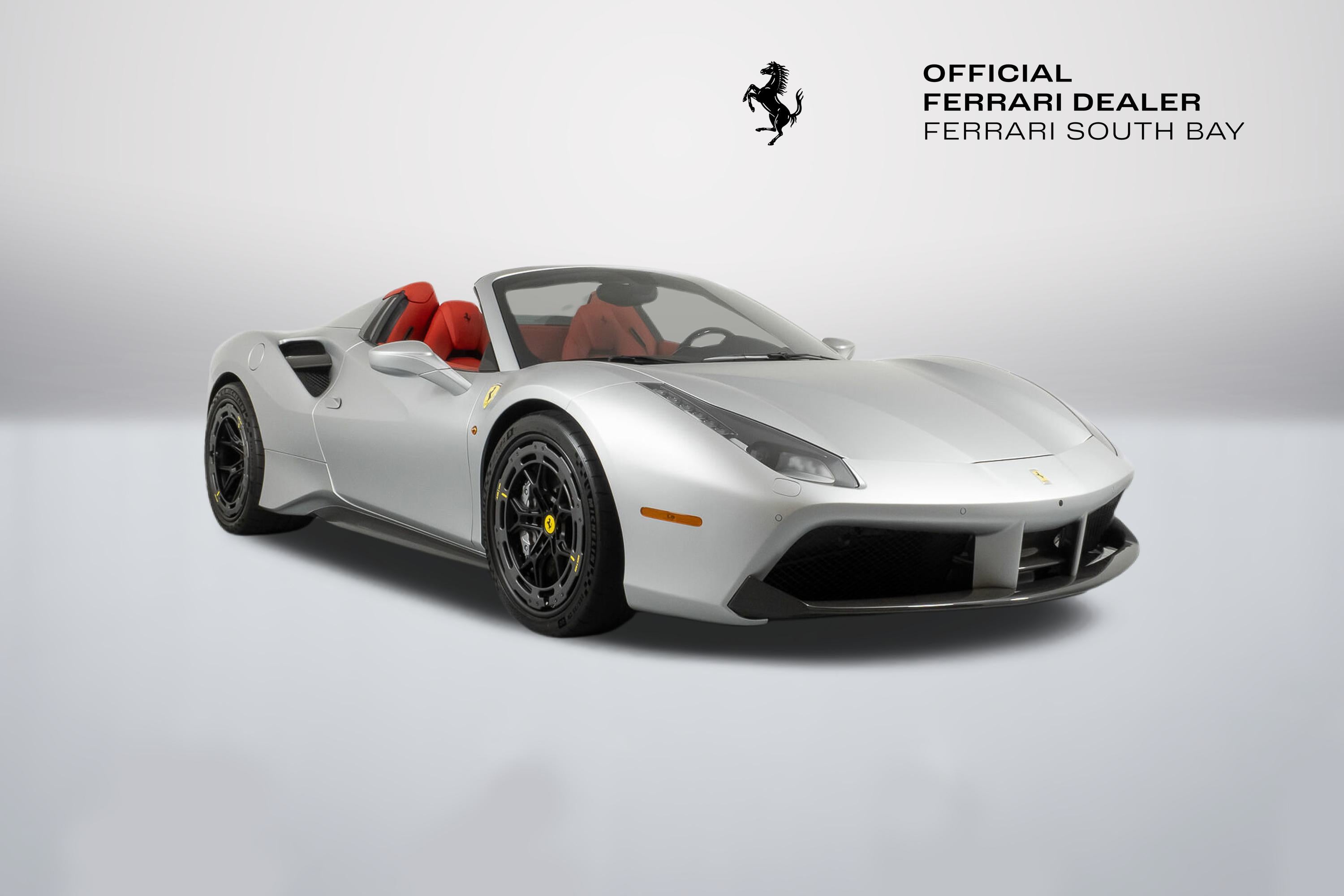 Ferrari South Bay is thrilled to offer this spectacular 488 Spider, finished in Brilliant Argento Nurburgring (protected by an impeccable satin PPF) with Rosso Ferrari Leather. The previous owner fit many pieces of Genuine Ferrari Carbon Fiber, as well as custom wheels and a custom exhaust to create a truly SMKY 488 488 Spider! The exterior is finished in Argento Nurburgring, and has been covered with full body satin PPF to create a very technical, very sophisticated look. The car was fitted with Factory Carbon Fiber on the Rear Air Ducts, B-Pillar Trim and Side Air Splitter; the previous owner added Genuine Ferrari Carbon Fiber Underdoor Covers, Rear Diffuser, Front Splitter and Taillight Buckets. The wheels are custom cut and feature the car's name: SMKY 488 machined into the face and highlighted in yellow. The car's exhaust system was supplied by Akropovic and adds not only a powerful audio punch, but a visually arresting one as well, given the size of the exhaust pipes out back! The Interior of this 488 Spider is trimmed with Rosso Ferrari Leather, accented with Nero Stitching (including the Cavallinos Embroidered onto the Headrests of the Fully-Electric Seats). Carbon Fiber finishes the Dash Inserts, Central Bridge and Driver's Zone, including the F1 Paddles and Steering Wheel (which is fitted with Ferrari's LED Shift Lights). The Vehicle Lifter, Front and Rear Parking Cameras and Sensors simplify tight maneuvers. Apple Car play is a welcome convenience and pairs nicely with the JBL Premium Audio System. This 488 Spider is offered complete with both keys, tools, battery tender and cover. Ferrari's Power15 Warranty is in place through March 21, 2027, and Ferrari Genuine Maintenance handles annual servicing until then as well. If you'd like to know more about this sensational 488 Spider, please contact one of our knowledgeable sales staff. Ferrari South Bay is proudly part of Holand Automotive Group, one of North America’s leading luxury automotive retailers. We offer nationwide shipping, trade-in opportunities, financing, client consignments, and world-class delivery service. Contact us today to explore ownership of this remarkable Ferrari. Please visit us at 23305 Hawthorne Blvd, Torrance, CA 90505, or call us at (888) 578-8767.