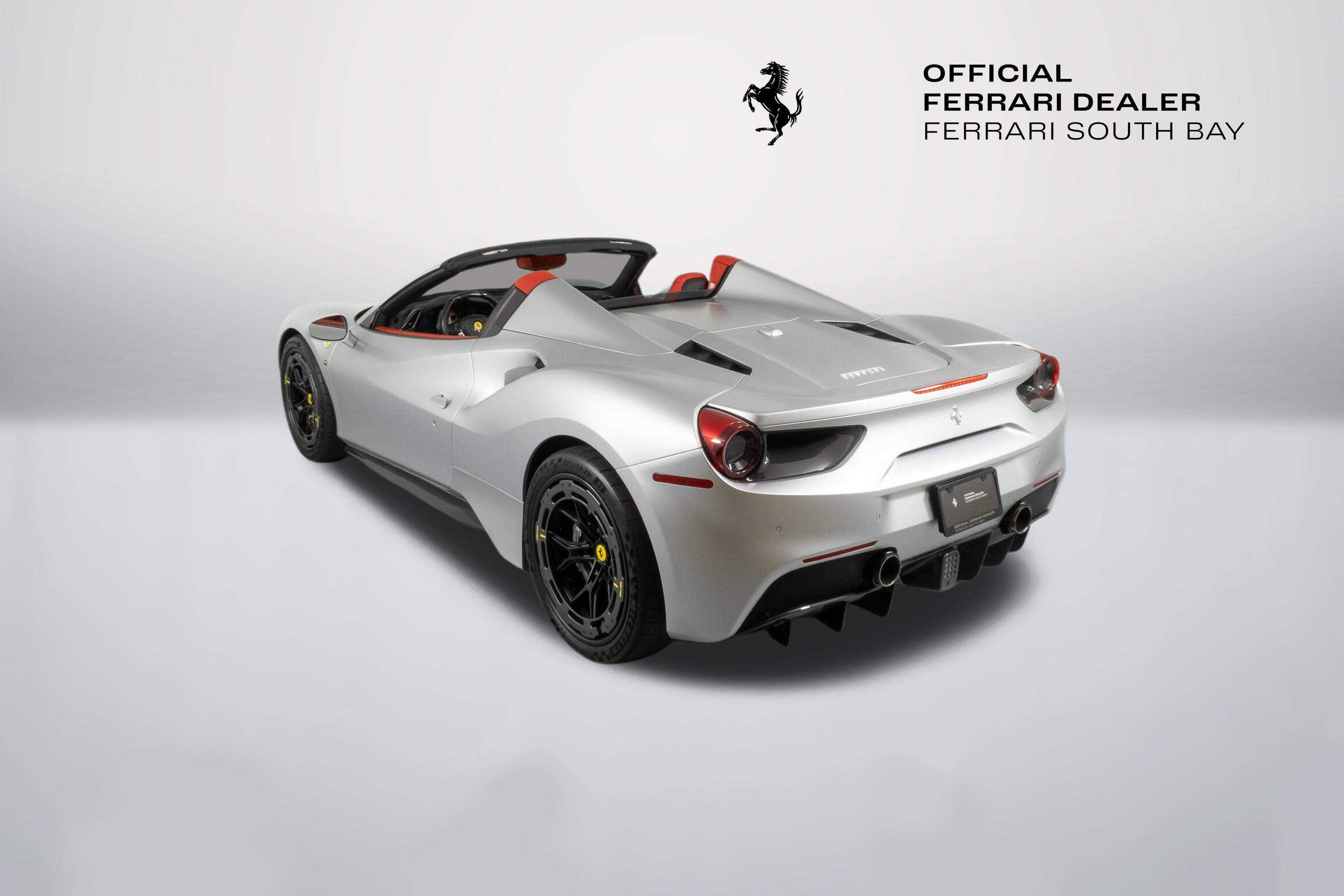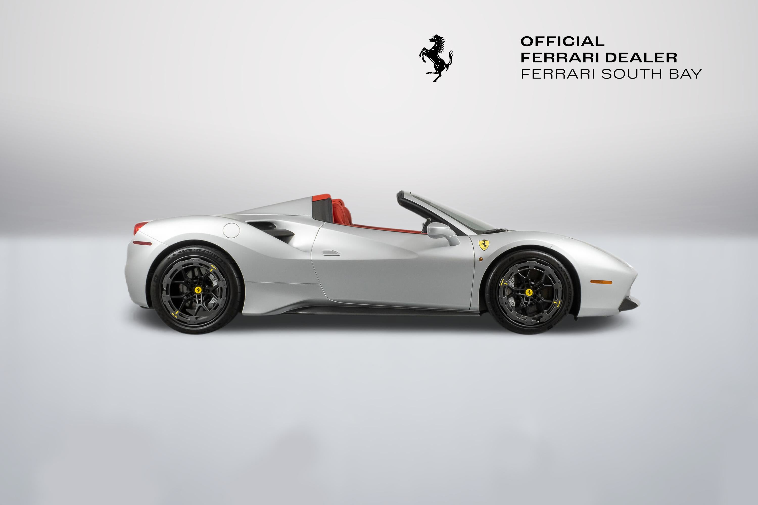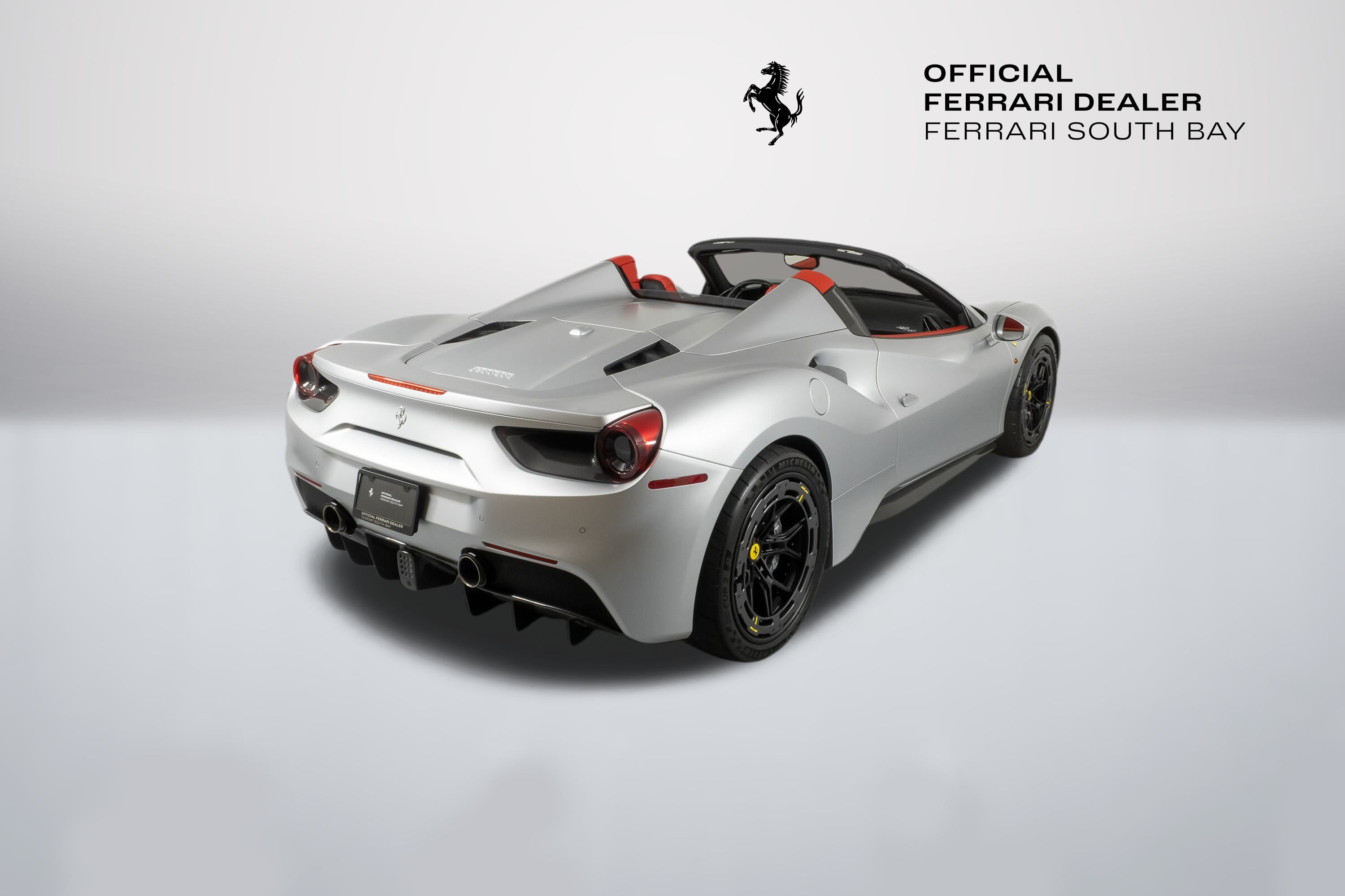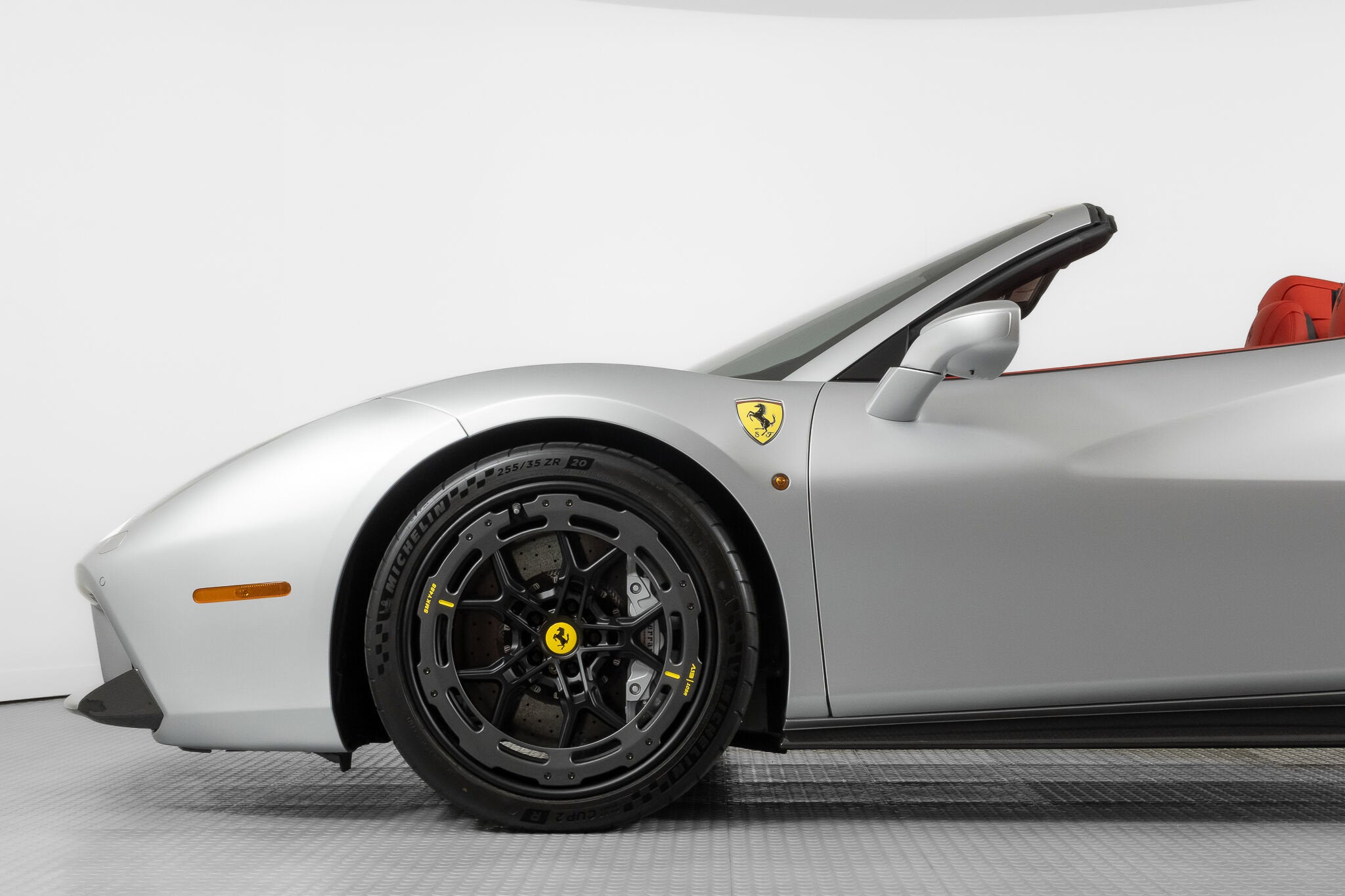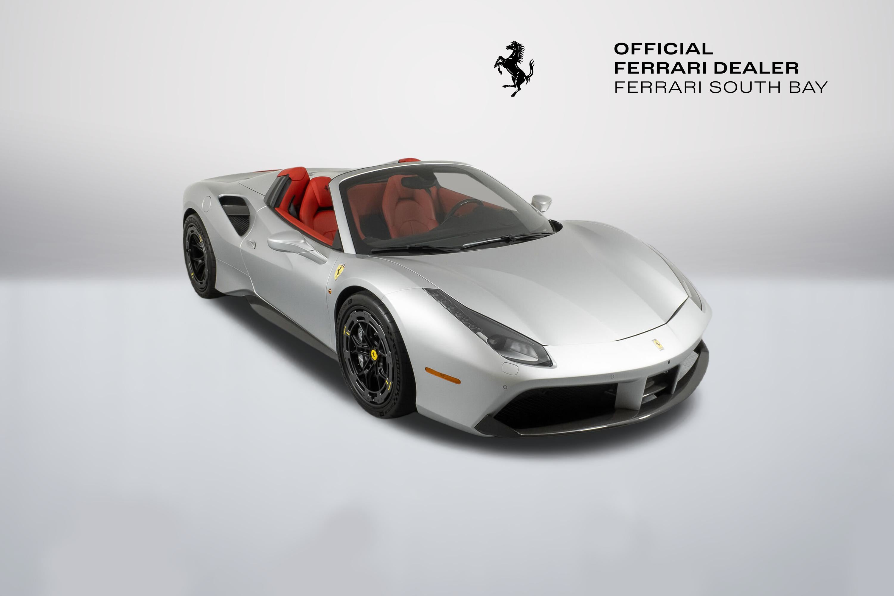Ferrari South Bay is thrilled to offer this spectacular 488 Spider, finished in Brilliant Argento Nurburgring (protected by an impeccable satin PPF) with Rosso Ferrari Leather. The previous owner fit many pieces of Genuine Ferrari Carbon Fiber, as well as custom wheels and a custom exhaust to create a truly SMKY 488 488 Spider! The exterior is finished in Argento Nurburgring, and has been covered with full body satin PPF to create a very technical, very sophisticated look. The car was fitted with Factory Carbon Fiber on the Rear Air Ducts, B-Pillar Trim and Side Air Splitter; the previous owner added Genuine Ferrari Carbon Fiber Underdoor Covers, Rear Diffuser, Front Splitter and Taillight Buckets. The wheels are custom cut and feature the car's name: SMKY 488 machined into the face and highlighted in yellow. The car's exhaust system was supplied by Akropovic and adds not only a powerful audio punch, but a visually arresting one as well, given the size of the exhaust pipes out back! The Interior of this 488 Spider is trimmed with Rosso Ferrari Leather, accented with Nero Stitching (including the Cavallinos Embroidered onto the Headrests of the Fully-Electric Seats). Carbon Fiber finishes the Dash Inserts, Central Bridge and Driver's Zone, including the F1 Paddles and Steering Wheel (which is fitted with Ferrari's LED Shift Lights). The Vehicle Lifter, Front and Rear Parking Cameras and Sensors simplify tight maneuvers. Apple Car play is a welcome convenience and pairs nicely with the JBL Premium Audio System. This 488 Spider is offered complete with both keys, tools, battery tender and cover. Ferrari's Power15 Warranty is in place through March 21, 2027, and Ferrari Genuine Maintenance handles annual servicing until then as well. If you'd like to know more about this sensational 488 Spider, please contact one of our knowledgeable sales staff. Ferrari South Bay is proudly part of Holand Automotive Group, one of North America’s leading luxury automotive retailers. We offer nationwide shipping, trade-in opportunities, financing, client consignments, and world-class delivery service. Contact us today to explore ownership of this remarkable Ferrari. Please visit us at 23305 Hawthorne Blvd, Torrance, CA 90505, or call us at (888) 578-8767.