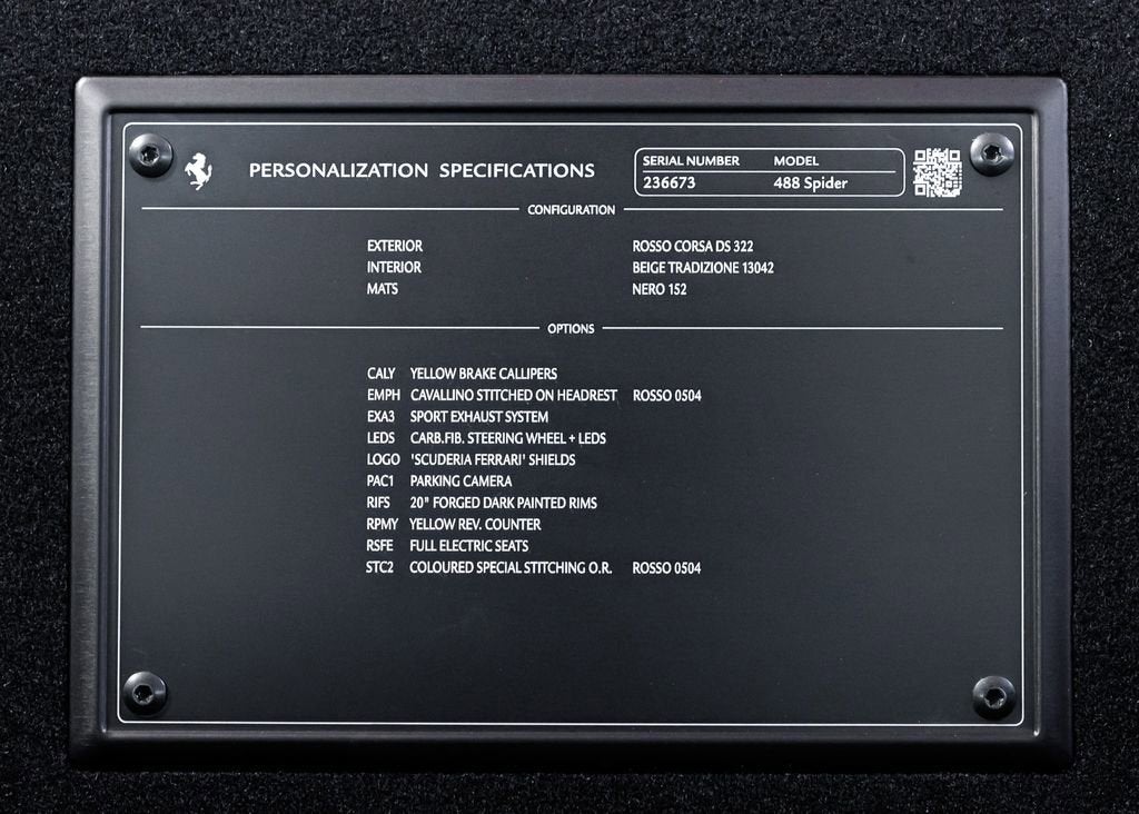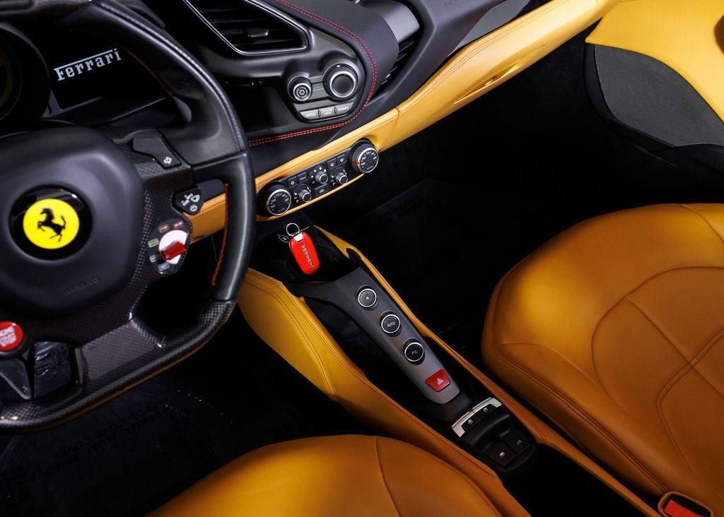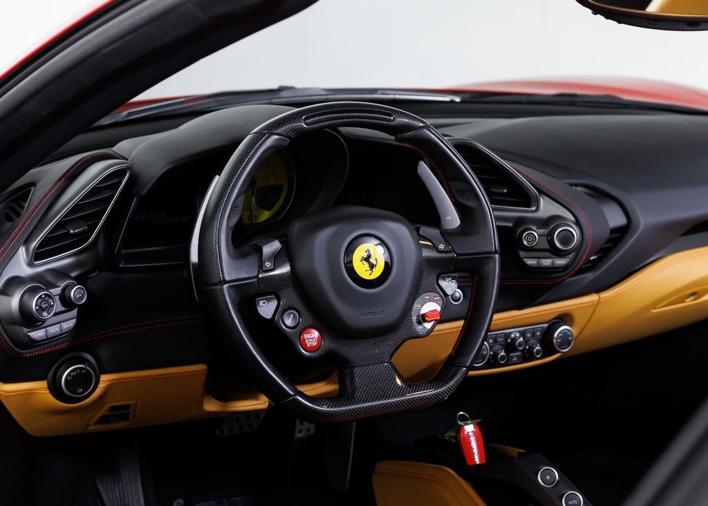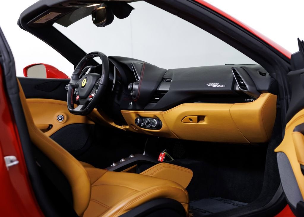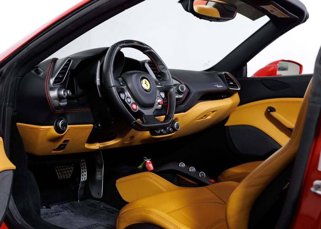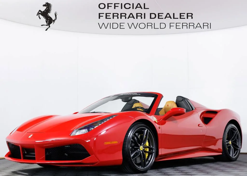 Wide World Ferrari is proud to present this exceptional 2018 Ferrari 488 Spider, a clean Carfax example showing just 7,198 miles and specified in one of the marques most timeless and desirable color combinations. Pairing breathtaking turbocharged V8 performance with the exhilaration of open-top driving, the 488 Spider stands as one of the most thrilling and versatile modern Ferraris ever produced. Powered by a 3.9-liter twin-turbocharged V8 producing 661 horsepower, the Ferrari 488 Spider delivers explosive acceleration, razor-sharp throttle response, and an unmistakable Ferrari soundtrack. A lightning-quick 7-speed dual-clutch transmission channels power seamlessly to the rear wheels, while advanced aerodynamics and chassis systems derived from Ferraris racing expertise ensure extraordinary precision and confidence at any speed. Finished in iconic Rosso Corsa over a beautifully contrasting Beige Tradizione interior, this example perfectly captures classic Ferrari DNA. Giallo Modena brake calipers provide a bold splash of color behind the 20-inch forged wheels finished in matte Grigio Corsa, creating a purposeful and aggressive stance. The signature Scuderia Ferrari shields on the fenders proudly pay tribute to the brands racing heritage, while sports tailpipe tips add a sharper visual and acoustic edge to the rear profile. Inside, the cabin blends luxury craftsmanship with motorsport inspiration. Full-electric seats provide comfort and adjustability, while special Rosso stitching and embroidered Cavallino headrests in Rosso create a striking contrast against the Beige Tradizione leather. A yellow tachometer dial face serves as the focal point of the driver-centric cockpit, reinforcing the cars sporting intent. The highly sought-after carbon fiber steering wheel with LED shift indicators brings Formula 1inspired technology directly to your fingertips, placing illuminated shift lights within your line of sight for a truly immersive driving experience. A rear parking camera enhances everyday usability, ensuring confidence whether navigating tight city streets or arriving at your favorite destination. Additionally, the car is Ferrari Approved and eligible for up to a 2-year Ferrari Certification warranty (available at an additional charge). As the only 4-Time Cavallino Winning Ferrari Center in the tri-state area and one of the first Ferrari Centers in North America, we pride ourselves on exceptional service. We assist with all aspects of your purchase, including trade-ins, shipping, registration, non-reported financing, and customizations. Conveniently located in Rockland County, just under 30 miles from Manhattan. For more information, email us at ferrarivip@newcountry.com or call 845-682-0129.