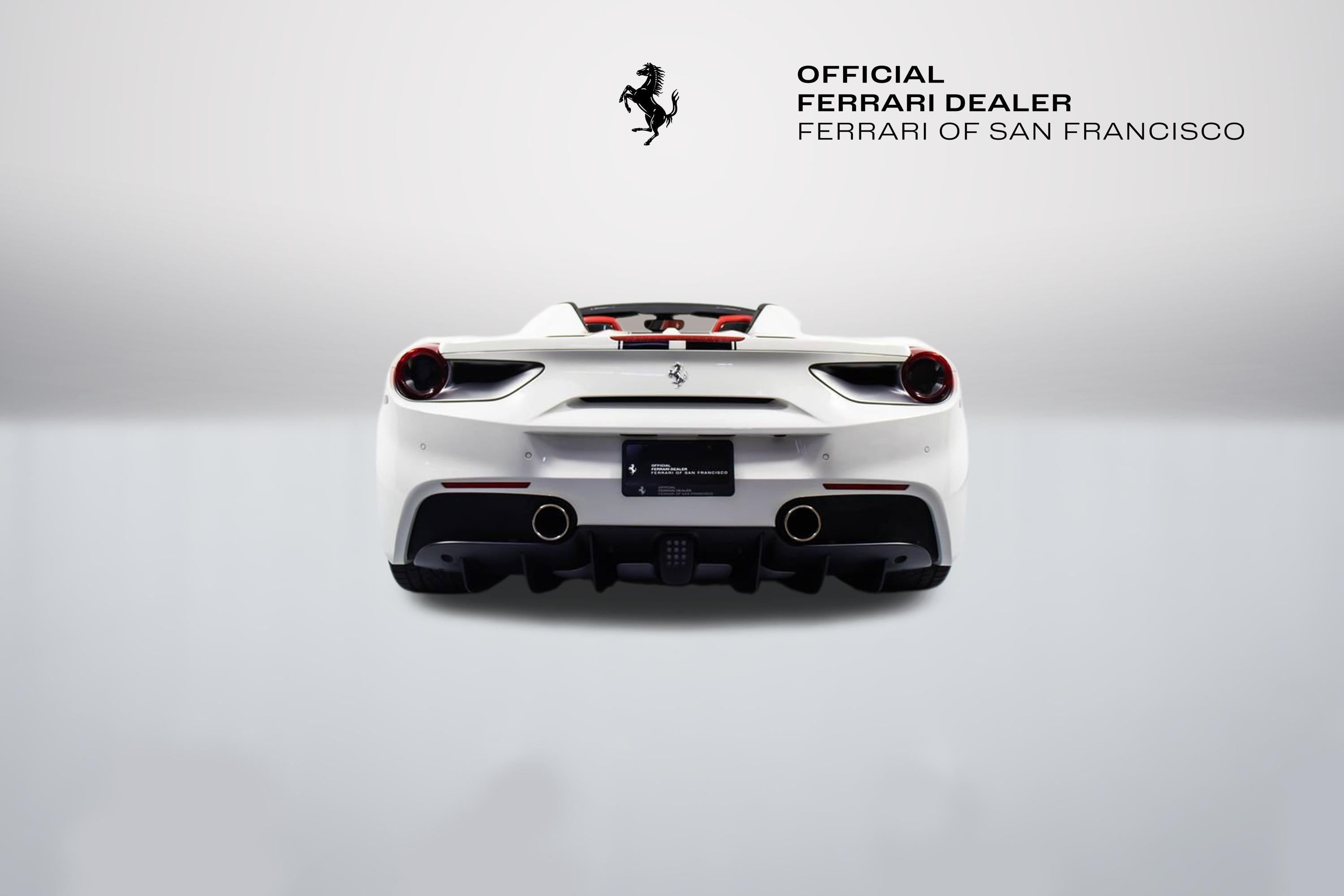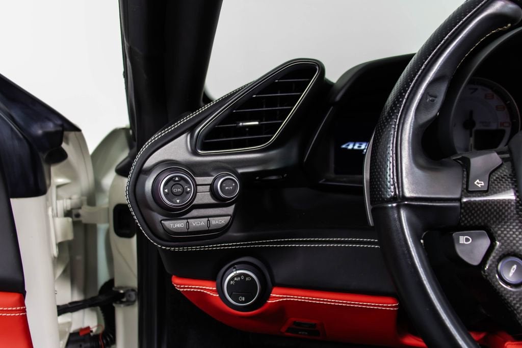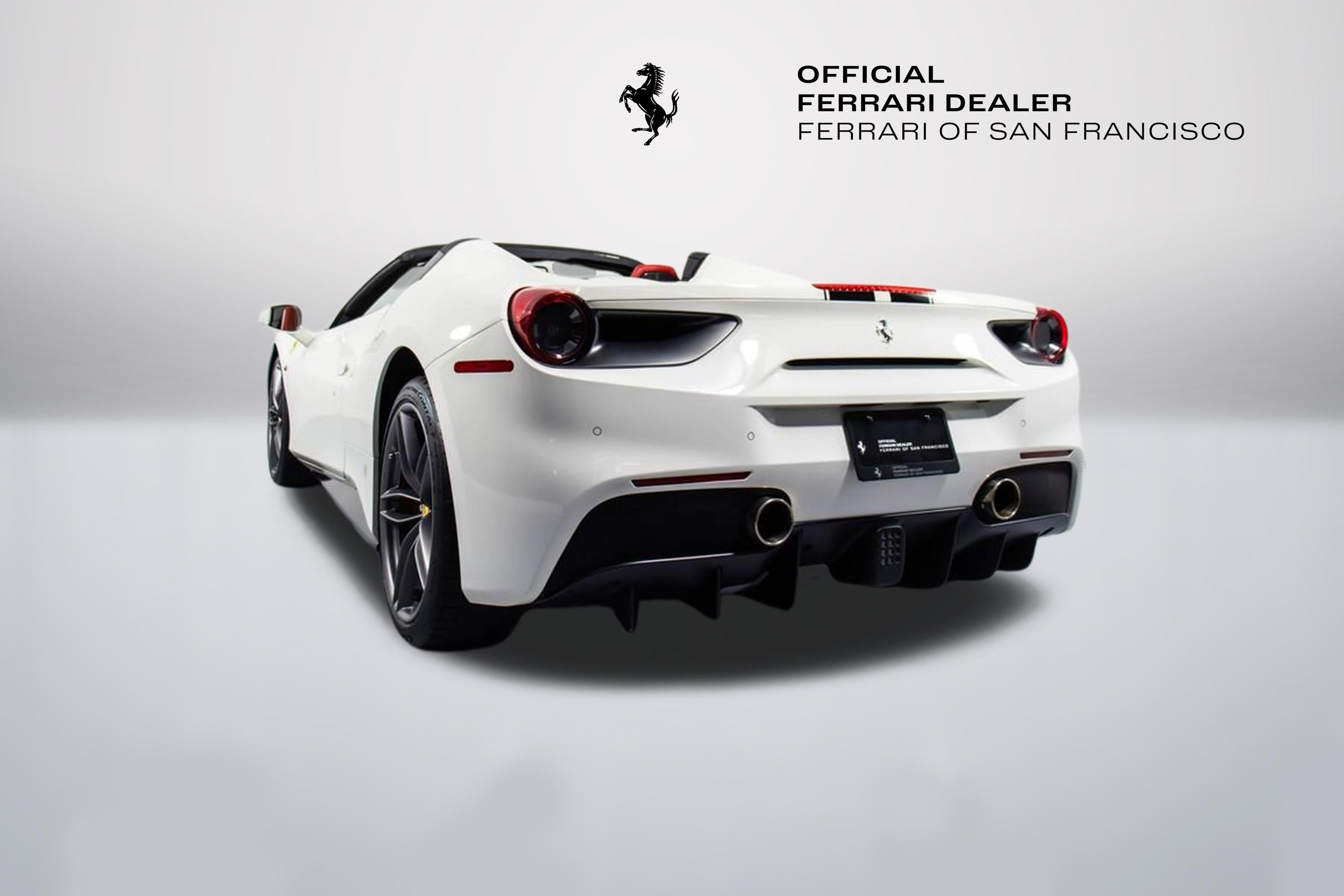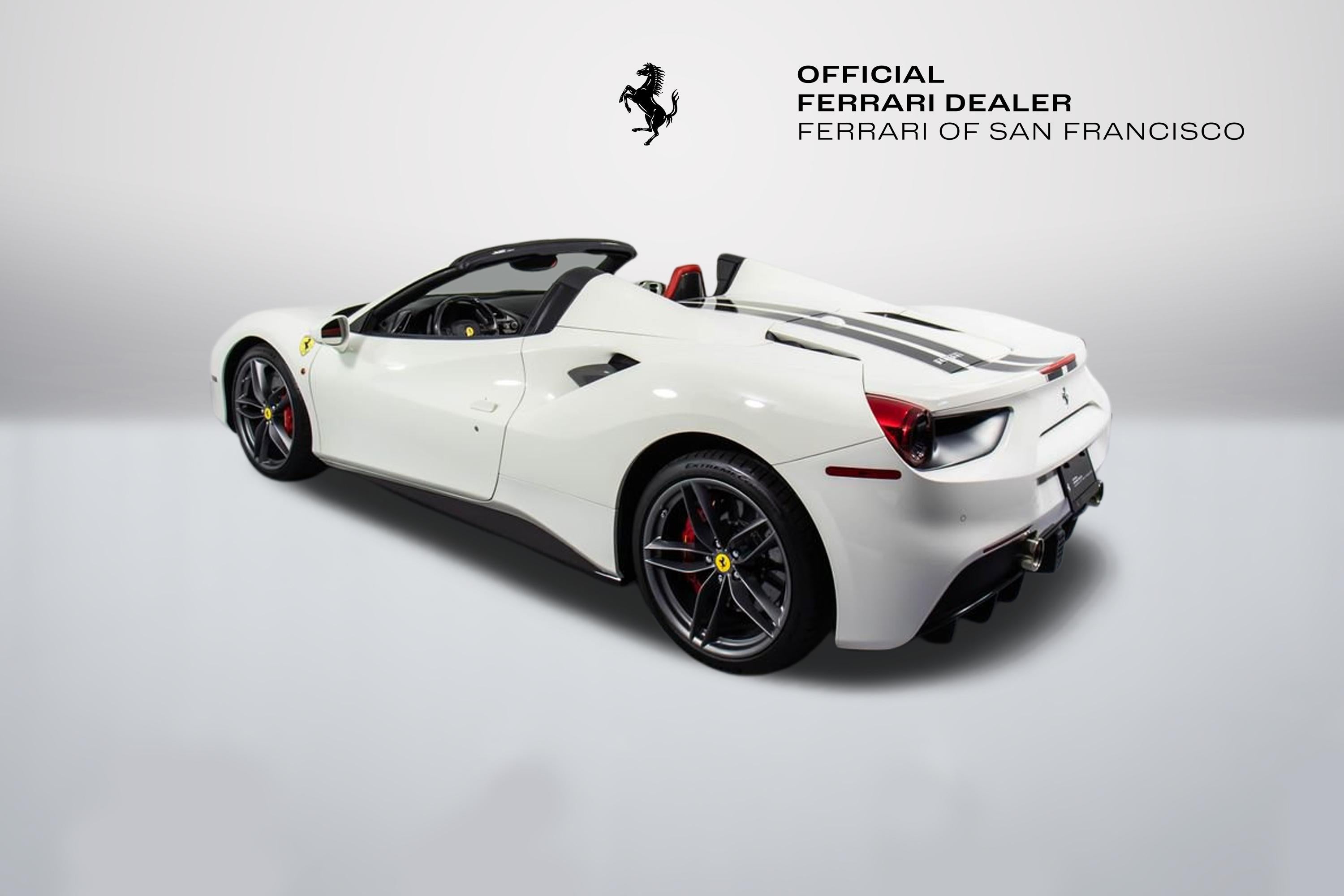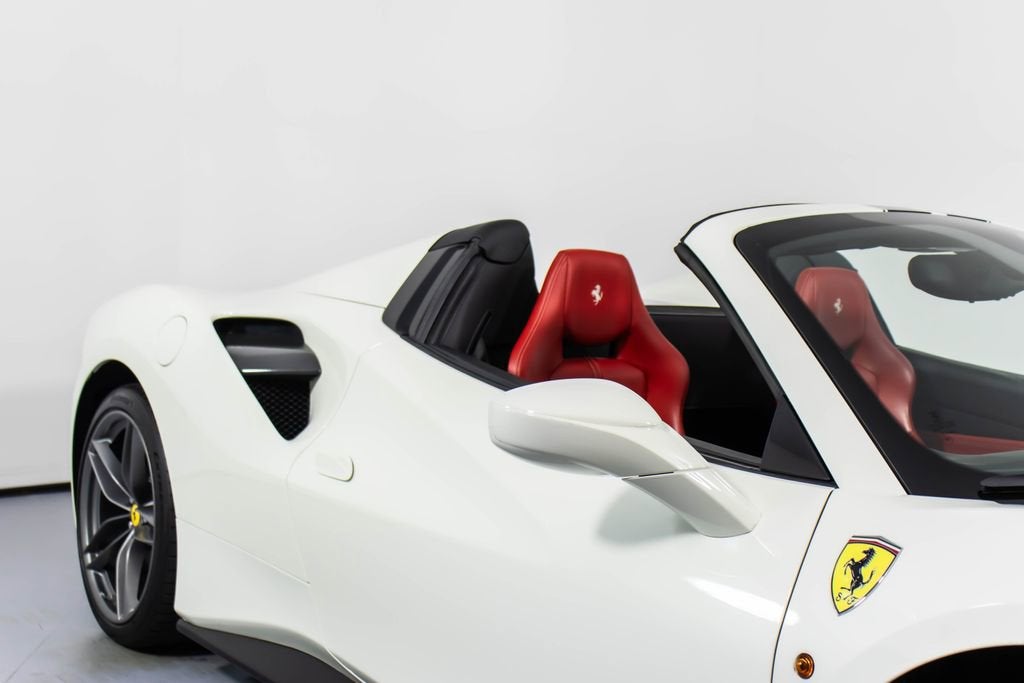 228613 Exterior: Bianco Avus Interior: Rosso Ferrari Mats: Nero 2017 Ferrari 488 Spider Options: Red Brake Calipers Cavallino Stitched on Headrest in Bianco Colored Mats with Logo Carb. Fib. Steering Wheel + LEDS 'Scuderia Ferrari' Shields Inn/Out Electr. Mirror + Home Link 20" Forged Dark Painted Rims White Rev Counter Gold rake Racing Seats Premium Hi-Fi System Colored Special Stitching O.R. in Bianco Finished in stunning Bianco Avus over a striking Rosso Ferrari interior, this 2017 Ferrari 488 Spider delivers an eye-catching combination of elegance and performance. The crisp white exterior is perfectly complemented by red brake calipers, Scuderia Ferrari shields, and 20-inch forged dark painted rims, giving it a bold and sporty presence. Inside, the cabin is a true drivers cockpit, featuring rare Goldrake racing seats, a white rev counter, and a carbon fiber steering wheel with integrated LEDs, all accented by Bianco contrast stitching and a matching Cavallino stitched on the headrests. Equipped with premium touches such as a high-end Hi-Fi system, HomeLink, and electrochromic mirrors, this 488 Spider offers both luxury and everyday usability. Blending open-top exhilaration with iconic Ferrari styling, this beautifully specd example is the perfect balance of performance, craftsmanship, and unmistakable Italian flair.