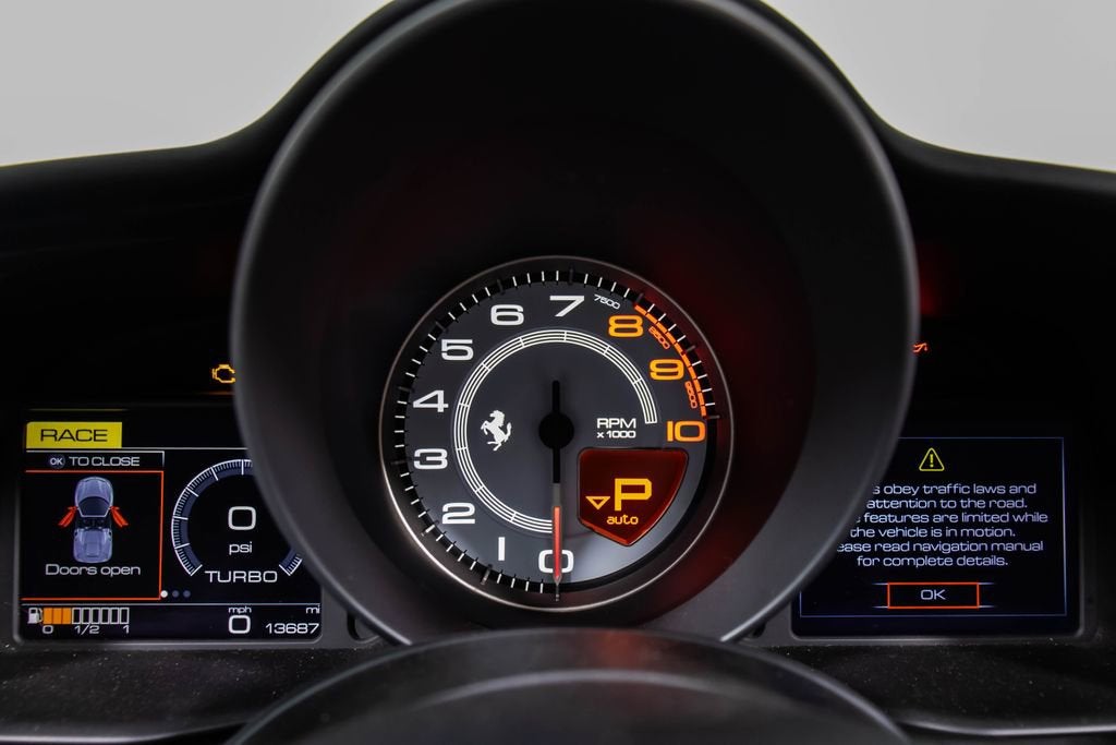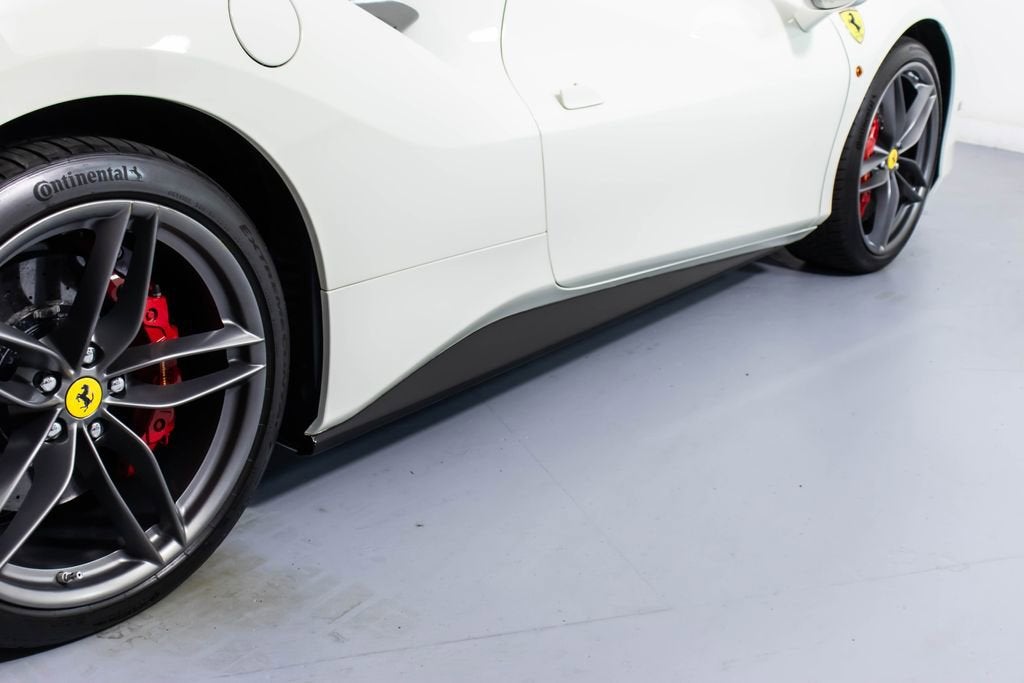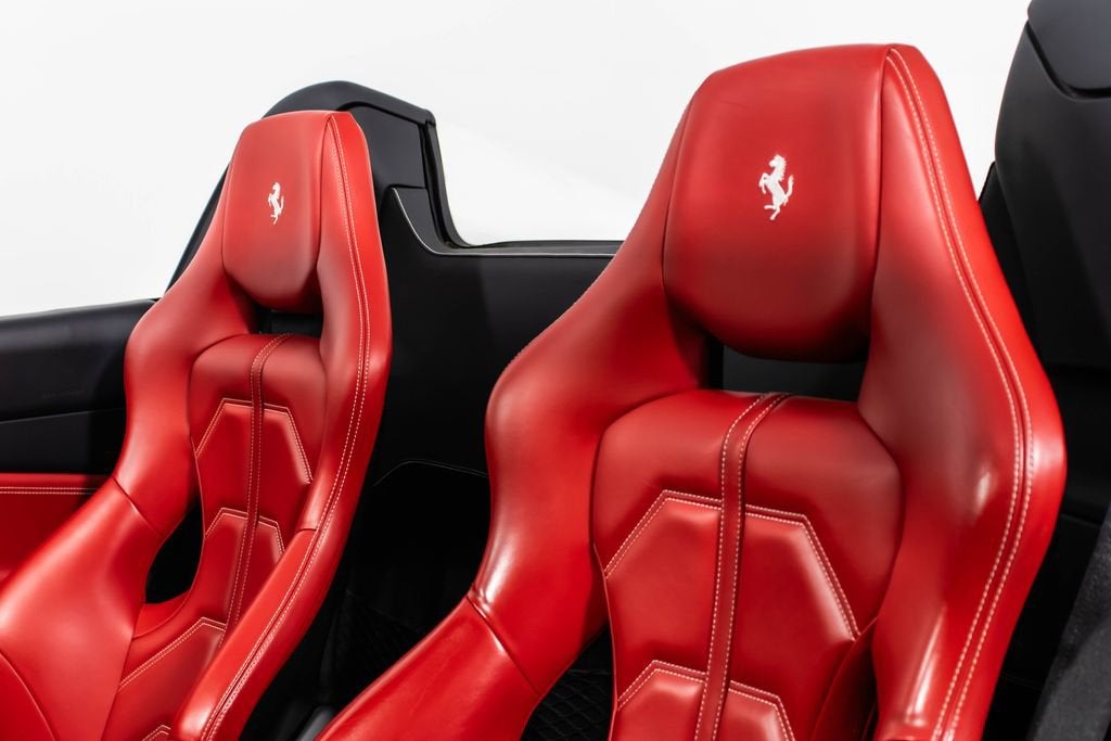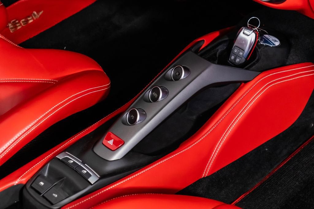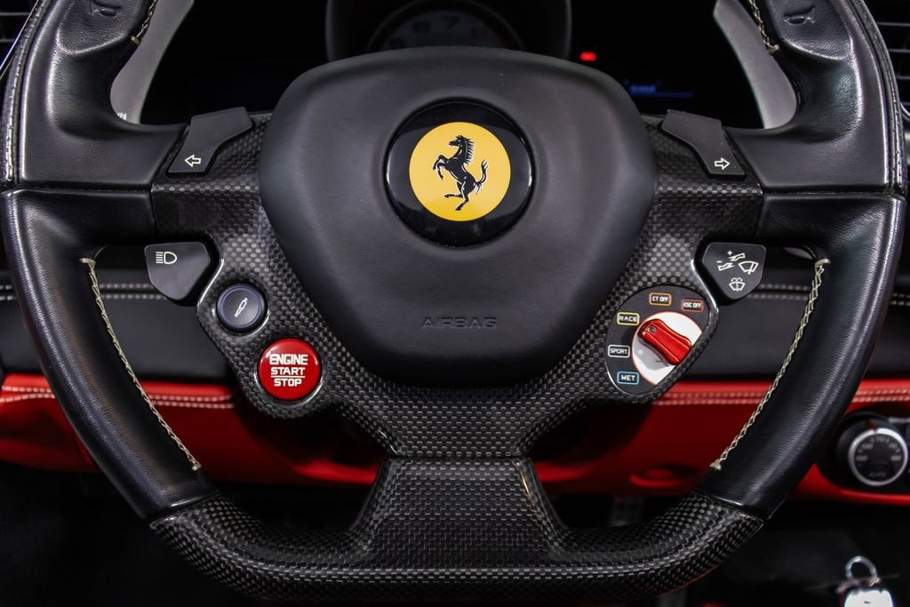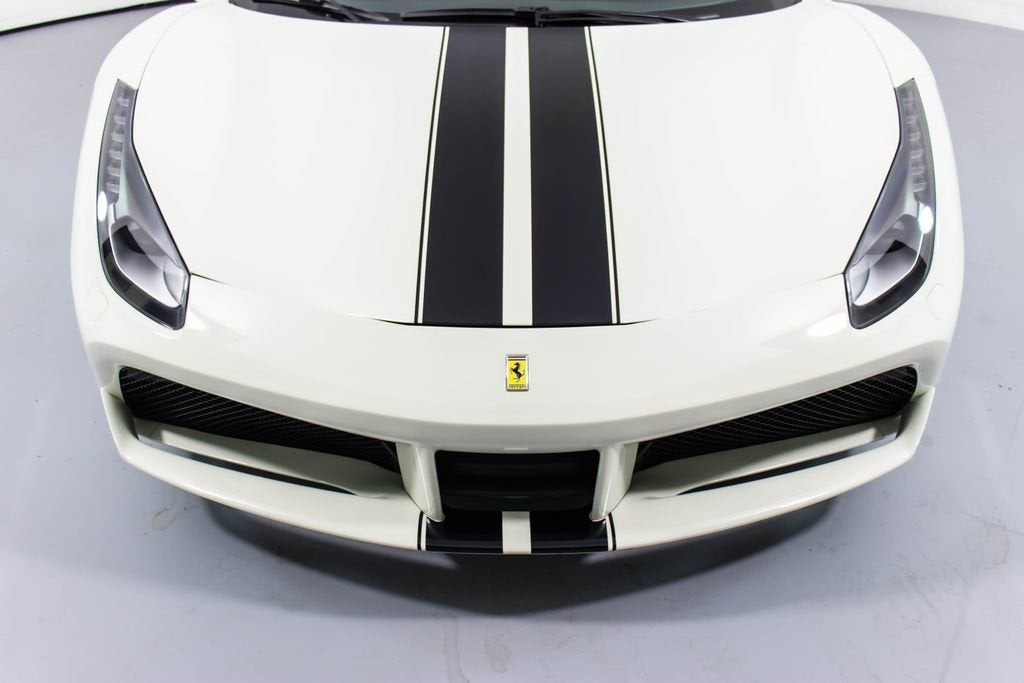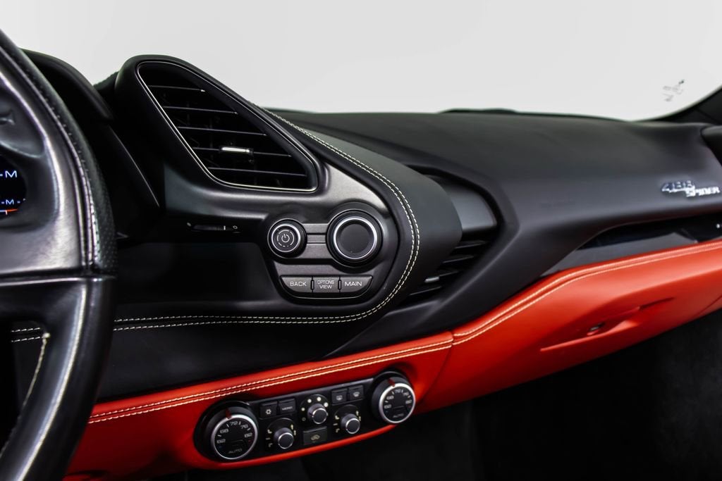 228613 Exterior: Bianco Avus Interior: Rosso Ferrari Mats: Nero 2017 Ferrari 488 Spider Options: Red Brake Calipers Cavallino Stitched on Headrest in Bianco Colored Mats with Logo Carb. Fib. Steering Wheel + LEDS 'Scuderia Ferrari' Shields Inn/Out Electr. Mirror + Home Link 20" Forged Dark Painted Rims White Rev Counter Gold rake Racing Seats Premium Hi-Fi System Colored Special Stitching O.R. in Bianco Finished in stunning Bianco Avus over a striking Rosso Ferrari interior, this 2017 Ferrari 488 Spider delivers an eye-catching combination of elegance and performance. The crisp white exterior is perfectly complemented by red brake calipers, Scuderia Ferrari shields, and 20-inch forged dark painted rims, giving it a bold and sporty presence. Inside, the cabin is a true drivers cockpit, featuring rare Goldrake racing seats, a white rev counter, and a carbon fiber steering wheel with integrated LEDs, all accented by Bianco contrast stitching and a matching Cavallino stitched on the headrests. Equipped with premium touches such as a high-end Hi-Fi system, HomeLink, and electrochromic mirrors, this 488 Spider offers both luxury and everyday usability. Blending open-top exhilaration with iconic Ferrari styling, this beautifully specd example is the perfect balance of performance, craftsmanship, and unmistakable Italian flair.