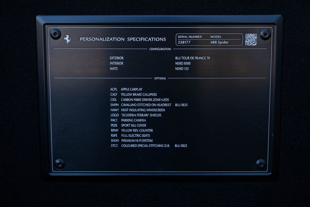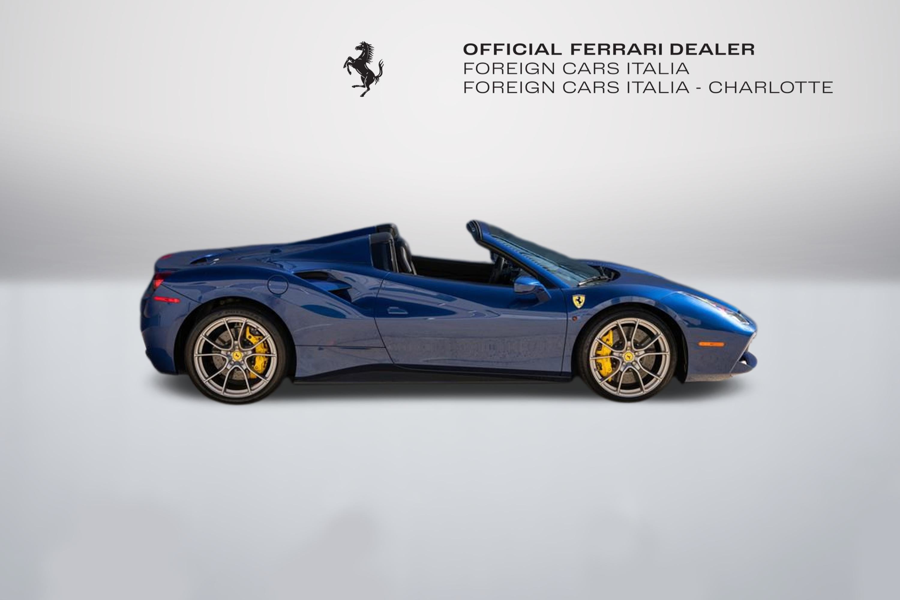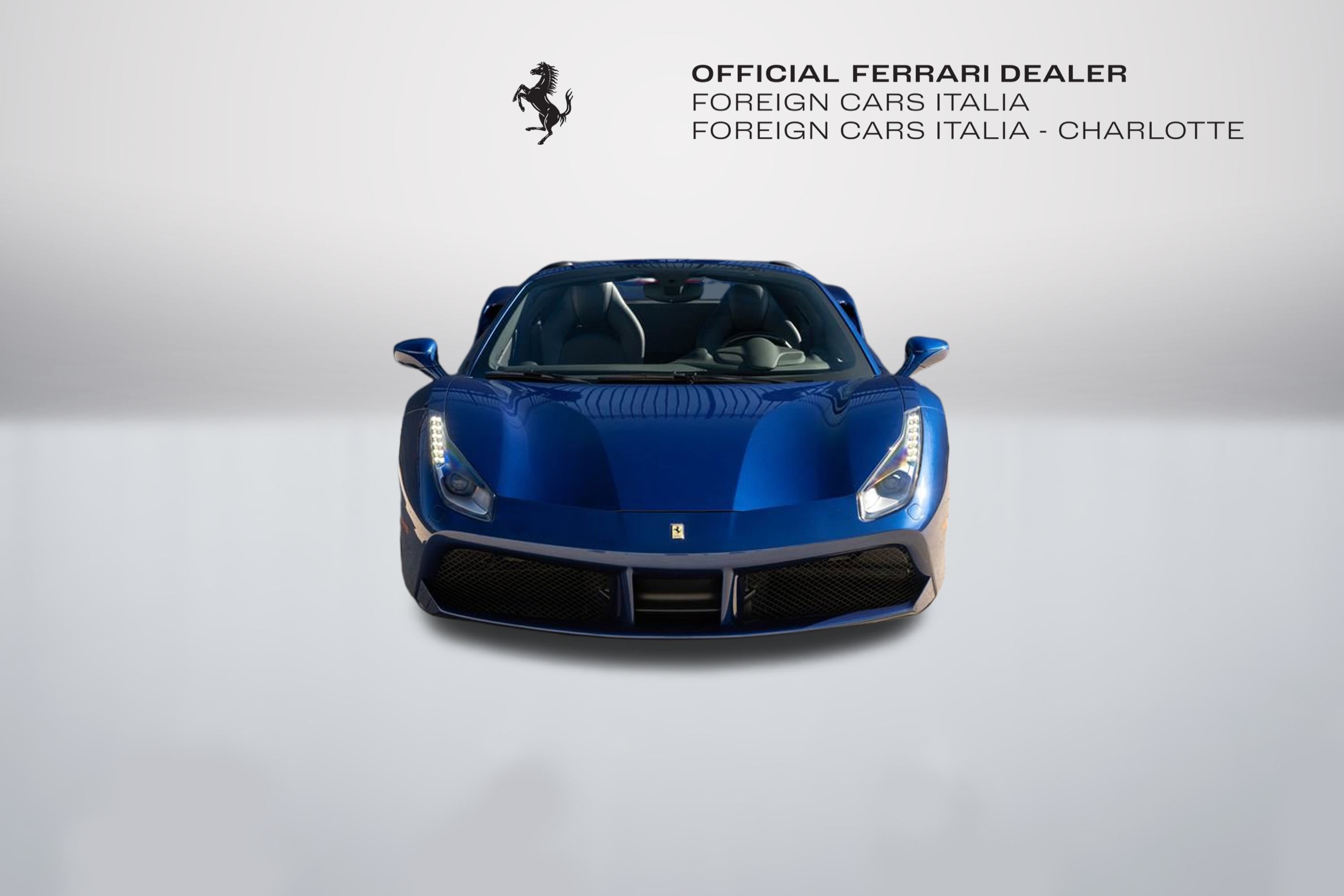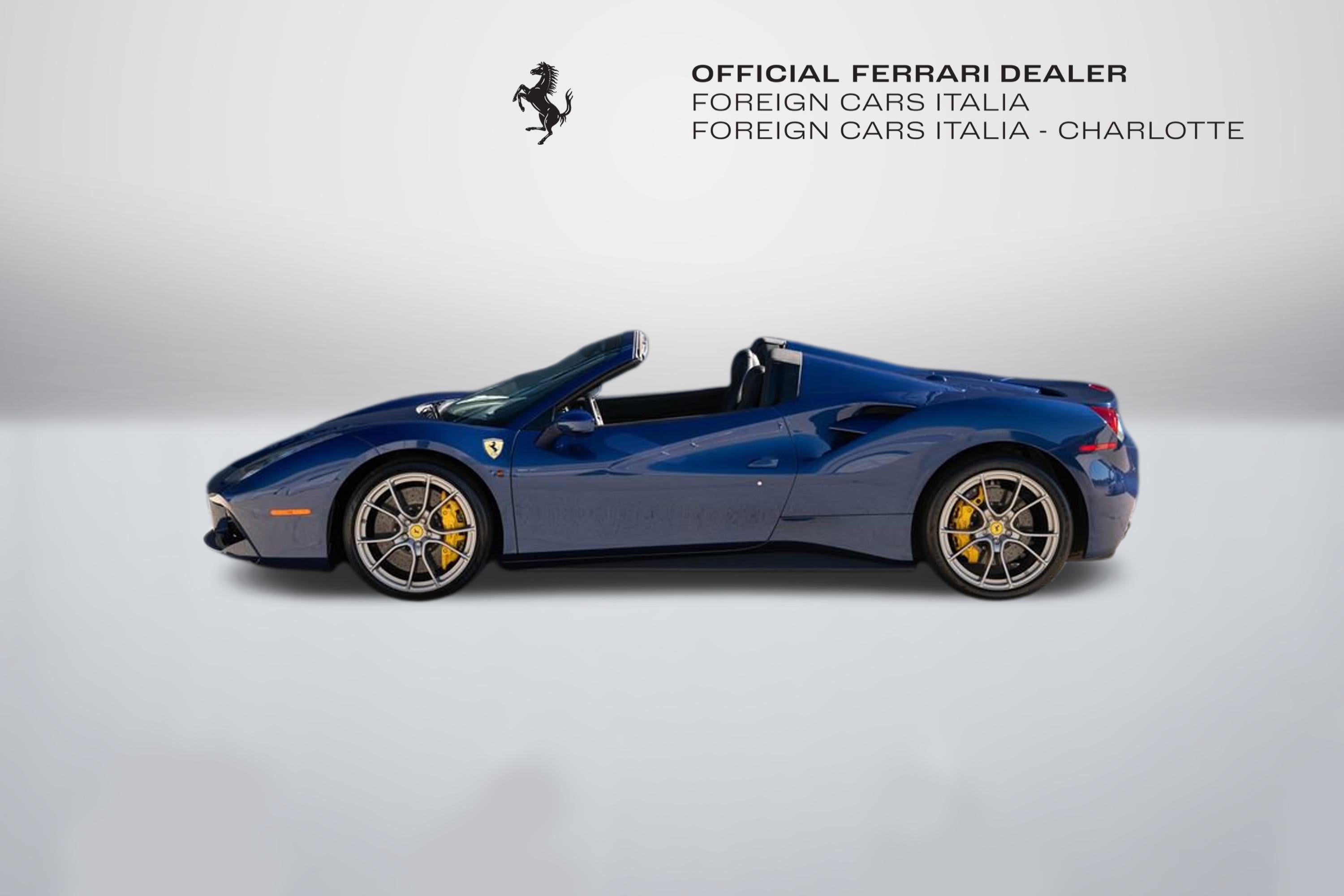 Foreign Cars Italia Charlotte | Official Ferrari Dealer is Proud to offer this elegant 2019 Ferrari 488 Spider featured in Blu Tour De France, over Nero interior. Blue 488 Spiders traditionally sell quick, and this Clean Carfax example wont be the exception. This vehicle comes with: Giallo Modena brake callipers | "Scuderia Ferrari" shields on fenders| Sports external sill trim panel| Full-electric seats| Carbon fibre trim driver zone and LED shift indicators on steering wheel| Embroidered Cavallino emblem on headrest | Yellow tachometer dial face| Apple CarPlay| Athermic windscreen | Rear parking camera | Premium Hi-Fi system. For a tailored consultation, and carefully crafted walk around video, please contact Joe Greenberg, Ferrari General Manager at 860.550.1149.