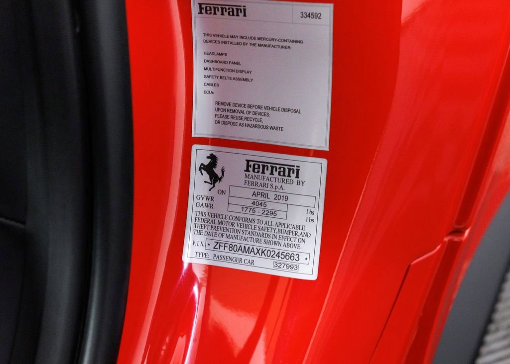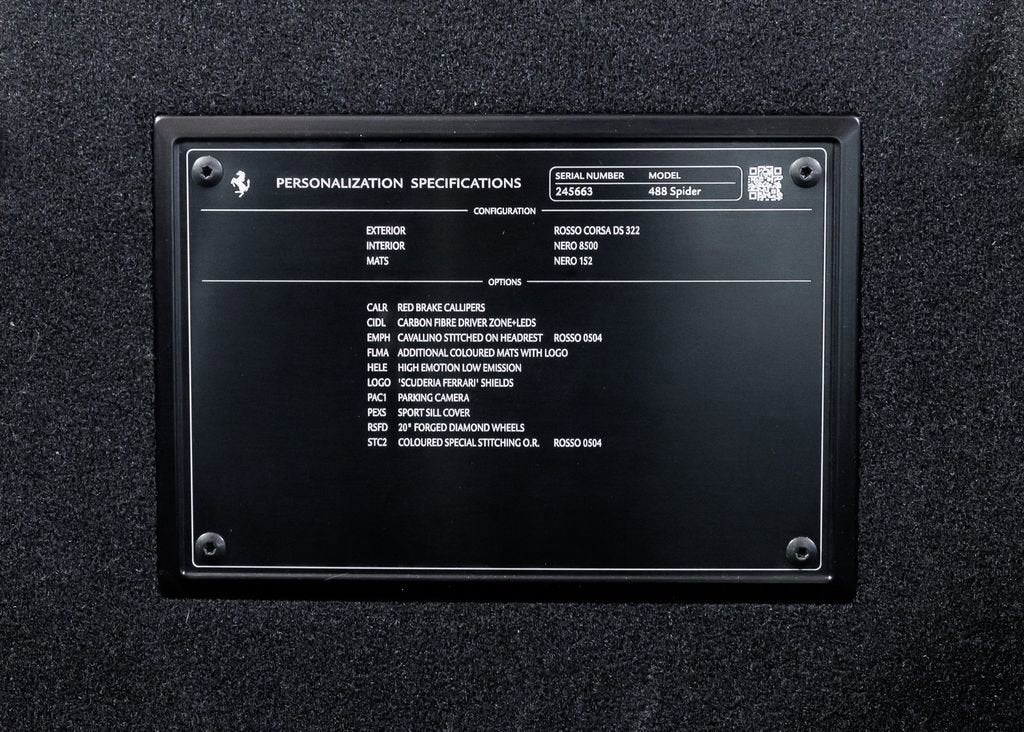 Wide World Ferrari is proud to present this exceptional 2019 Ferrari 488 Spider, a beautifully specified, low-mileage example of Maranellos legendary twin-turbocharged V8 convertible. Showing just 5,200 miles and accompanied by a clean Carfax, this 488 Spider delivers exhilarating open-air performance, everyday usability, and unmistakable Ferrari character in one striking, mid-engine package. Finished in iconic Rosso Corsa, the exterior captures Ferraris racing DNA with a bold and timeless presence. The look is enhanced by 20-inch forged wheels with a diamond-polished finish, perfectly complemented by Rosso Corsa brake calipers and the coveted Scuderia Ferrari shields proudly displayed on the fenders. The sports external sill trim panels add an extra touch of aggression and refinement, while every sculpted line and aerodynamic element reinforces the 488 Spiders reputation as one of the most captivating open-top supercars of its era. The interior is appointed in Nero, creating a purposeful, driver-focused cockpit with a distinctly sporting edge. Special stitching in Rosso adds a vibrant contrast throughout, beautifully paired with Rosso embroidered Cavallino emblems on the headrests. Overmats with the embroidered vehicle logo further highlight the attention to detail, while the cabin maintains a refined yet performance-oriented atmosphere true to Ferraris design philosophy. At the center of the driving experience is the highly sought-after carbon fiber driver zone with an LED shift indicator steering wheel, placing critical performance data directly in the drivers line of sight. This feature, combined with Ferraris signature cockpit layout, creates a deeply immersive connection between driver and machine. A rear parking camera adds modern convenience, making this supercar as practical as it is thrilling. Additionally, the car is Ferrari Approved and eligible for up to a 2-year Ferrari Certification warranty (available at an additional charge). As the only 4-Time Cavallino Winning Ferrari Center in the tri-state area and one of the first Ferrari Centers in North America, we pride ourselves on exceptional service. We assist with all aspects of your purchase, including trade-ins, shipping, registration, non-reported financing, and customizations. Conveniently located in Rockland County, just under 30 miles from Manhattan. For more information, email us at ferrarivip@newcountry.com or call 845-682-0129.