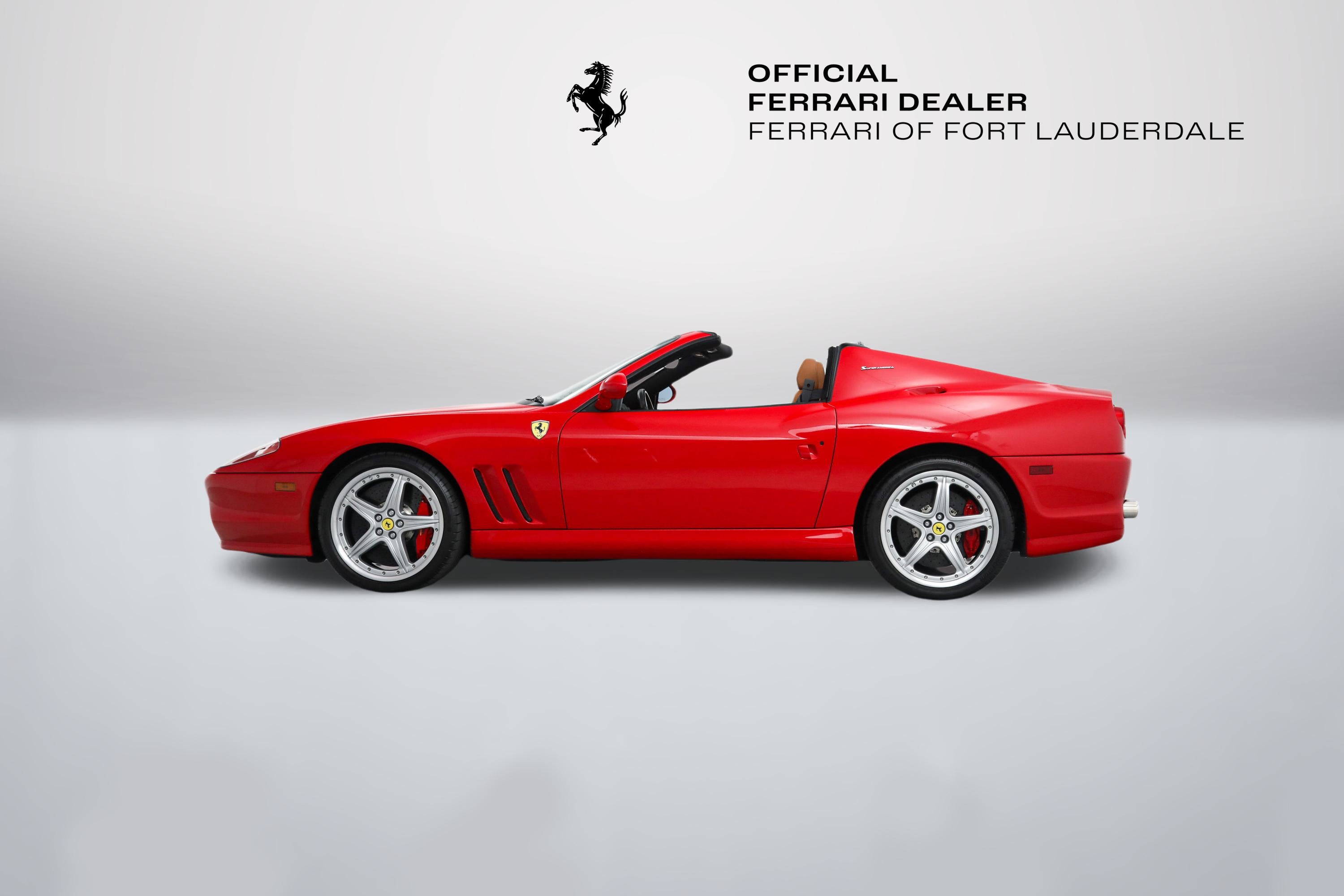 Ferrari 575 Superamerica F1 Ferrari of Fort Lauderdale is thrilled to announce the arrival of this gorgeous Ferrari 575 Superamerica F1. Finished in Rosso Corsa over Cuoio leather, the Superamerica has been driven very few easy miles by only two previous owners. It has been regularly maintained by authorized Ferrari dealers, and is in excellent condition inside and out. Do not miss the rare opportunity to own a part of Ferrari History, as only 559 Superamerica models were ever produced. This 575 Superamerica has has been specified with: - Scuderia Ferrari Shields - Carpets in Nuovo Cuoio - Stitching in Nero The Superamerica is the final and only open top version of the lovely 575 Maranello. Coupled with Ferrari's advanced F1 transmission, a powerful 5.75L V12 sends 533HP to the rear wheels. The 575 Superamerica was the first road car to have a carbon fiber, 'flip-top' electrochromic roof. To enjoy open air motoring, the roof rotates 180 degrees and folds backwards on top of the rear deck. When the roof is closed, a multiple position dial allows for varying degrees of transparency: from completely solid to nearly clear. In 2005, it was the fastest convertible on the road, and is still a complete thrill to drive today. Heads will turn! If you are in the market for a Ferrari 575 Superamerica, please call or email us today.