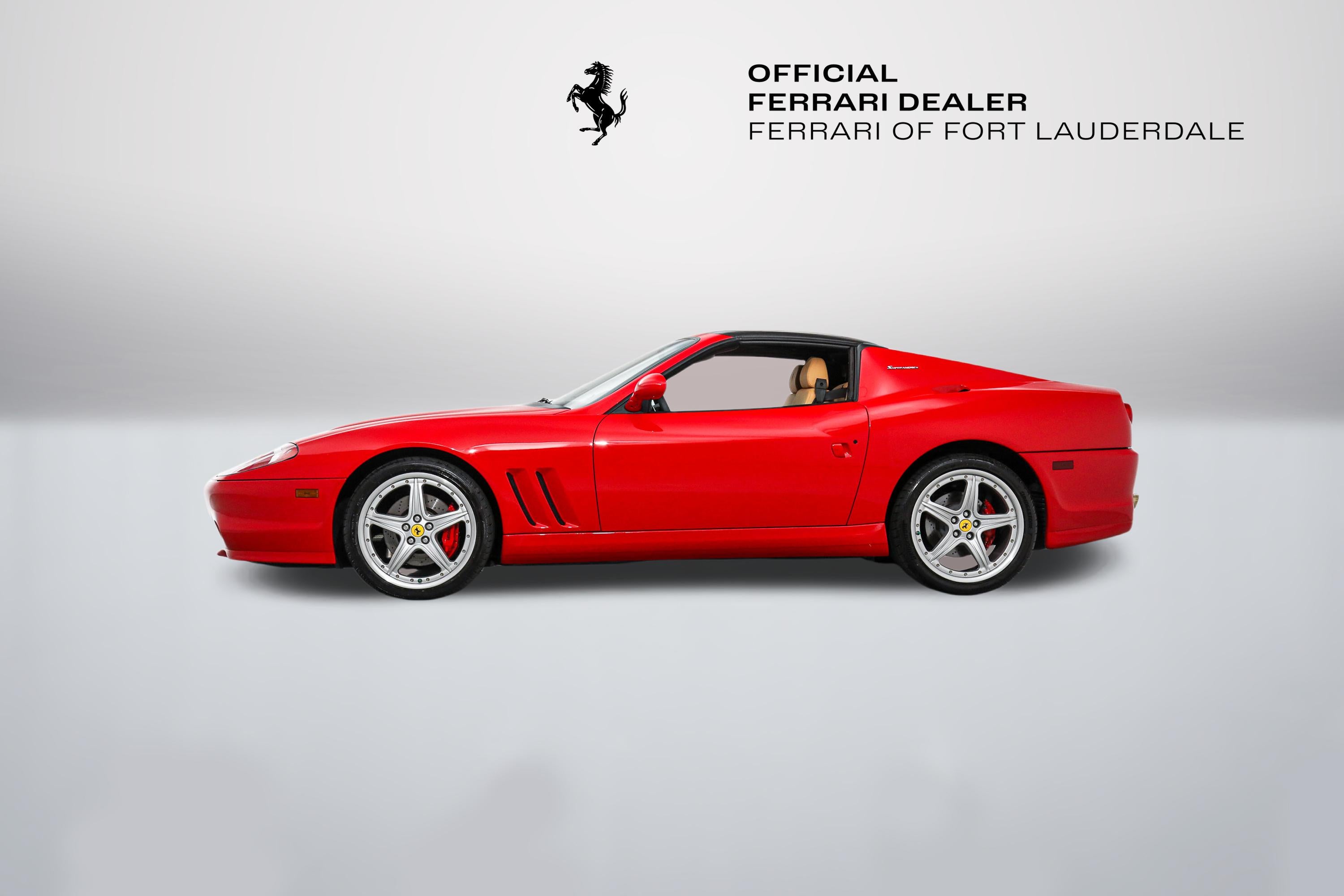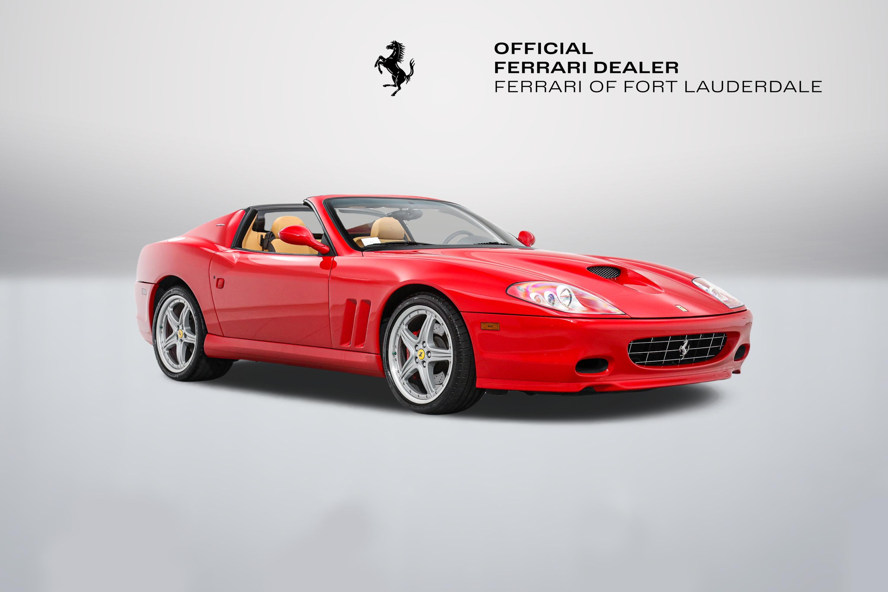 Ferrari 575 Superamerica F1 Ferrari of Fort Lauderdale is thrilled to announce the arrival of this gorgeous Ferrari 575 Superamerica F1. Finished in Rosso Corsa over Beige leather, the Superamerica has been carefully driven throughout its life. It has been well-maintained by authorized Ferrari dealers, and is in excellent condition. Do not miss the rare opportunity to own a part of Ferrari History, as only 559 Superamerica models were ever produced. This 575 Superamerica has has been specified with: - Daytona Style Seats - Yellow Rev Counter The Superamerica is the final and only open top version of the lovely 575 Maranello. Coupled with Ferrari's advanced F1 transmission, a powerful 5.75L V12 sends 533HP to the rear wheels. The 575 Superamerica was the first road car to have a carbon fiber, 'flip-top' electrochromic roof. To enjoy open air motoring, the roof rotates 180 degrees and folds backwards on top of the rear deck. When the roof is closed, a multiple position dial allows for varying degrees of transparency: from completely solid to nearly clear. In 2005, it was the fastest convertible on the road, and is still a complete thrill to drive today. Heads will turn! If you are in the market for a Ferrari 575 Superamerica, please call or email us today.