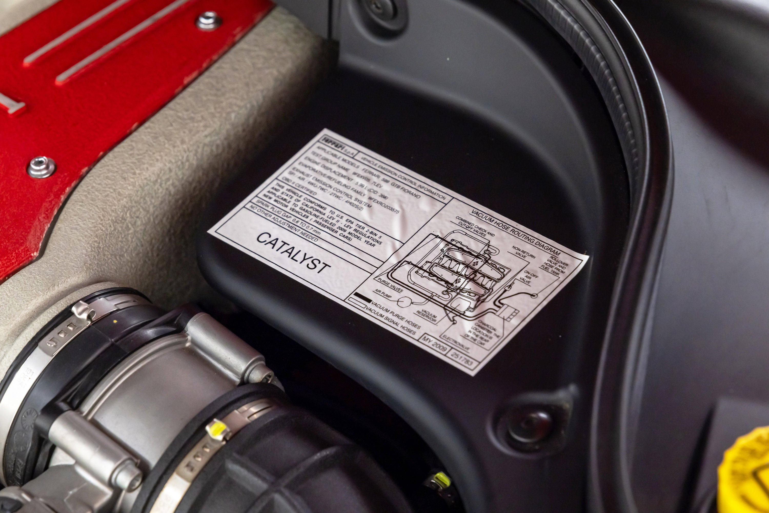 ===== 2009 Ferrari 599 GTB Fiorano ===== Rosso Corsa over Nero 2,999 Miles | VIN: ZFFFC60A690165966 Finished in Rosso Corsa over Nero, this 2009 Ferrari 599 GTB Fiorano presents an exceptionally low-mileage example with just 2,999 miles. Delivered new through Ferrari of Fort Lauderdale, this car retains a clean, original specification paired with documented ownership and extensive service history. The exterior is finished in classic Rosso Corsa, complemented by red brake calipers and Scuderia Ferrari shields. Silver OEM wheels complete the look, maintaining a correct and timeless presentation. Inside, the cabin is trimmed in Nero leather with red contrast stitching throughout. Daytona style seats add both visual character and comfort, creating a well-balanced and desirable interior specification. ==== Factory Options & Highlights ====