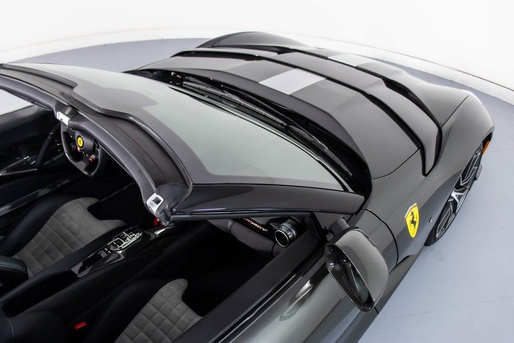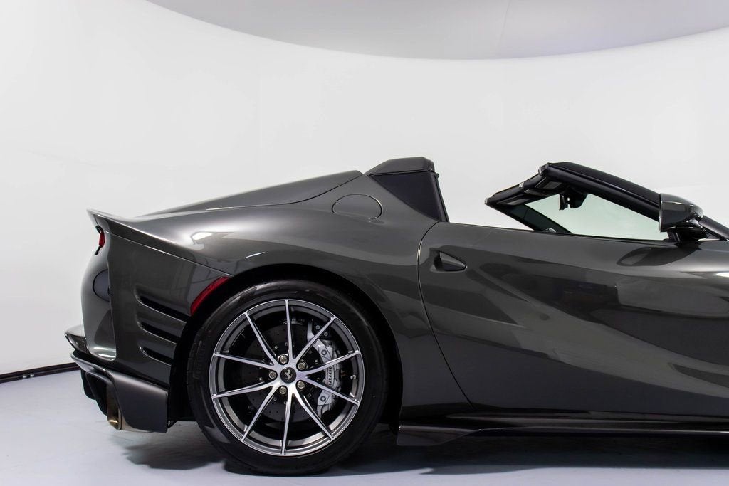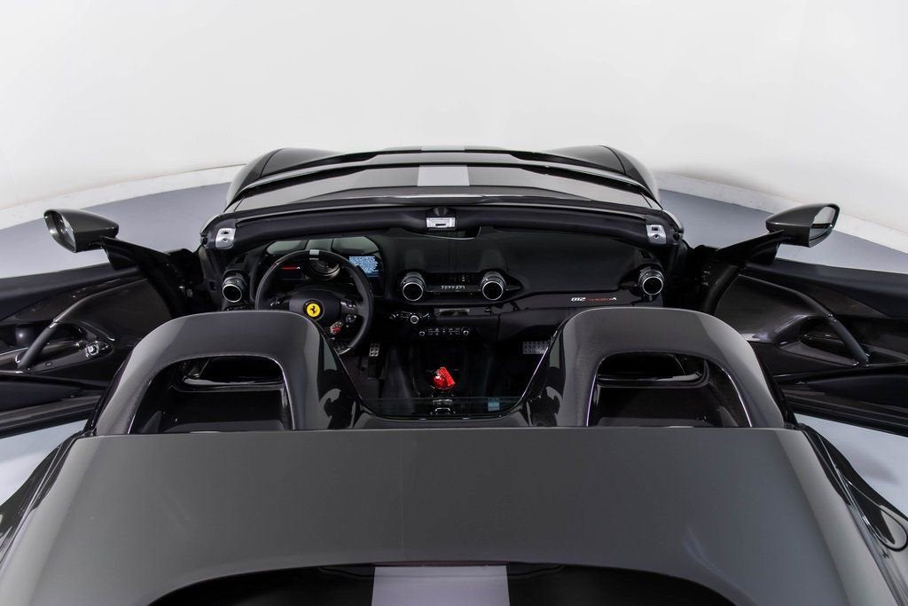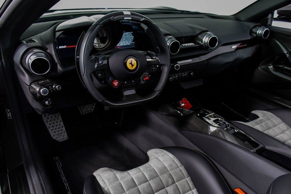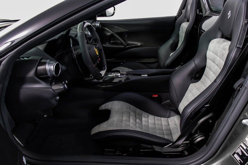302599 Exterior: Grigio Scuro Mic Interior: Nero Mats: Nero 2024 Ferrari 812 Competizione A Options: Apple CarPlay Adaptive Headlights with SBL Function Alcantara Interior Carpet Airbrushed Scuderia Shields Atelier Car Atelier New York Brake Calipers in Aluminum Hardtop in Carbon Fiber Rear Diffuser in Carbon Fiber Front Air Intakes in Carbon Fiber Carbon Fiber Underdoor Cover Carbon Fiber Wheel Cups Carbon Fiber Inner Door Handle Carbon Fiber Instrument Cover Carbon Fiber Rear Shelf Upper Part of Center Console in Carbon Fiber Colored Passenger Compartment Details in Nero Dashboard Inserts in Carbon Fiber Front Lift Cavallino Stitched on Headrest in Grigio Scuro Additional Colored Mats with Logo Leather Upholstery in Nero Single-Color Livery on Upper Steering Wheel Rim Front and Rear Parking Cameras Special 2-Layer Colors 20" Forged Diamond Racing Wheels Aluminum Rev. Counter Checked Racing Seat Racing Seat Lifter High Power Hi-Fi System Custom Specifications Colored Standard Stitching O.R. The 2024 Ferrari 812 Competizione A in Grigio Scuro Mic is a breathtaking expression of open-top V12 performance, elevated by an extensive list of carbon-fiber enhancements and Atelier-level personalization. Its aggressive exterior is sharpened by a carbon-fiber hardtop, front air intakes, rear diffuser, underdoor covers, wheel cups, instrument cover, and rear shelf, all underscoring the cars racing pedigree. The Nero interior continues the lightweight theme with Alcantara carpeting, carbon-fiber door handles, and carbon-fiber dashboard inserts, while the checked racing seatscomplete with a Cavallino stitched in Grigio Scurodeliver a purposeful, motorsport-inspired cabin feel. Comfort meets performance with a front lift, front and rear parking cameras, Apple CarPlay, and a High Power Hi-Fi system. The exteriors airbrushed Scuderia shields, special 2-layer paint, and 20" forged diamond racing wheels add exclusivity, while custom specifications, colored passenger compartment details, and precise O.R. stitching complete this meticulously crafted one-off inspired masterpiece.