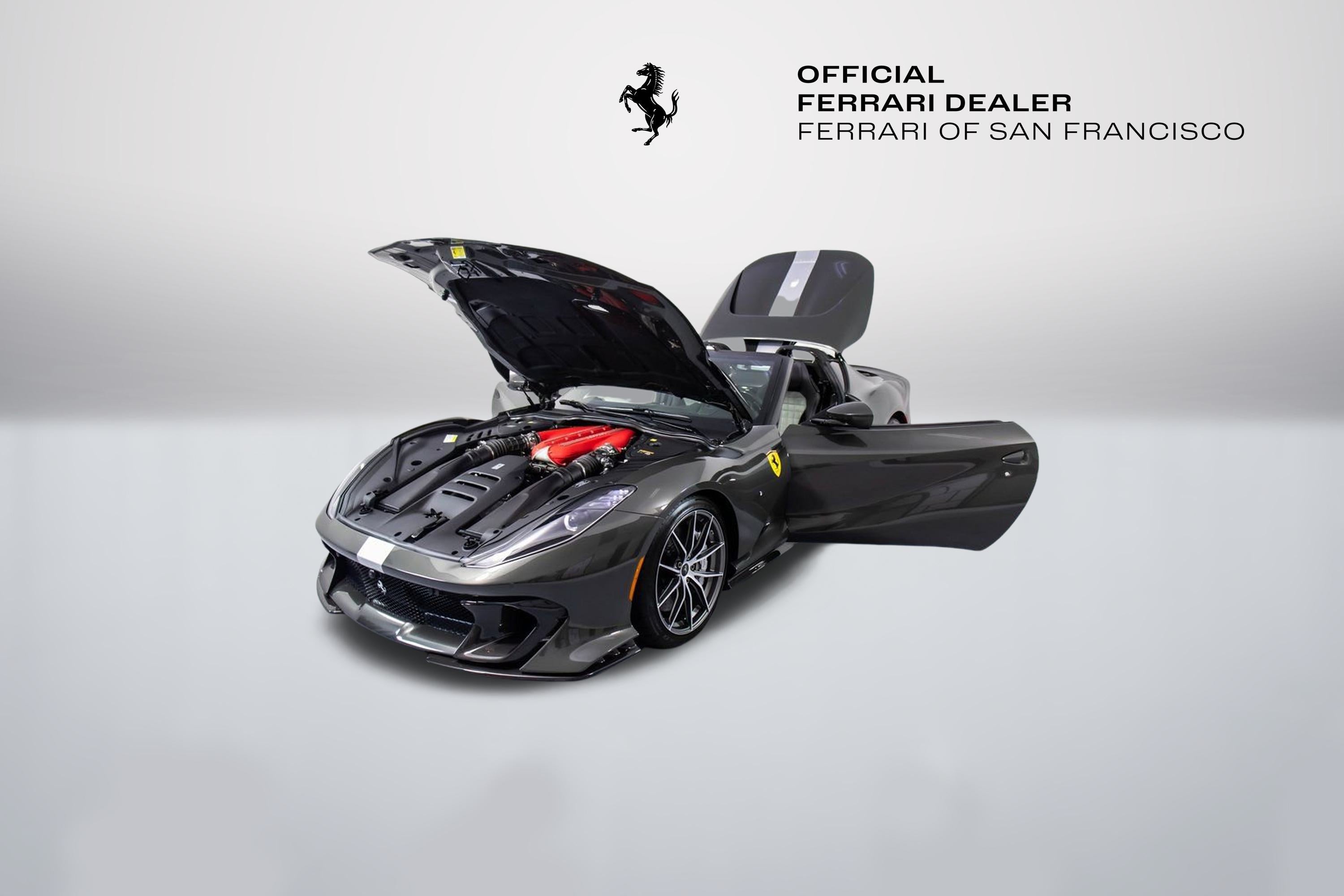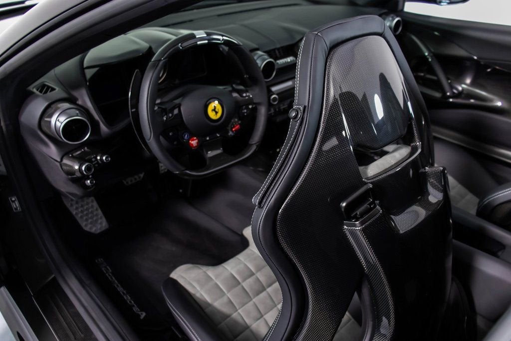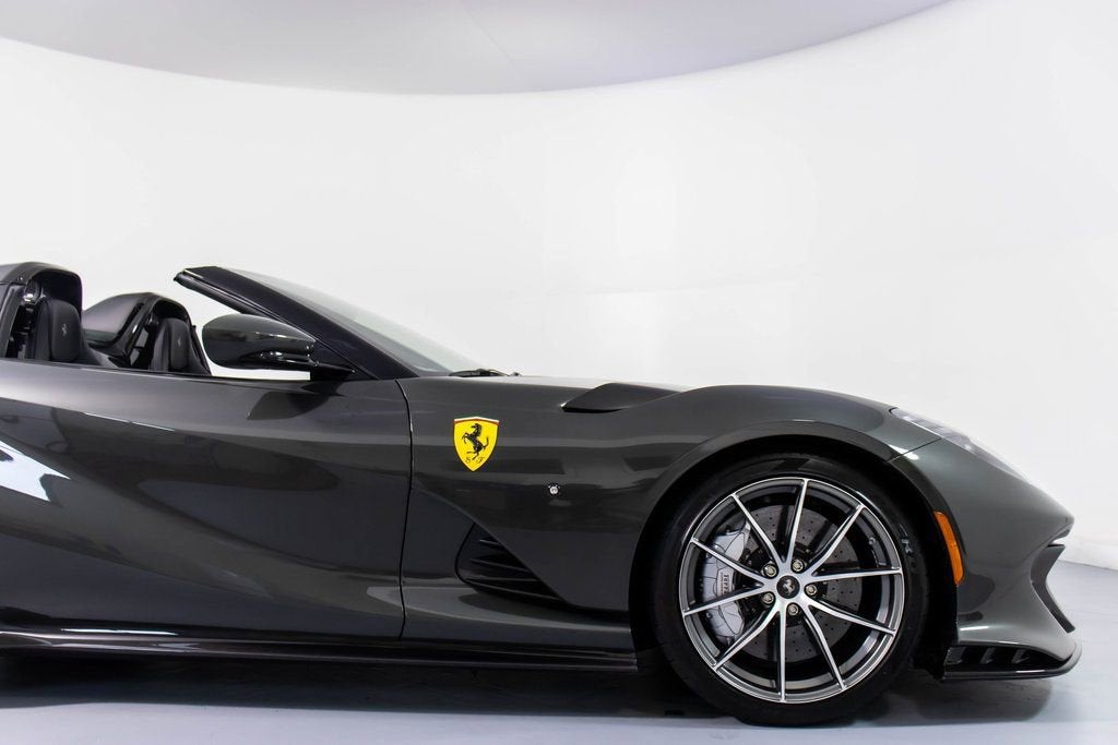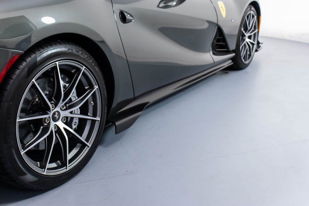 302599 Exterior: Grigio Scuro Mic Interior: Nero Mats: Nero 2024 Ferrari 812 Competizione A Options: Apple CarPlay Adaptive Headlights with SBL Function Alcantara Interior Carpet Airbrushed Scuderia Shields Atelier Car Atelier New York Brake Calipers in Aluminum Hardtop in Carbon Fiber Rear Diffuser in Carbon Fiber Front Air Intakes in Carbon Fiber Carbon Fiber Underdoor Cover Carbon Fiber Wheel Cups Carbon Fiber Inner Door Handle Carbon Fiber Instrument Cover Carbon Fiber Rear Shelf Upper Part of Center Console in Carbon Fiber Colored Passenger Compartment Details in Nero Dashboard Inserts in Carbon Fiber Front Lift Cavallino Stitched on Headrest in Grigio Scuro Additional Colored Mats with Logo Leather Upholstery in Nero Single-Color Livery on Upper Steering Wheel Rim Front and Rear Parking Cameras Special 2-Layer Colors 20" Forged Diamond Racing Wheels Aluminum Rev. Counter Checked Racing Seat Racing Seat Lifter High Power Hi-Fi System Custom Specifications Colored Standard Stitching O.R. The 2024 Ferrari 812 Competizione A in Grigio Scuro Mic is a breathtaking expression of open-top V12 performance, elevated by an extensive list of carbon-fiber enhancements and Atelier-level personalization. Its aggressive exterior is sharpened by a carbon-fiber hardtop, front air intakes, rear diffuser, underdoor covers, wheel cups, instrument cover, and rear shelf, all underscoring the cars racing pedigree. The Nero interior continues the lightweight theme with Alcantara carpeting, carbon-fiber door handles, and carbon-fiber dashboard inserts, while the checked racing seatscomplete with a Cavallino stitched in Grigio Scurodeliver a purposeful, motorsport-inspired cabin feel. Comfort meets performance with a front lift, front and rear parking cameras, Apple CarPlay, and a High Power Hi-Fi system. The exteriors airbrushed Scuderia shields, special 2-layer paint, and 20" forged diamond racing wheels add exclusivity, while custom specifications, colored passenger compartment details, and precise O.R. stitching complete this meticulously crafted one-off inspired masterpiece.
