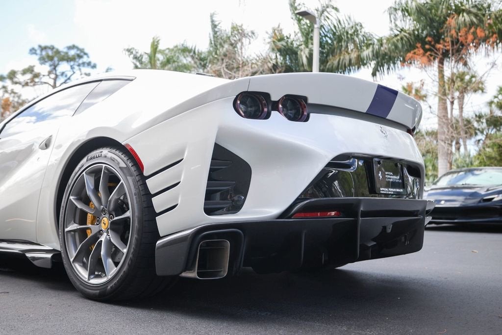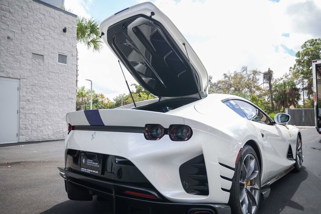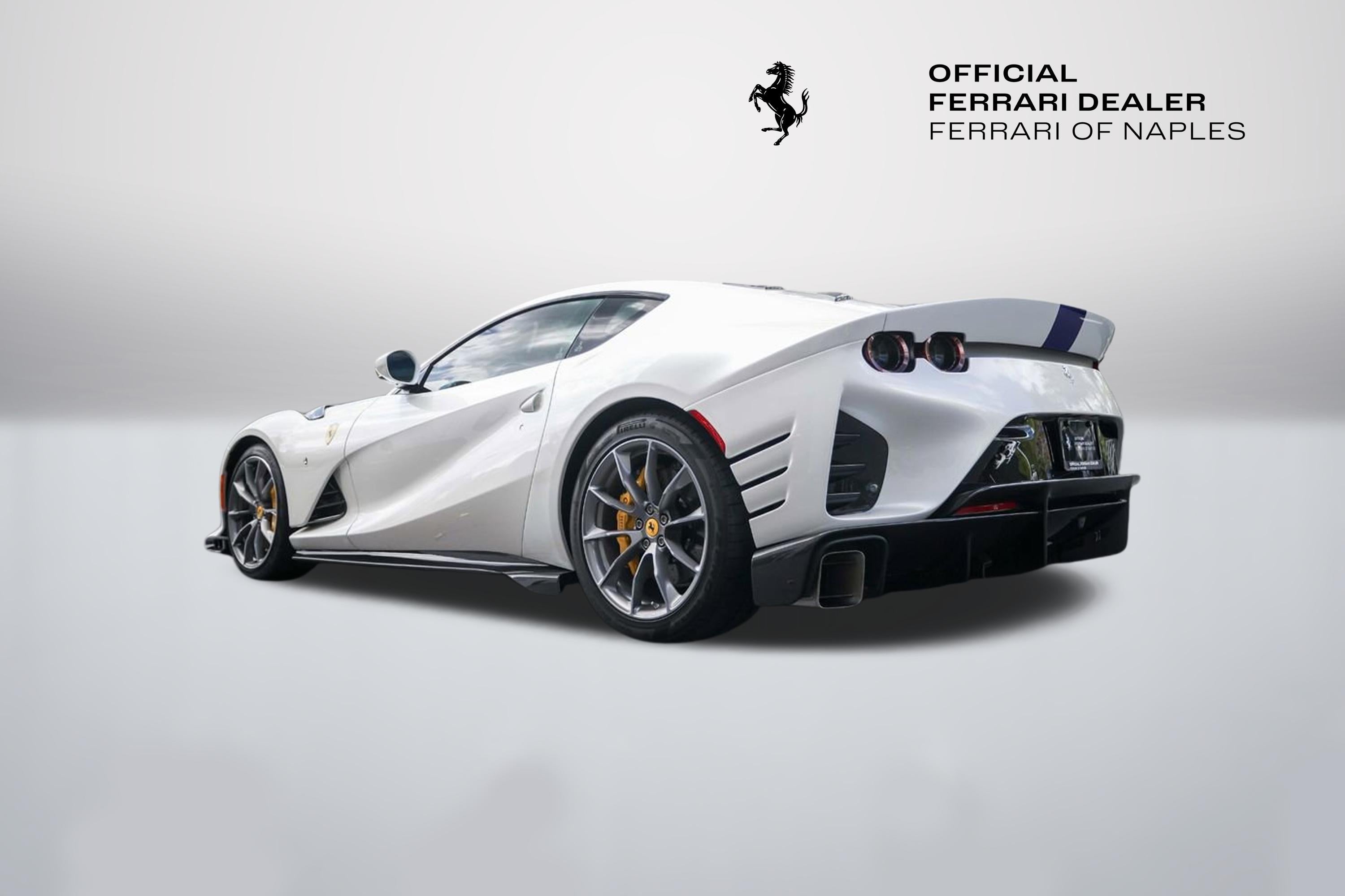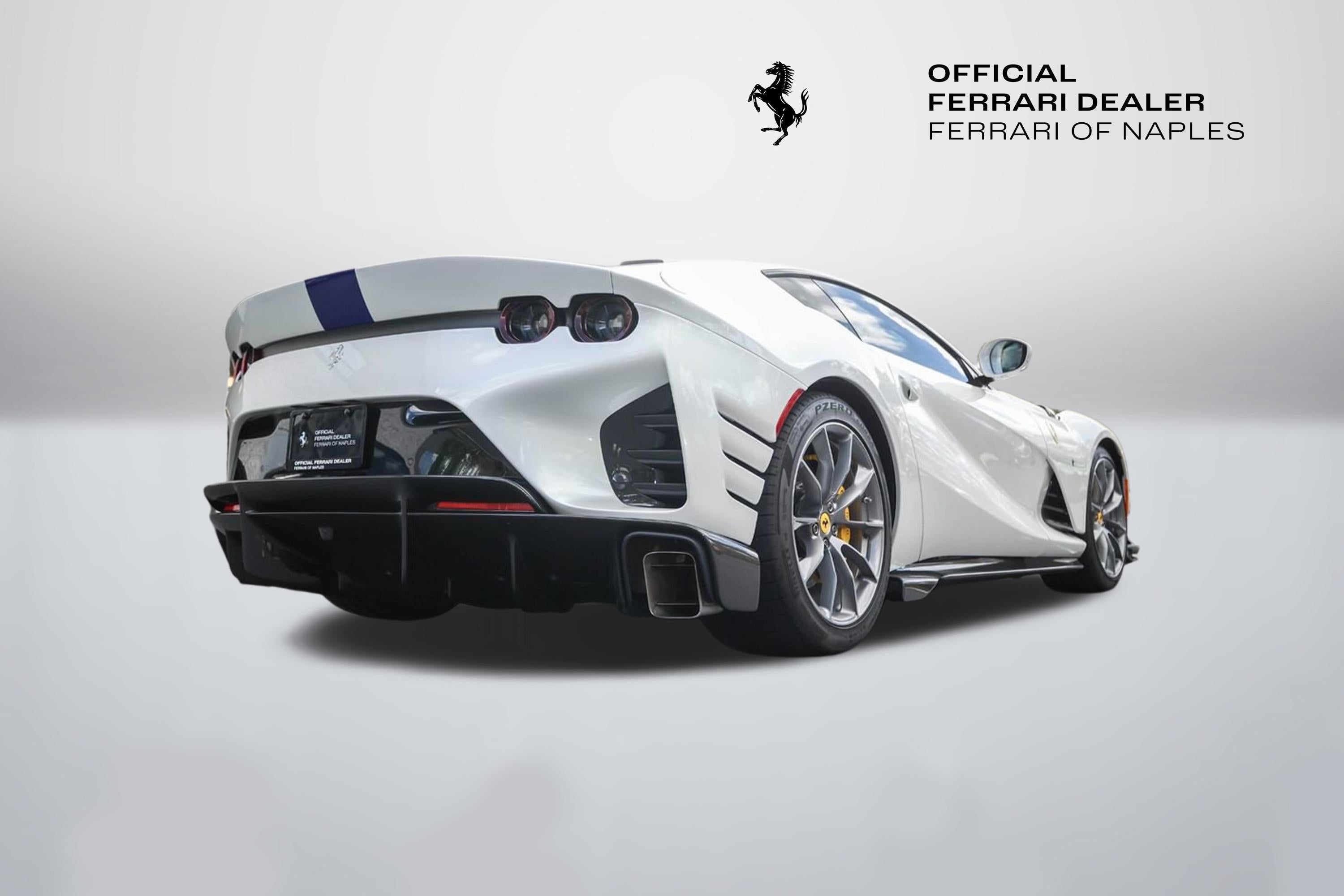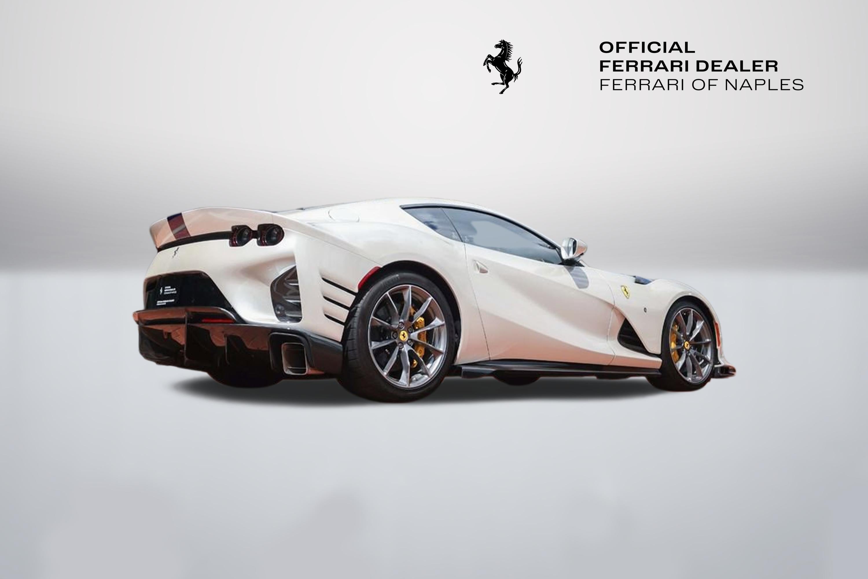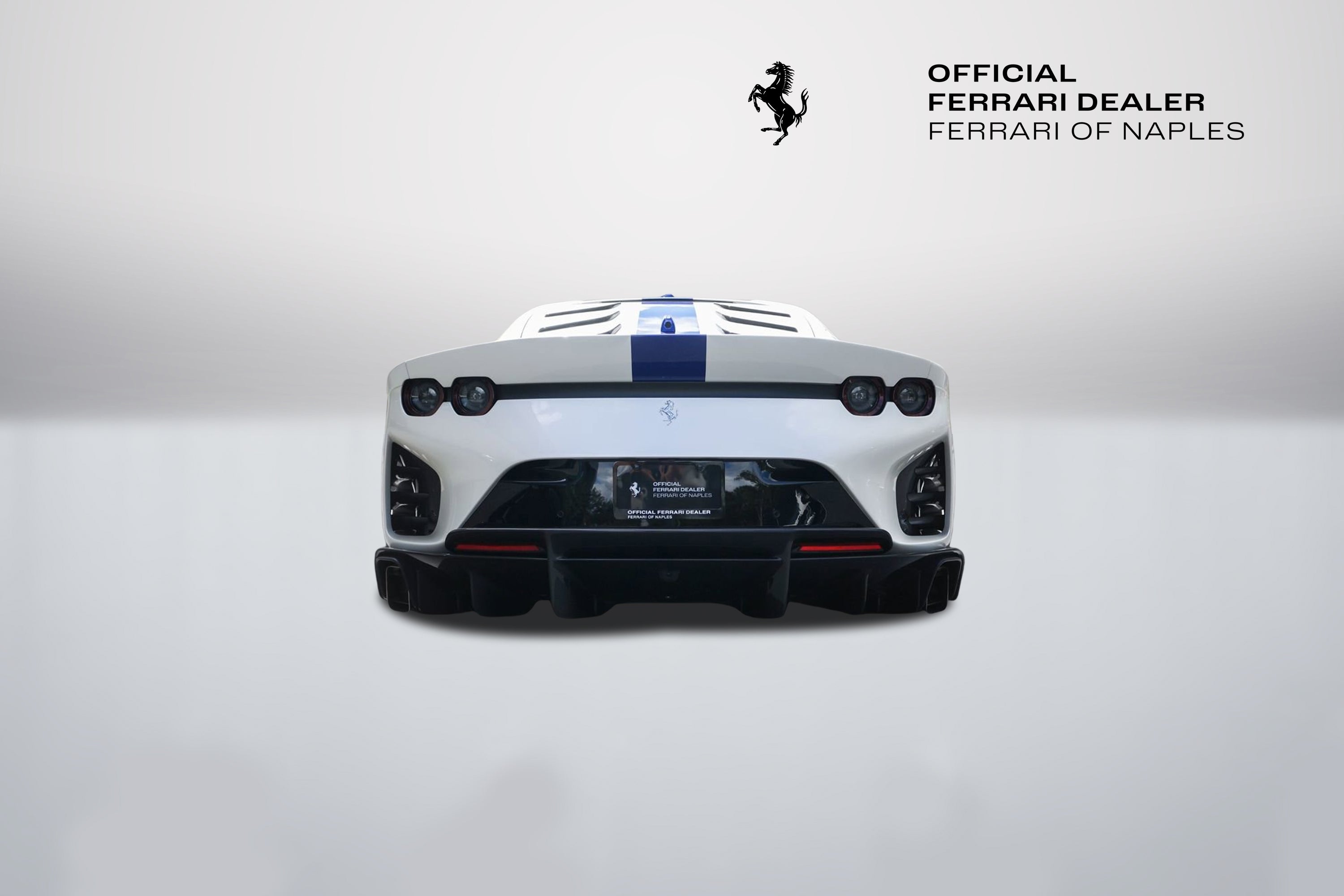 Ferrari of Naples is proud to present this extraordinary 2023 Ferrari 812 Competizione, finished in the rare and spectacular Bianco Fuji triple-layer paint over Nero Alcantara with Blu Elettrico Alcantara racing seats. Showing just 1,602 miles, this exceptional example is Ferrari Approved, one owner from new, and was commissioned through the Ferrari New York Atelier, making it a truly bespoke and highly collectible configuration. The 812 Competizione represents the ultimate evolution of Ferraris front-engine naturally aspirated V12 platform. Powered by Ferraris legendary 6.5-liter V12 producing 819 horsepower, it is the most powerful naturally aspirated road-going Ferrari ever produced, delivering a breathtaking 9,500 rpm redline and an unforgettable driving experience. Built in extremely limited numbers, the Competizione features extensive aerodynamic development, including vortex generators, a redesigned rear diffuser, and lightweight carbon fiber components throughout the body. The result is a machine engineered for ultimate performance while maintaining Ferraris unmistakable design language. This particular example stands out with its New York Atelier specification, finished in the stunning Bianco Fuji special paint, one of Ferraris most prestigious multi-layer finishes. The cabin is equally distinctive, featuring Nero Alcantara with striking Blu Elettrico Alcantara seat accents, white contrast stitching, and extensive carbon fiber detailing throughout. With its rare Atelier configuration, low mileage, Ferrari Approved certification, and one-owner provenance, this 812 Competizione represents an extraordinary opportunity to acquire one of Ferraris most desirable modern V12 supercars. Exterior Bianco Fuji Special 3-Layer Paint New York Atelier Commission Giallo Modena Brake Calipers Carbon Fibre Rear Diffuser Carbon Fibre Front Air Intakes Carbon Fibre Under-Door Trim Carbon Fibre Upper Tunnel Trim Scuderia Ferrari Fender Shields 20" Forged Diamond Wheels Interior Nero Alcantara Interior Blu Elettrico Alcantara Racing Seats Carbon Fibre Racing Seats (Large Size) Carbon Fibre Dashboard Inserts Carbon Fibre Rear Parcel Shelf White Embroidered Cavallino Headrests White Special Contrast Stitching Alcantara Carpets and Floor Mats Alcantara Steering Wheel Grips (Blu Elettrico) White Tachometer Dial Colored Interior Leather Inserts Equipment & Features Apple CarPlay Adaptive Front Headlights Front Suspension Lifter Integrated Audio System Ferrari Personalization Package Atelier Design Specification As the official Ferrari dealer of Southwest Florida, Ferrari of Naples offers an exclusive selection of Ferrari models, backed by unparalleled service and expertise. Our commitment to excellence ensures that each vehicle meets the highest standards of quality and performance. To schedule a private viewing or request a personalized video tour of this 2023 Ferrari 812 Competizione, please contact us: Phone: (239) 256-1400 Email: smora@newcountry.