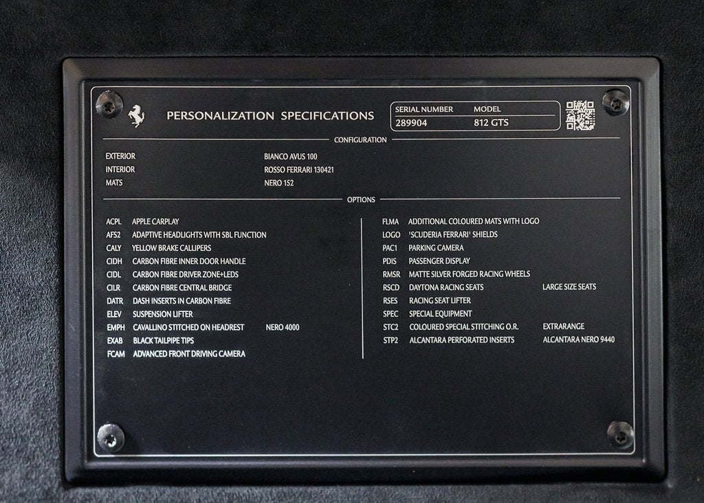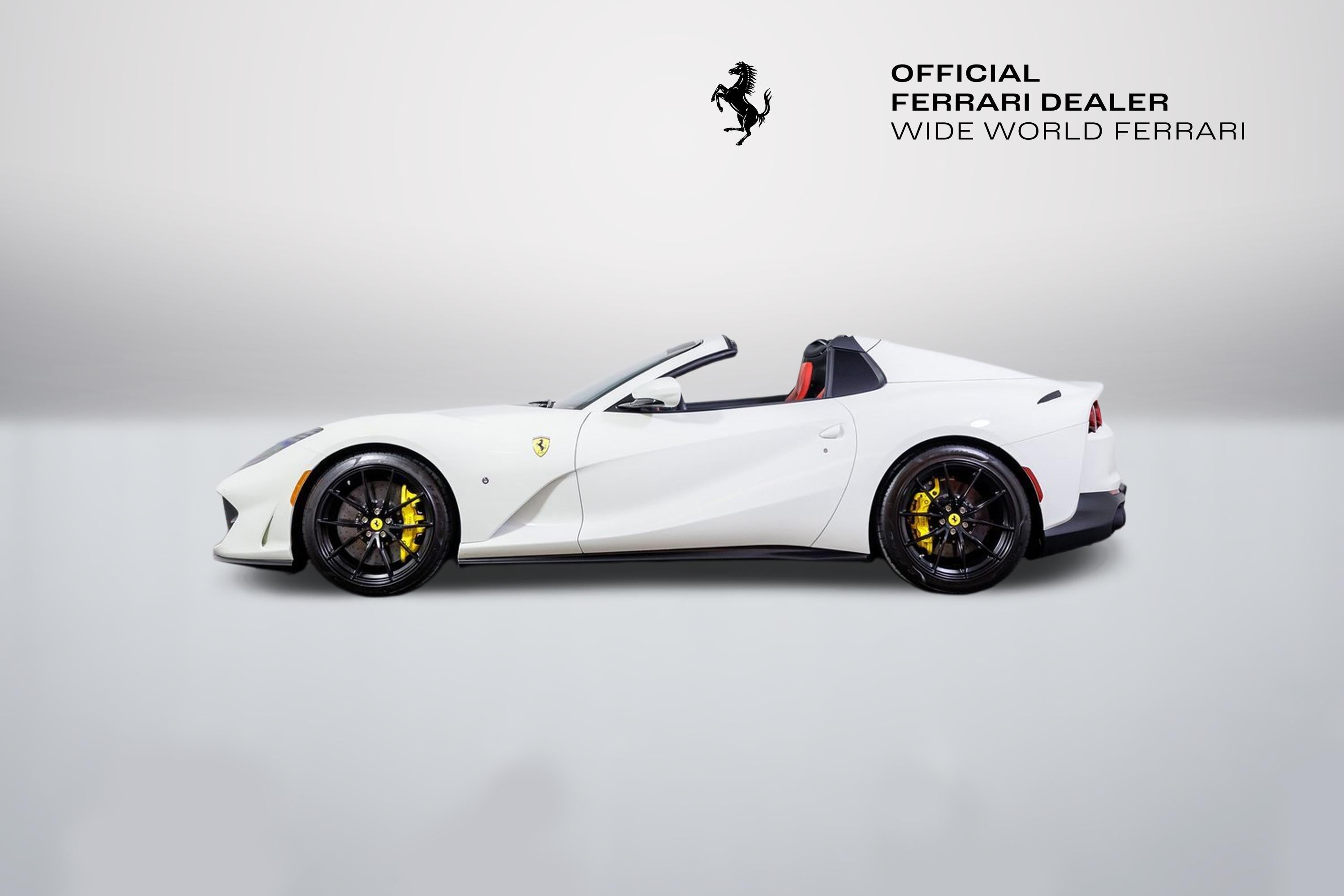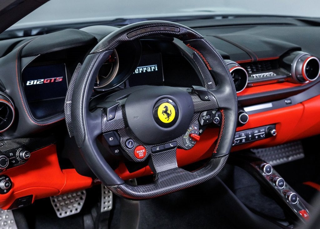 Wide World Ferrari is proud to present this exceptional 2023 Ferrari 812 GTS, showing just 1,202 miles and supported by a clean Carfax. As the final and most refined iteration of Ferraris naturally aspirated V12 spider, the 812 GTS stands as a celebration of Maranellos legendary front-engine lineage, delivering 789 horsepower of open-air exhilaration with unmistakable Italian presence. Finished in timeless Bianco Avus, this example radiates purity and aggression in equal measure. The crisp white exterior is dramatically contrasted by 20 Racing Wheels in Nero Opaco and bold Giallo Modena brake calipers, while black ceramic-coated tailpipes add a purposeful finishing touch. Scuderia Ferrari shields on the fenders proudly reference the brands racing heritage, completing a look that is both elegant and unmistakably performance-focused. Inside, the cabin is appointed in Rosso Ferrari, creating a striking contrast to the exterior and immersing occupants in Ferraris signature sporting atmosphere. Daytona-style racing seats in Alcantara Nera feature carbon fibre shells and special stitching in an Extra Campionario color, blending bespoke craftsmanship with competition-inspired design. Carbon fibre inner door handles, a carbon fibre center console, carbon fibre dashboard accents, and a carbon fibre driver zone with LED shift indicators on the steering wheel reinforce the cockpits Formula 1inspired character. Further enhancing the experience, this 812 GTS is equipped with a passenger display, embroidered Cavallino headrests in Nero, overmats with embroidered logos, and a height adjuster for tailored comfort. Apple CarPlay seamlessly integrates modern connectivity, while the Adaptive Frontlight System, suspension lifter, advanced front driving camera, and rear parking camera ensure confidence and usability in any setting. Additionally, the car is Ferrari Approved and eligible for up to a 2-year Ferrari Certification warranty (available at an additional charge). Currently benefits from an active warranty until March 2028 and complimentary maintenance March 2030. As the only 4-Time Cavallino Winning Ferrari Center in the tri-state area and one of the first Ferrari Centers in North America, we pride ourselves on exceptional service. We assist with all aspects of your purchase, including trade-ins, shipping, registration, non-reported financing, and customizations. Conveniently located in Rockland County, just under 30 miles from Manhattan. For more information, email us at ferrarivip@newcountry.com or call 845-682-0129.