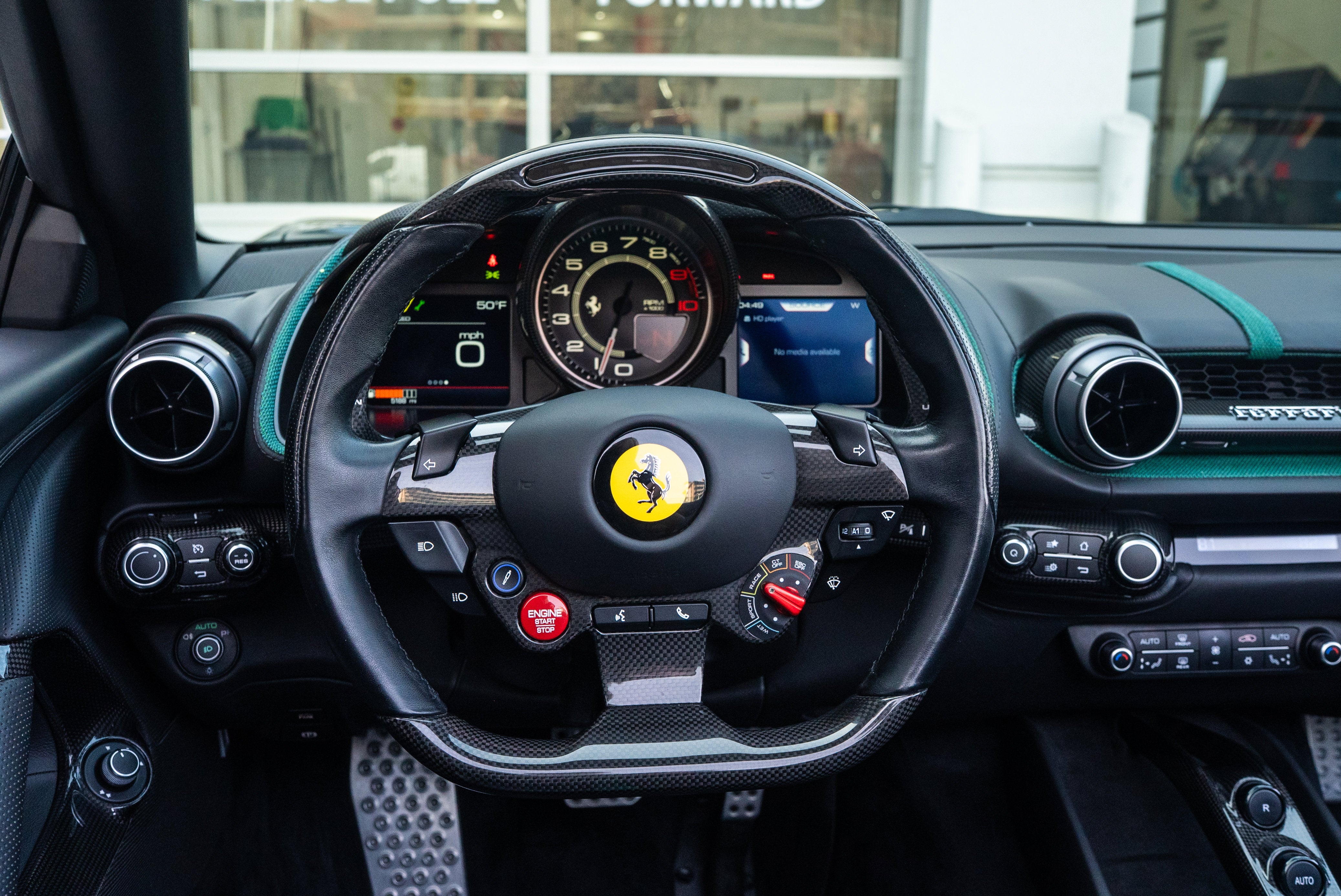 TAILOR-MADE 2022 812 GTS. Hand painted shields, forged TDF wheels, custom green Kvadrat Fabric inserts and black Poltrona Frau Africa Leather in Nero. Original window sticker available upon request.