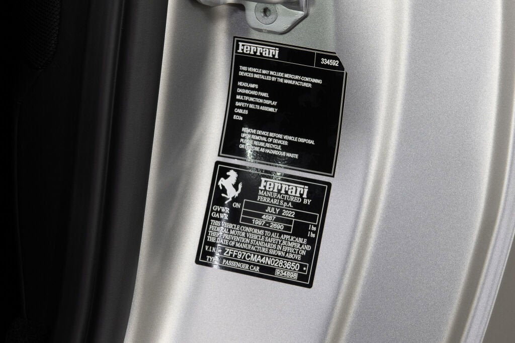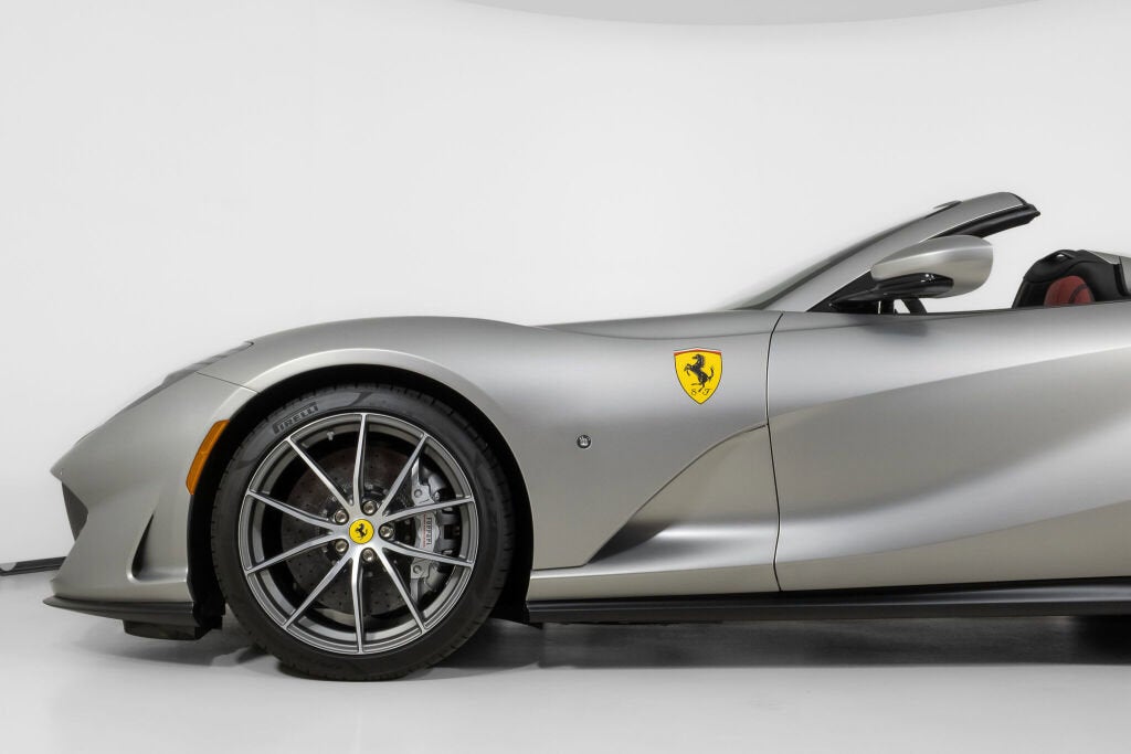 Ferrari Beverly Hills is proud to present this 2022 Ferrari 812 GTS finished in Alluminio Opaco over a richly specified Bordeaux leather interior, showing just 1,185 miles from new. This is a one-owner example with an exceptional configuration, combining subtle, modern exterior presentation with an extensively optioned carbon-focused cockpit. The vehicle has successfully completed the Ferrari Approved inspection and is offered as a Certified Pre-Owned example. As the first series-production front-engined V12 Ferrari Spider in 50 years, the 812 GTS combines open-air driving with the raw intensity of a 789-horsepower, naturally aspirated V12. With a retractable hard top and a 0 to 60 mph time of 2.8 seconds, it offers the same explosive performance as the 812 Superfast with the added thrill of top-down motoring. Its design and driving experience pay tribute to legendary Ferrari Spiders of the past, from the 365 GTS/4 to the F50. Finished in Alluminio Opaco, the matte aluminum paintwork gives the 812 GTS a distinctly modern, almost architectural character subtle in tone yet unmistakably aggressive in form. Painted Scuderia shields add a tailored, bespoke touch that elevates the exterior without disrupting its clean, monochromatic intent. Inside, the Bordeaux leather cabin introduces warmth and elegance, softening the exterior’s technical edge and giving the car a decidedly grand touring sensibility. The result is a configuration that feels both assertive and refined: the matte gray projecting confidence and performance, the Bordeaux interior delivering richness and class. Rather than competing, these two personalities work in harmony, creating an 812 GTS that feels deliberate, mature, and exceptionally well judged. The Ferrari Approved 101-point Inspection has been completed, and the vehicle is eligible for a Ferrari warranty extension. The 7-Year Genuine Maintenance Program provides complimentary annual servicing through November 22nd, 2029. Exterior Options Include: