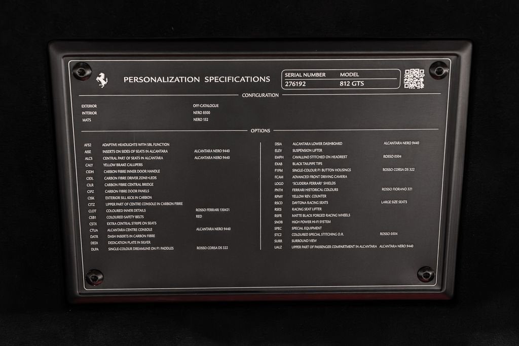 Ferrari Lake Forest is Proud to Present this Certified Pre Owned 2022 Ferrari 812 GTS Finished in Historical Rosso Fiorano over Nero Leather Interior. This Ferrari 812 GTS is Optionally Equipped with: Adaptive Headlights with SBL Function Giallo Brake Calipers Suspension Lifter Black Tailpipe Tips Scuderia Ferrari Shields Matte Black Forged Racing Wheels Carbon Fiber Inner Door Handles Carbon Fiber Driver Zone with LEDs Carbon Fiber Central Bridge Carbon Fiber Door Panels Exterior Sill Kick in Carbon Fiber Upper Part of Center Console in Carbon Fiber Dashboard Inserts in Carbon Fiber Daytona Carbon Fiber Racing Seats Racing Seat Lifter Inserts on Side of Seats in Alcantara Nero Central Part of Seats in Alcantara Nero Colored Inner Details in Rosso Ferrari Colored Safety Belts in Rosso Alcantara Center Console Single Color Dreamline on F1 Paddles in Rosso Corsa Alcantara Lower Dashboard in Alcantara Nero Cavallino Stitched on Headrests in Rosso Single Color F1 Button Housing in Rosso Corsa Giallo Rev Counter High Power HiFi System Colored Special Stitching in Speciale Rosso Surround View Camera Upper Part of Passenger Compartment in Alcantara Nero Advanced Front Driving Camera Dedication Plate in Silver The Ferrari 812 GTS isnt so much a car as it is a thunderstorm in red paint. You press the starter and the world around you simply stops to listen. Twelve cylinders, all howling in perfect harmony, tearing at the horizon as if offended by its very existence. The roof comes off, the noise gets louder, and suddenly youre not drivingyoure conducting a symphony of chaos. The Certified Pre Owned Coverage is Included in our asking price. For more information on this Certified Pre Owned Ferrari 812 GTS call one of our Ferrari Specialists today at 847.295.6560