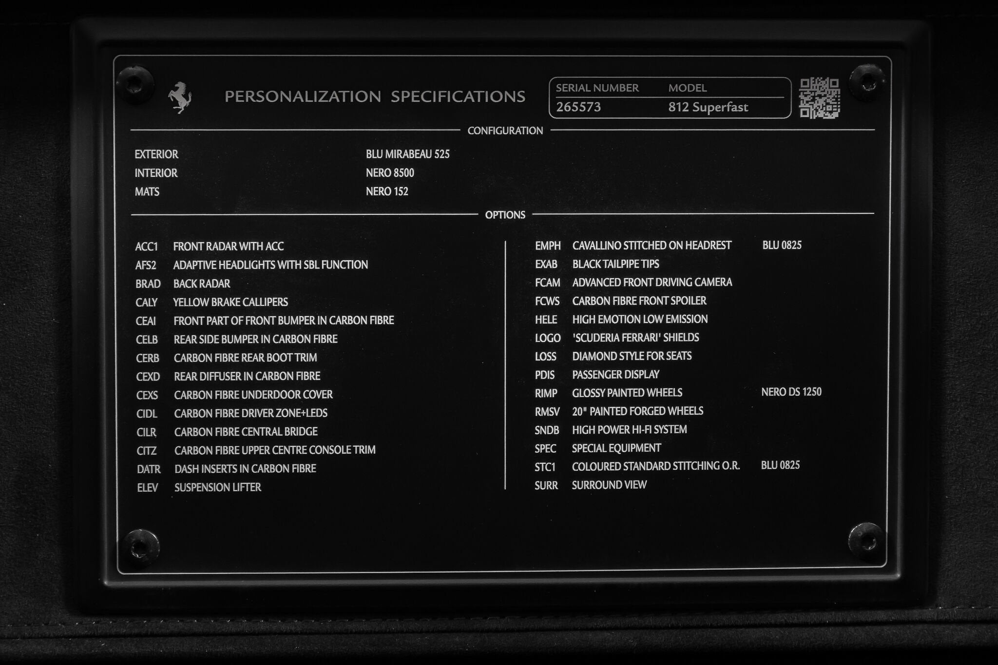 • Embroidered Cavallino emblem on headrest (Blu)