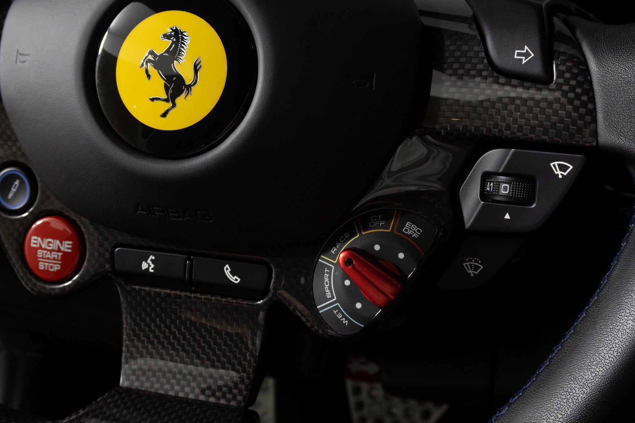 • Carbon fibre trim driver zone and LED shift indicators on steering wheel
