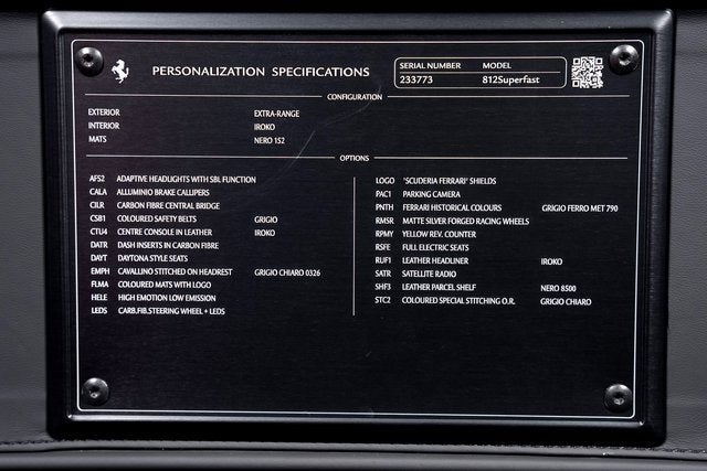 Ferrari of Long Island is proud to present this exceptional Ferrari 812 Superfast, finished in Grigio Ferro Metallic over a distinctive Iroko interior with Grigio Chiaro contrast stitching. This sophisticated and rare specification highlights the 812 Superfasts sculpted lines while complementing the raw intensity of Ferraris naturally aspirated V12 flagship. At its core, the 812 Superfast delivers breathtaking performance from one of the most powerful naturally aspirated V12 engines ever produced. This example is equipped with 20-inch racing wheels finished in Matte Grigio Nurburgring, paired with Alluminio brake calipers that provide confident, high-performance stopping capability. Scuderia Ferrari fender shields proudly display the marques motorsport heritage, while the vibrant yellow tachometer keeps the soaring V12s upper rev range prominently in the drivers line of sight, a constant reminder of the engines exhilarating character. The cabin blends grand touring comfort with race-inspired detail. Full-electric Daytona seats provide exceptional support and adjustability, ensuring long-distance comfort without compromising sportiness. Carbon fiber dashboard accents and a carbon fiber center console reinforce the cars performance-focused environment, while embroidered Cavallino headrests in Grigio Chiaro add a refined finishing touch to the uniquely appointed Iroko interior. For enhanced visibility and confidence, this 812 Superfast is equipped with the Adaptive Frontlight System, which adjusts illumination based on steering input, along with a rear parking camera to assist during low-speed maneuvering. These features ensure that despite its extraordinary performance capabilities, the 812 remains approachable and practical for everyday enjoyment. This vehicle has successfully passed a comprehensive multi-point inspection conducted by our factory-trained technicians and is enrolled in the Ferrari Approved Certified Pre-Owned Program, offering up to two years of additional Ferrari Power Approved Warranty coverage for added peace of mind. Please contact us for complete details.