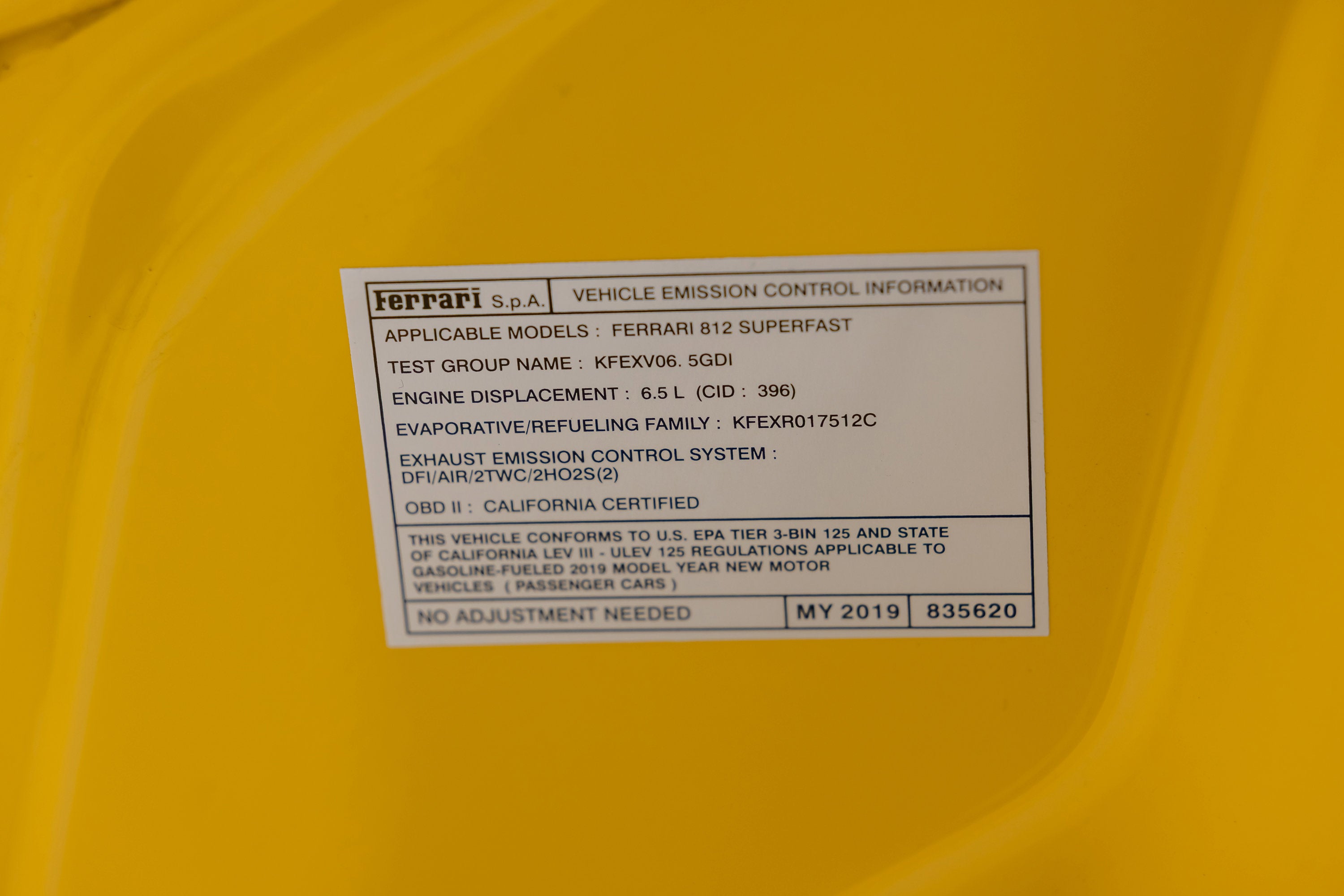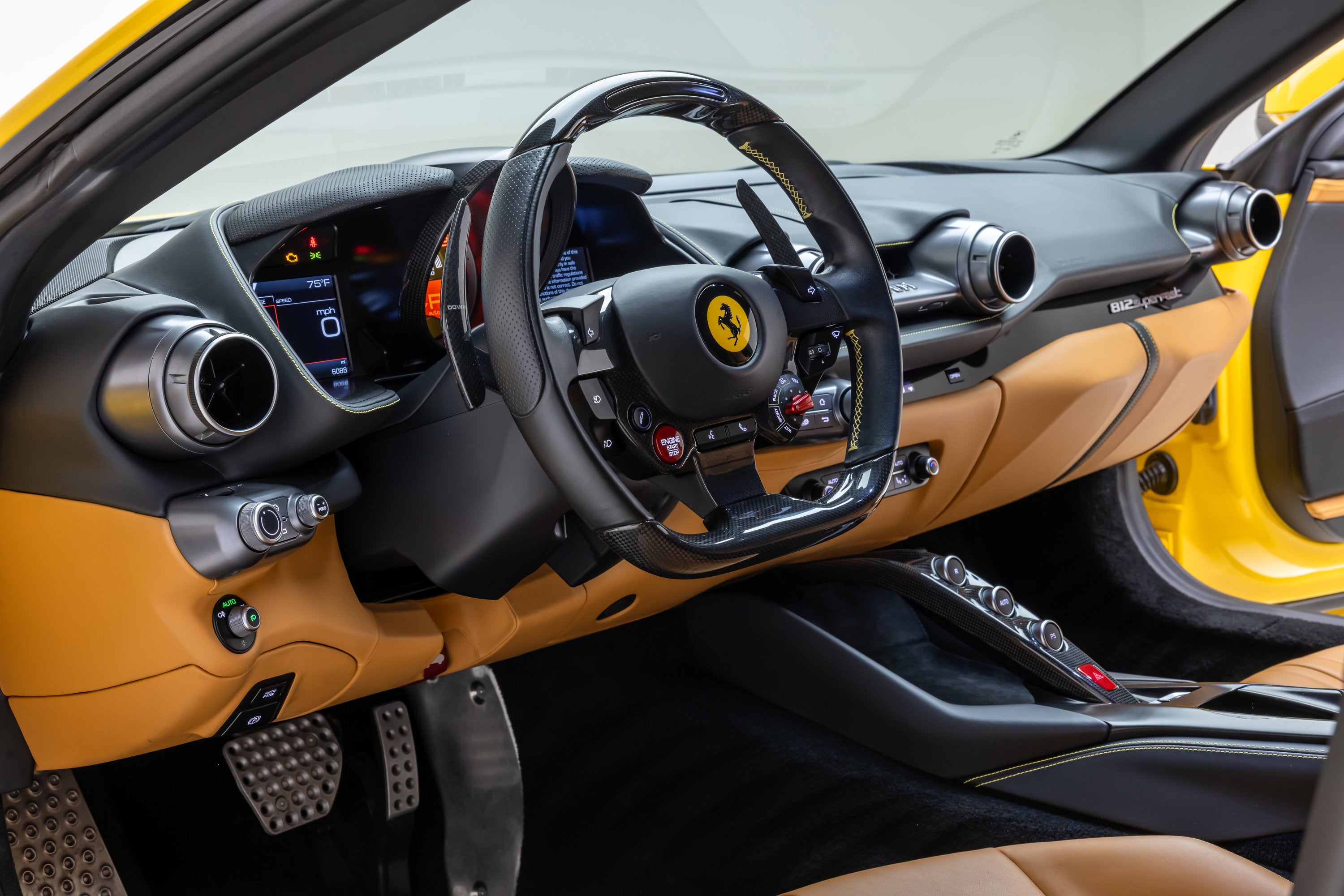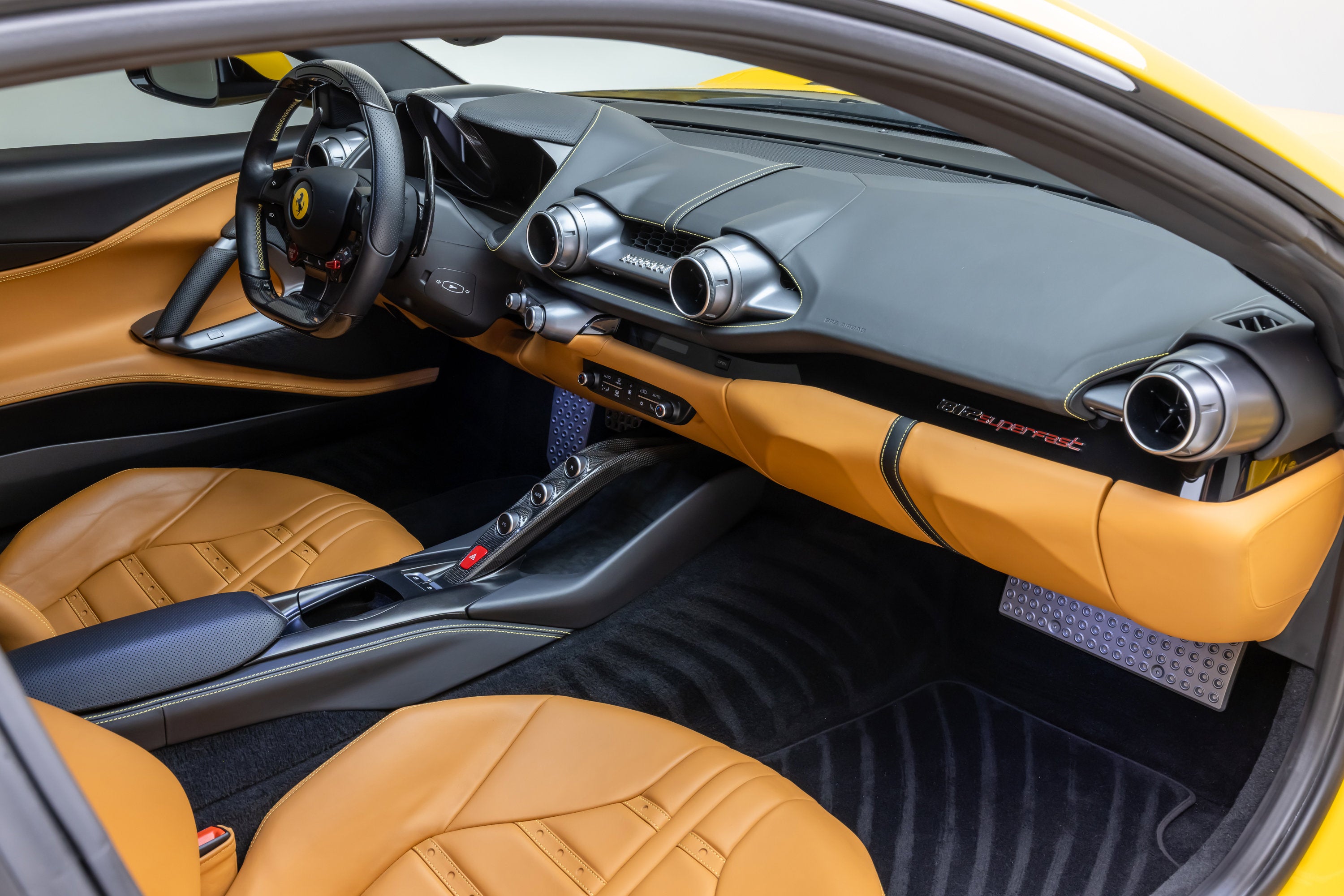 ===== 2019 Ferrari 812 Superfast ===== Giallo Modena over Beige Tradizione 6,097 Miles | VIN: ZFF83CLA8K0246217 Finished in Giallo Modena over Beige Tradizione, this 2019 Ferrari 812 Superfast presents a highly desirable specification paired with documented ownership and strong service history. With just 6,097 miles, this example offers an excellent balance of usability and collectability. The exterior is finished in Giallo Modena, complemented by yellow brake calipers, Scuderia Ferrari shields, and gloss black wheels, creating a bold yet cohesive appearance. Black exterior elements---including exhaust tips and rear diffuser---add contrast while maintaining a clean overall presentation. Inside, the cabin is trimmed in Beige Tradizione leather with Nero mats, accented by yellow safety belts, yellow rev counter, and Giallo contrast stitching throughout. Carbon fiber driver-focused options and Daytona style seats complete a well-optioned and visually striking interior. ==== Factory Options & Highlights ==== * Carbon Fibre Driver Zone with LEDs * Carbon Fibre Central Bridge * Daytona Style Seats * Suspension Lifter * Scuderia Ferrari Shields Additional factory options include: