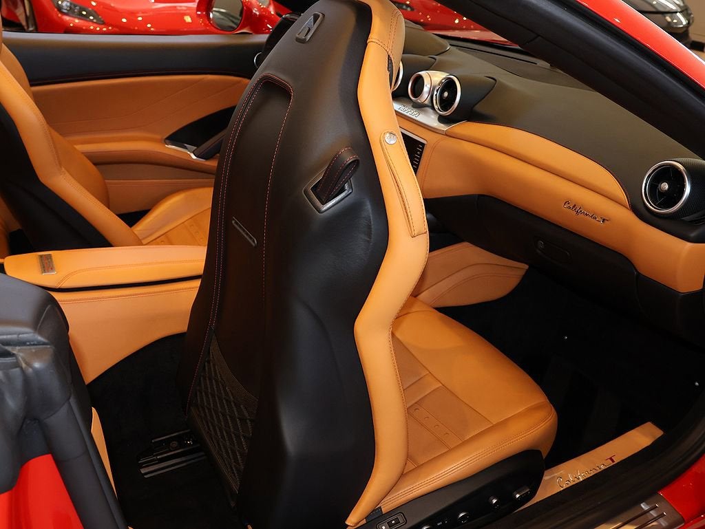 Continental Autosports, an Official Ferrari Dealer since 1975, offers this 2017 Ferrari California T HS finished in Rosso Corsa over Beige Tradizione. With the Handling Speciale Package, this California T gets the front grille and rear diffuser bits covered in matte chrome, darker exhaust tips, front springs that are 16 percent stiffer, 19 percent stiffer rear springs, reprogrammed magnetic dampersmagnetic dampers to provide a sportier ride, and Sport mode is now sportier. The California T HS also comes with new exhaust "silencers." Essentially big square resonators, one per side. They result in an exhaust note 3 decibels louder. The seven-speed dual-clutch transmission has been tweaked for HS duties, now featuring 30 percent quicker upshifts and 40 percent quicker downshifts. Ferrari Options Include: