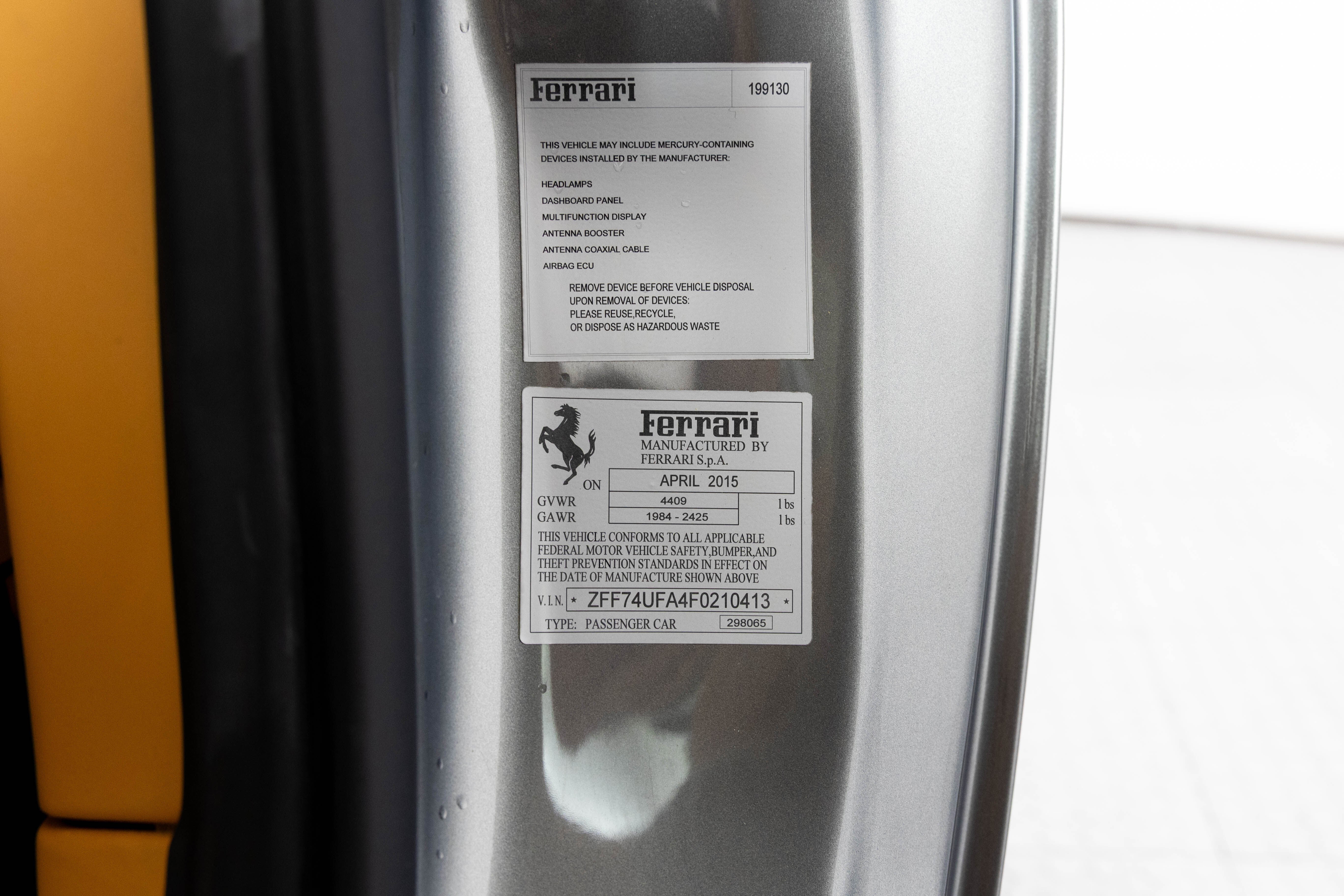 Ferrari South Bay is happy to bring to market this super-low mile, one-owner F12 Berlinetta, finished in velvety Grigio Ferro, with Beige Tradizione interior Leather. When behind the wheel of this fabulous Berlinetta, it becomes immediately obvious why Ferrari have built their reputation around their legendary V12 the instant you give the throttle a jab! The exterior finish is Grigio Ferro - a very sophisticated, finely-metallic silver that changes color with the light and must be seen in person to be truly appreciated. 20 Forged Diamond-Polished wheels surround Carbon Ceramic Brakes with Aluminio Brake Calipers. Scuderia Ferrari Shields adorn the front fenders, The interior is finished in Beige Tradizione leather, with contrasting Nero Stitching throughout the cabin, including the Cavallinos Embroidered on the headrests of the Fully-Electric Seats. Beige Tradizione Leather is continued through the Upper Passenger Compartment, Headliner and Rear Parcel Shelf. The Passenger Compartment details have been finished in Grigio Ferro to match the exterior. This F12 is also fitted with an Athermic Windscreen, helping to manage heat on sunny days. The Front & Rear Suspension lifter and Front and Rear Parking Cameras help with tight maneuvers. This F12 Berlinetta is offered with both original keys, books, tools, car cover and battery tender. It has passed Ferrari's rigorous 101-point Certification Inspection, and is therefore eligible for two years Ferrari Warranty at time of purchase. If you'd like to learn more about this wonderful F12, please reach out to our knowledgeable sales staff! Ferrari South Bay is proudly part of Holand Automotive Group, one of North America’s leading luxury automotive retailers. We offer nationwide shipping, trade-in opportunities, financing, client consignments, and world-class delivery service. Contact us today to explore ownership of this remarkable. Please visit us at 23305 Hawthorne Blvd, Torrance, CA 90505, or call us at (888) 578-8767.