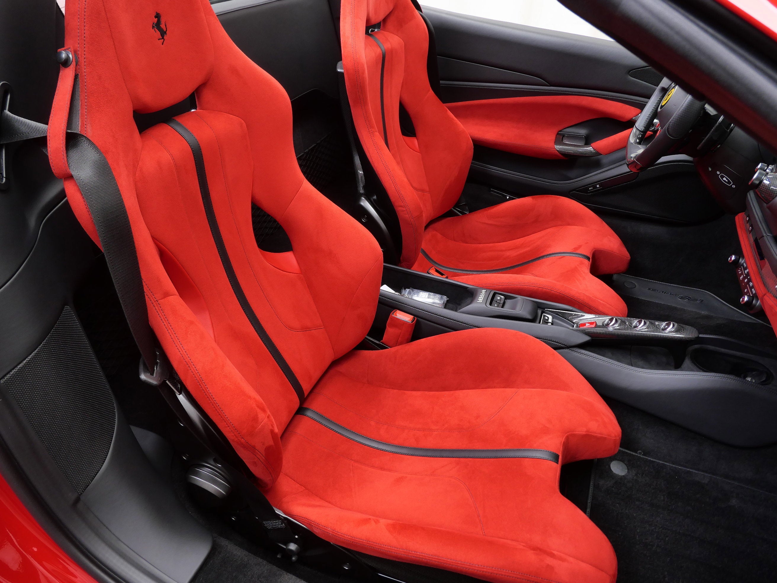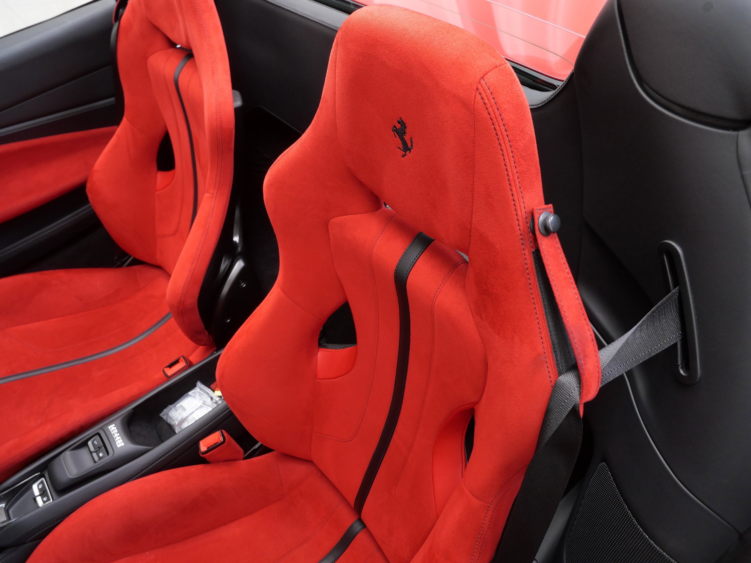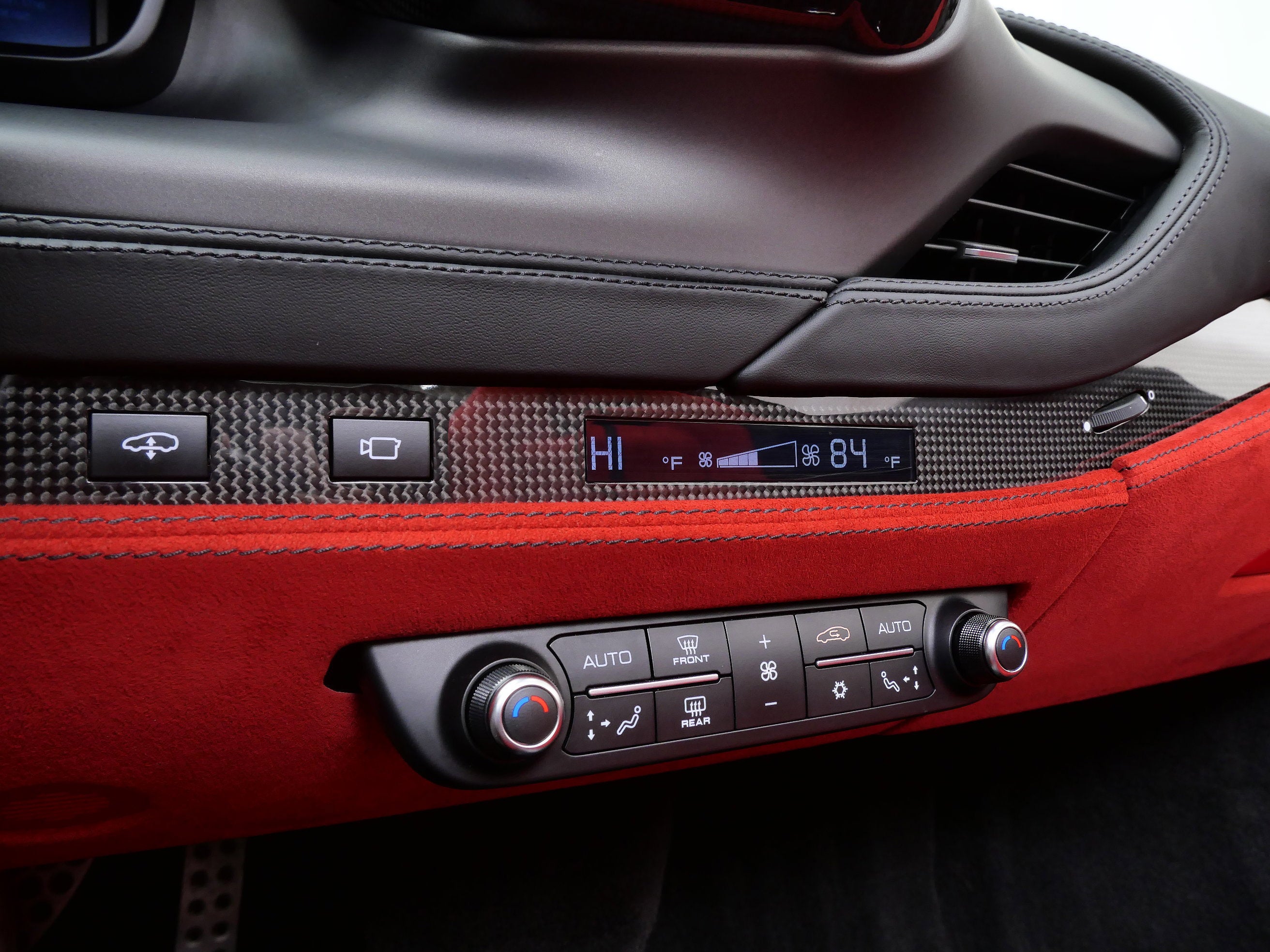 Ferrari Approved Certified Pre-Owned CPO Options: Rosso Corsa over Rosso Ferrari Seats, Giallo Brake Calipers, Carbon Fiber S-Duct, Carbon Fiber Luggage Compartment Accents, Carbon Fiber Lateral Spoilers, Carbon Fiber Under Door Trim, Carbon Fiber Sill Plate, Sport Tailpipe Tips, Carbon Fiber Front Spoiler, Scuderia Ferrari Shields, Forged Wheels in Nero, Titanium Wheel Studs, Alcantara Door Card, Complete Seat, Lower Dashboard in Rosso FX, Rear Pillars in Carbon Fiber, Inner Door Handles is Carbon Fiber, Carbon Fiber LED Wheel and Driver Zone, Carbon Fiber Center Console, Nero Inner Detail, Carbon Fiber Dashboard Inserts, Embroidered Horse in Nero, Mats with Logo, Red Tachometer, Corsa Racing Seats in Carbon Fiber, Red Rings on Dashboard Vents, Nero Contrast Stitching, Alcantara Head Liner in Nera, Adaptive Frontlight System, Blind Spot Detection, Suspension Lifter, Electrochromic Mirrors, Rear Parking Camera. Ferrari Approved Details: