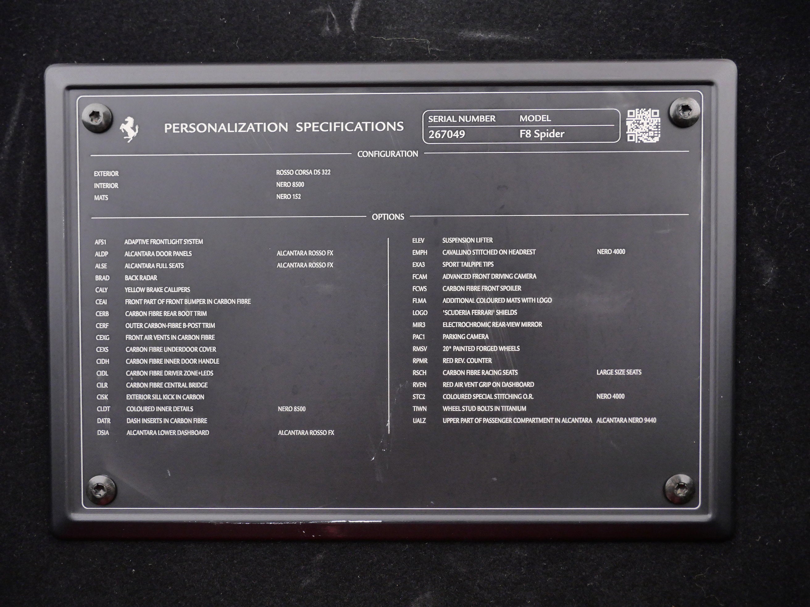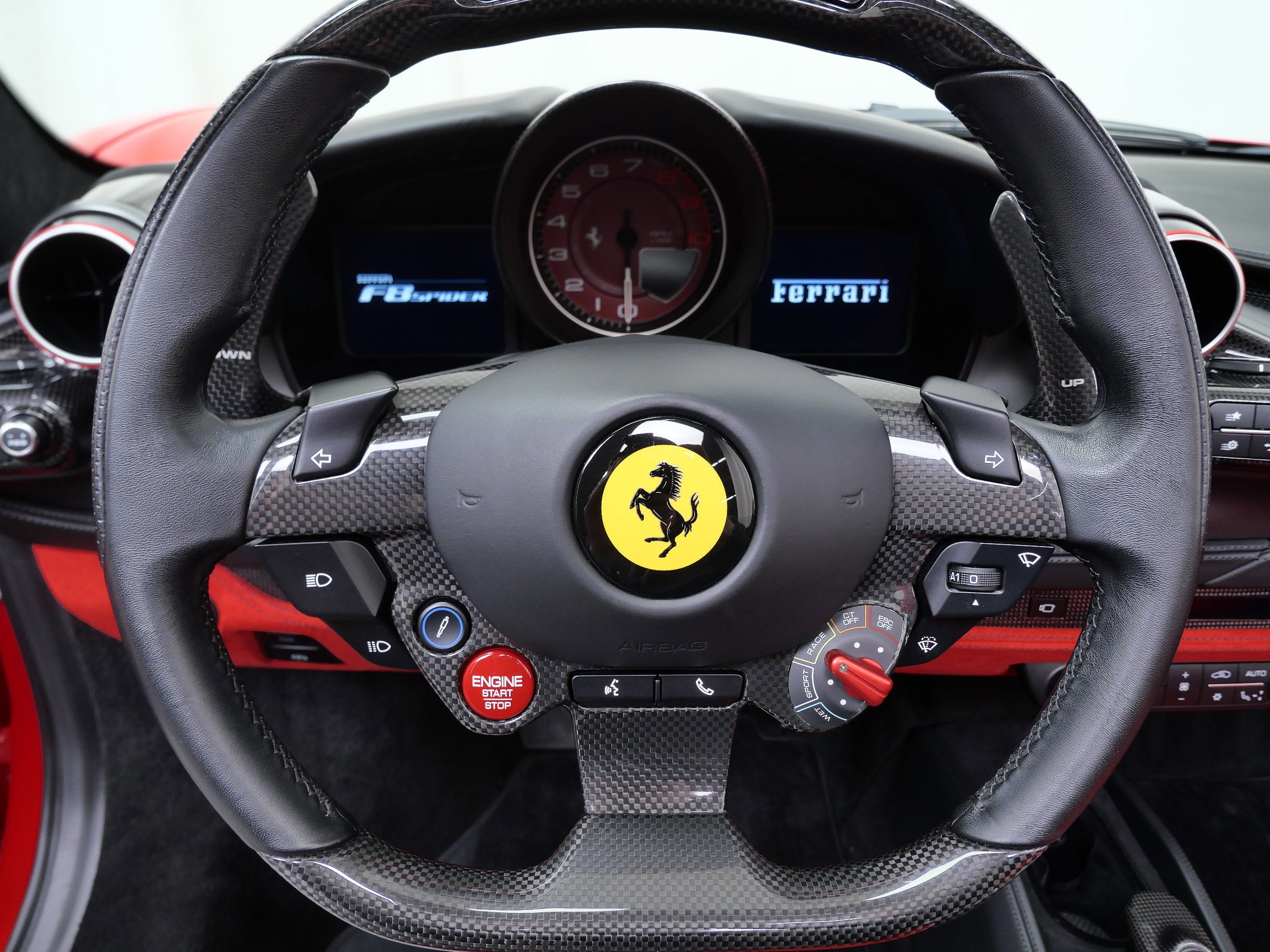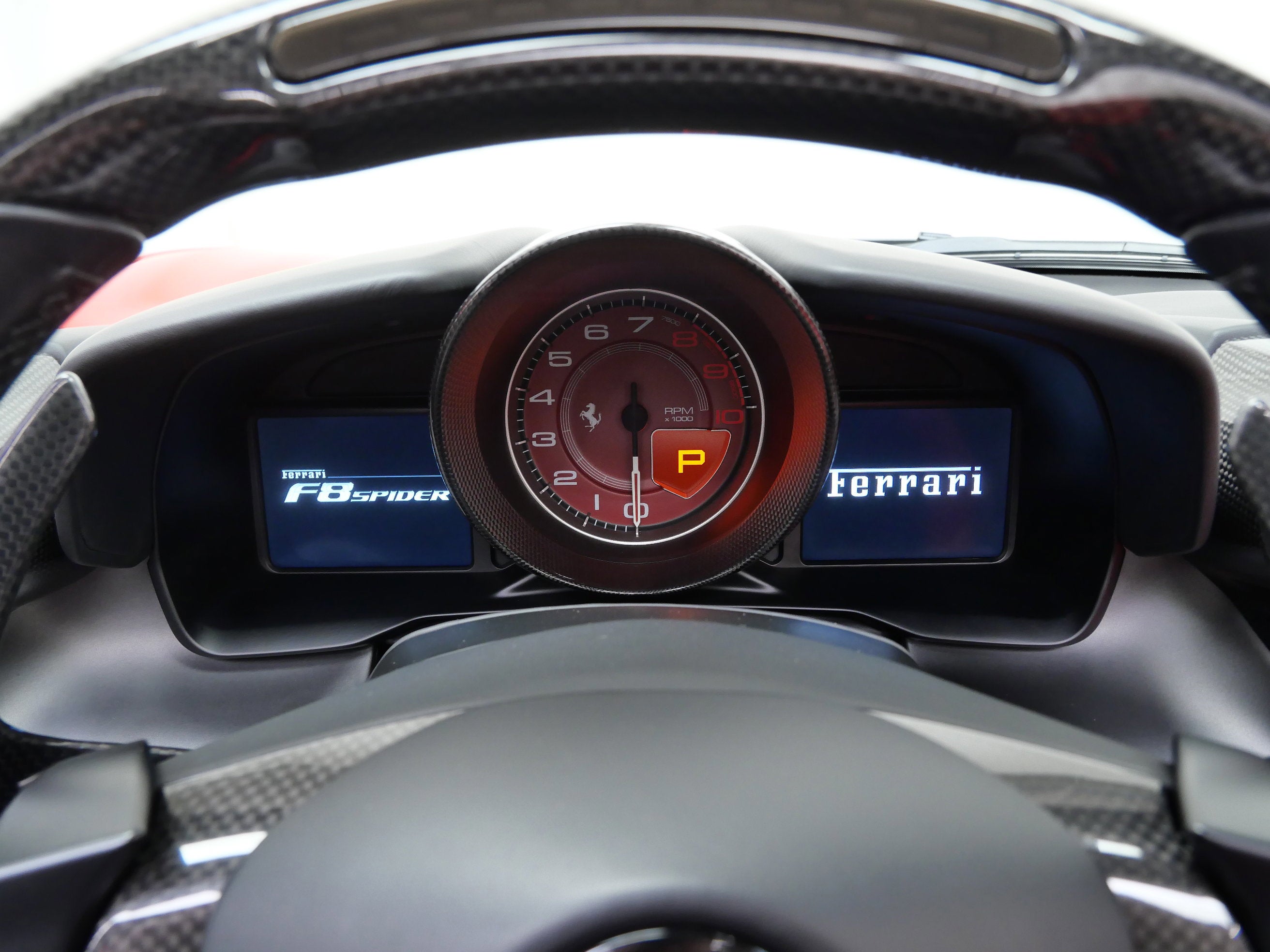 Ferrari Approved Certified Pre-Owned CPO Options: Rosso Corsa over Rosso Ferrari Seats, Giallo Brake Calipers, Carbon Fiber S-Duct, Carbon Fiber Luggage Compartment Accents, Carbon Fiber Lateral Spoilers, Carbon Fiber Under Door Trim, Carbon Fiber Sill Plate, Sport Tailpipe Tips, Carbon Fiber Front Spoiler, Scuderia Ferrari Shields, Forged Wheels in Nero, Titanium Wheel Studs, Alcantara Door Card, Complete Seat, Lower Dashboard in Rosso FX, Rear Pillars in Carbon Fiber, Inner Door Handles is Carbon Fiber, Carbon Fiber LED Wheel and Driver Zone, Carbon Fiber Center Console, Nero Inner Detail, Carbon Fiber Dashboard Inserts, Embroidered Horse in Nero, Mats with Logo, Red Tachometer, Corsa Racing Seats in Carbon Fiber, Red Rings on Dashboard Vents, Nero Contrast Stitching, Alcantara Head Liner in Nera, Adaptive Frontlight System, Blind Spot Detection, Suspension Lifter, Electrochromic Mirrors, Rear Parking Camera. Ferrari Approved Details: