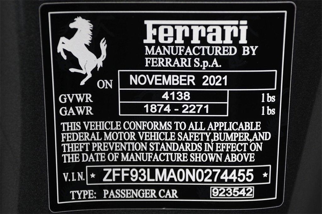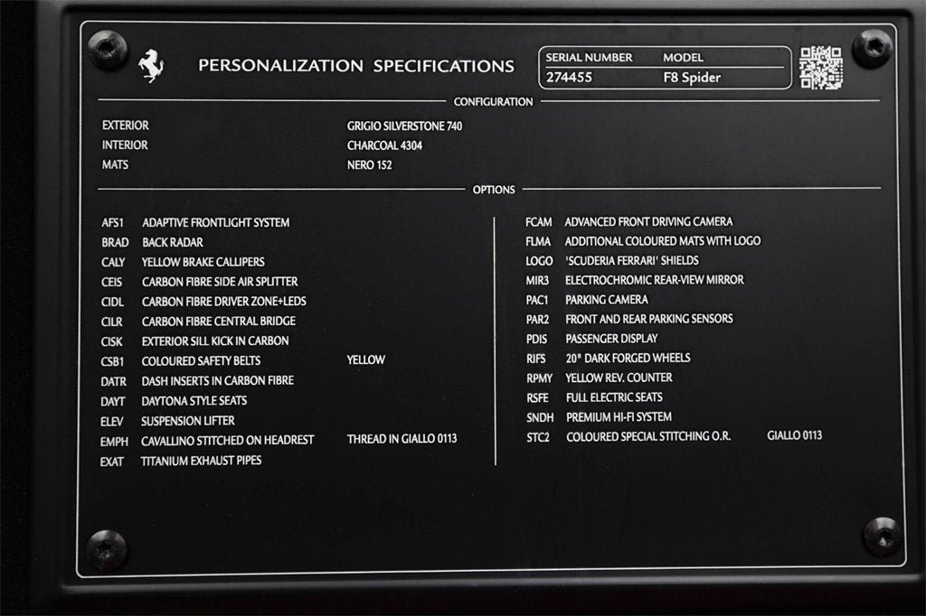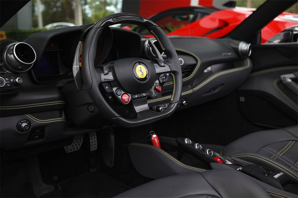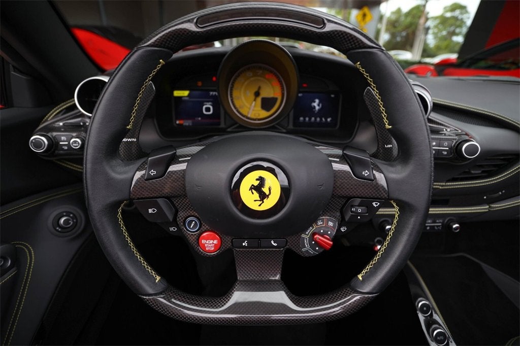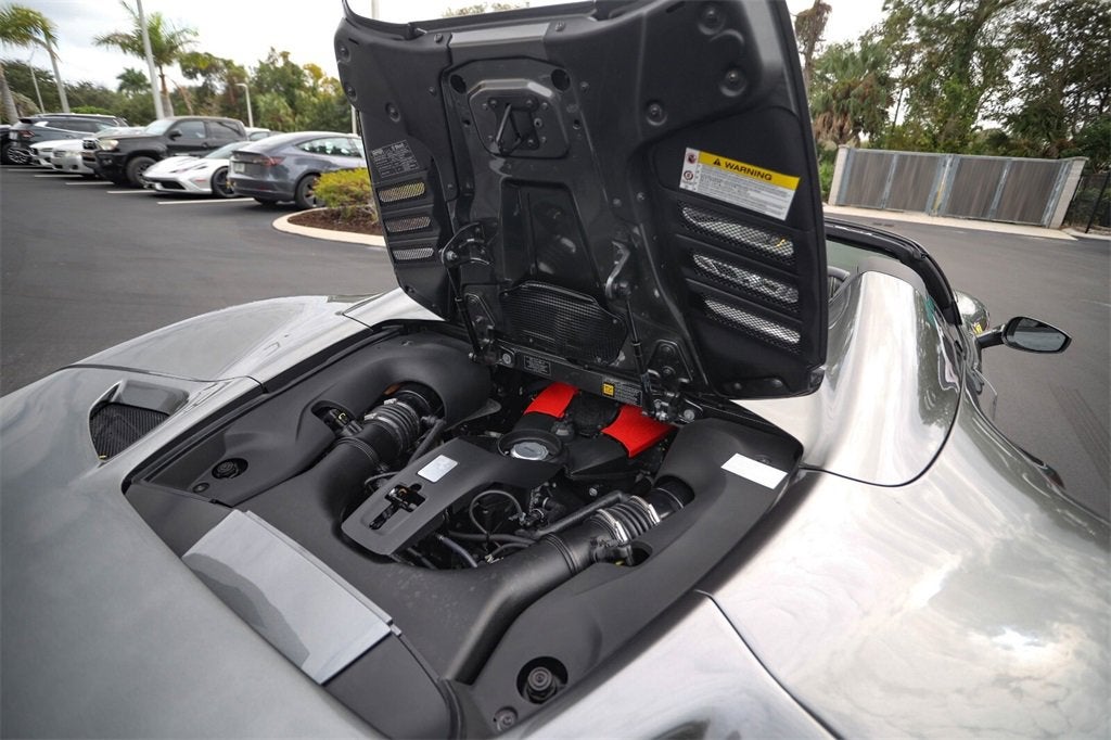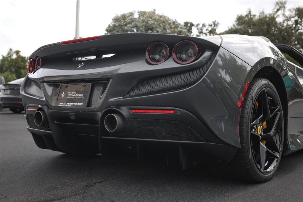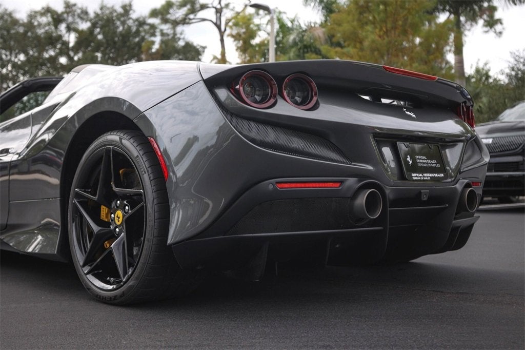 Ferrari of Naples is pleased to present this 2022 Ferrari F8 Spider, finished in elegant Grigio Silverstone over a sophisticated Charcoal leather interior. With just 4,742 miles, this open-top V8 Ferrari blends timeless design, exhilarating performance, and a highly desirable factory specification. Powered by Ferraris award-winning twin-turbocharged 3.9L V8 producing 710 horsepower, the F8 Spider delivers breathtaking acceleration and razor-sharp handling, while the retractable hardtop provides the versatility of coupe refinement and open-air excitement. Factory Options & Specification Exterior Grigio Silverstone exterior paint (EXTC) Giallo Modena brake callipers (CALY) Carbon fibre lateral air intake splitters (CEIS) Carbon fibre exterior sill plates (CISK) Titanium tailpipe tips (EXAT) Scuderia Ferrari fender shields (LOGO) 20 forged wheels in matte Grigio Corsa (RIFS) Passenger display (PDIS) Interior Charcoal leather interior (INTC) Carbon fibre driver zone with LED shift indicators (CIDL) Carbon fibre centre console (CILR) Carbon fibre dashboard accents (DATR) Daytona-style seats (DAYT) Full-electric seats (RSFE) Yellow seat belts (CSB1) Embroidered Cavallino on headrests in Yellow (EMPH) Yellow tachometer dial face (RPMY) Special contrast stitching in Yellow (STC2) Overmats with embroidered vehicle logo (FLMA) Black carpets (CRPT) Technology & Driver Assistance AFS adaptive front lighting system (AFS1) Blind Spot Detection with rear radar (BRAD) Front and rear suspension lift system (ELEV) Camera with Lane Departure Warning (FCAM) Electrochromic exterior rear-view mirrors (MIR3) Rear parking camera (PAC1) Front parking sensors (PAR2) Premium Hi-Fi sound system (SNDH) As the official Ferrari dealer of Southwest Florida, Ferrari of Naples offers an exclusive selection of Ferrari models, backed by unparalleled service and expertise. Our commitment to excellence ensures that each vehicle meets the highest standards of quality and performance. To schedule a private viewing or request a personalized video tour of this 2022 Ferrari F8 Spider, please contact us: Phone: (239) 256-1400 Email: smora@newcountry.
