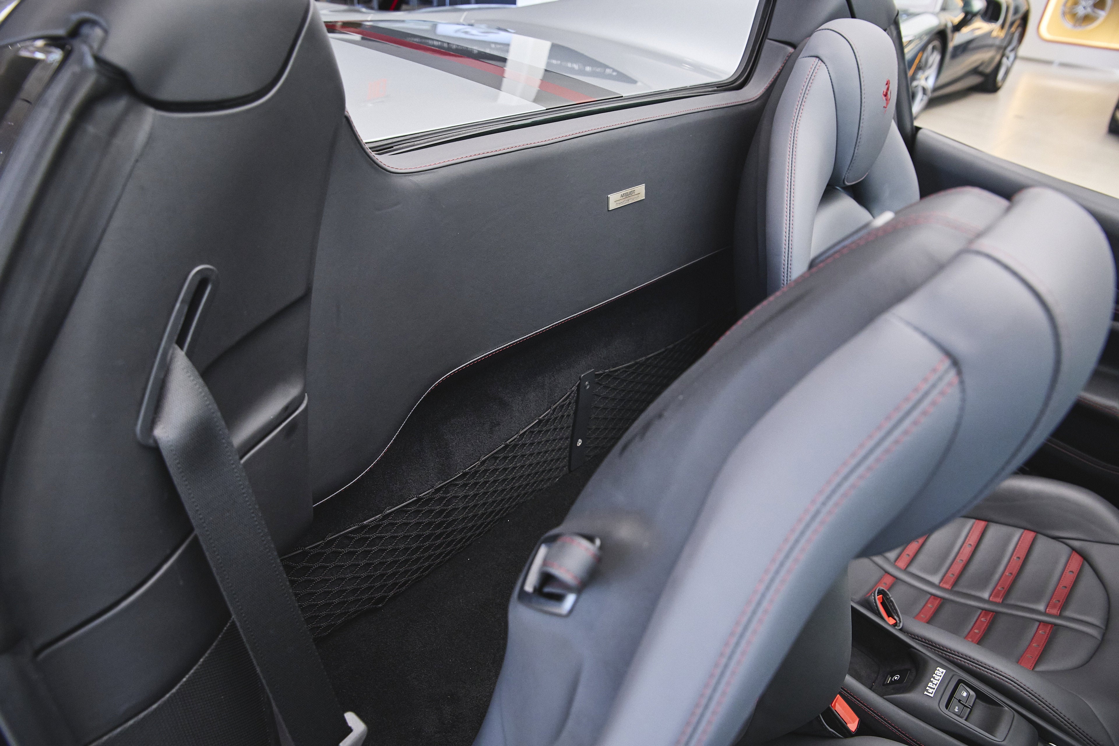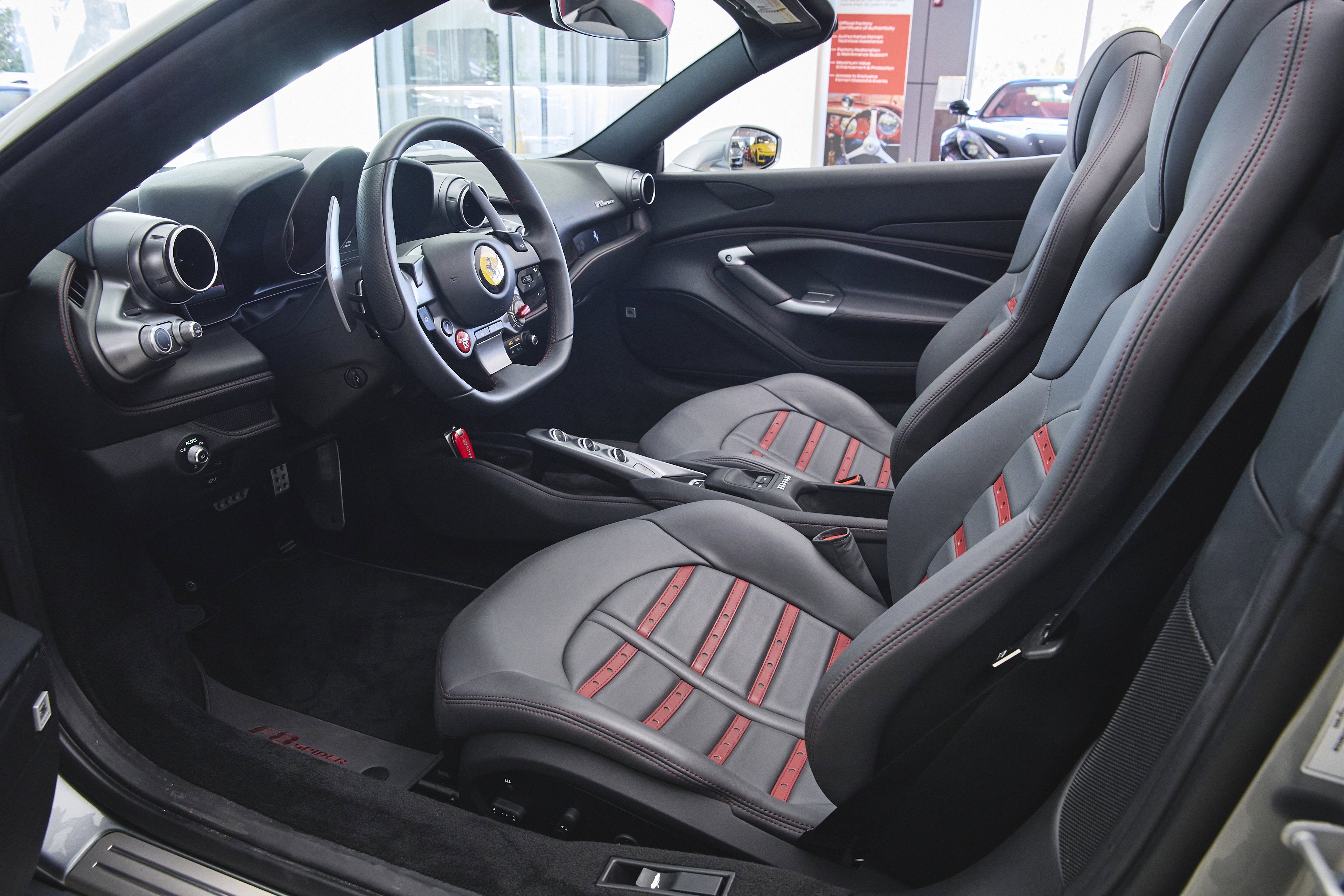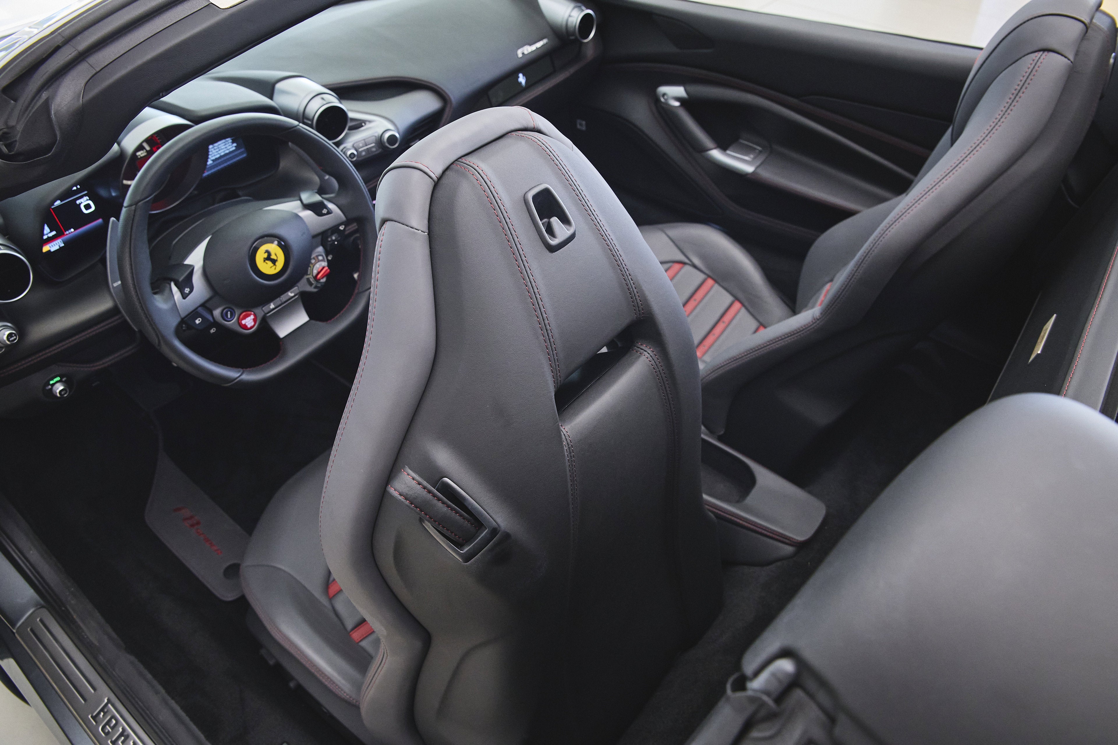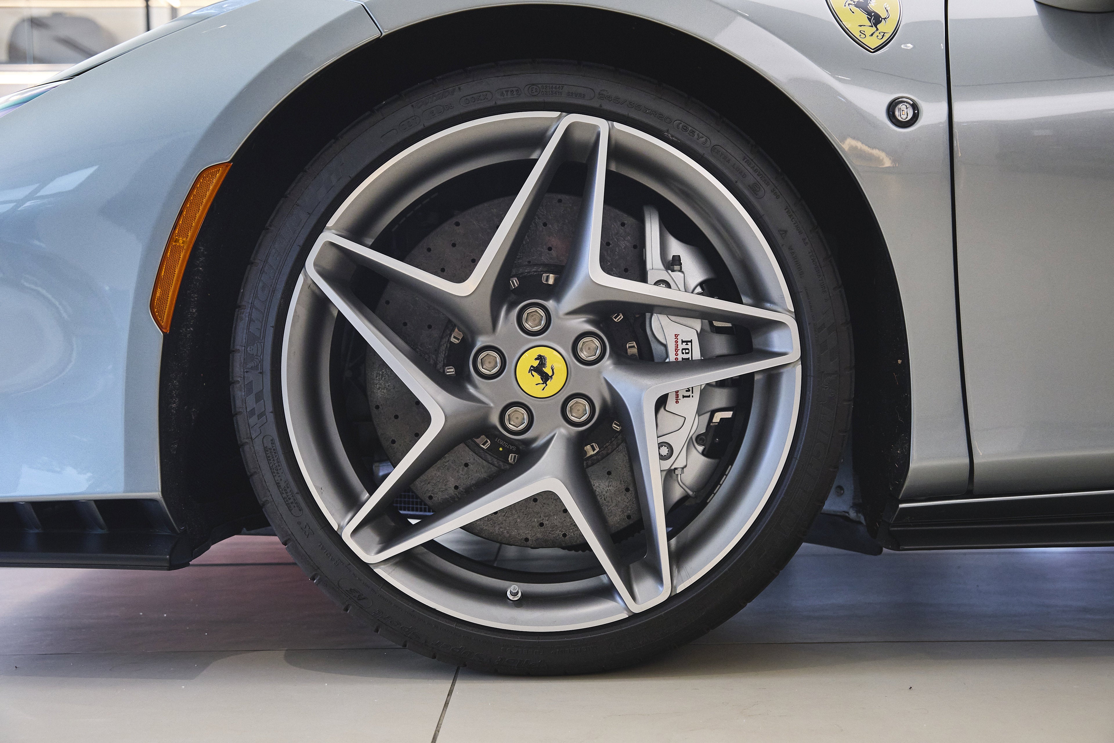 •   The extensive option list includes: Forged Gray Corsa Diamond Wheels, Aluminum Brake Calipers, Titanium Wheel Bolts, Rear Parking Camera, Front Parking Sensors, Scuderia Ferrari Shields, Titanium Exhaust Pipes, Electrochromic Exterior Mirrors, Back Radar, Advanced Front Driving Camera, Bordeaux Cavallino Embroidered upon the Headrests, Bordeaux Special Seat Stitching, Full-Electric Daytona Style Seats with Bordeaux Leather Stripes, Colored Mats with Ferrari Logo, Upper and Lower Dash in Nero (Black) Leather, Leather Central Tunnel in Nero, Nero Leather Door Panels, Dedication Plate in Silver, Red Rev (Tachometer) Dial, Apple CarPlay, Black Upper Insert in Matte, Passenger Display and Ferrari Premium Hi-Fi Sound System!