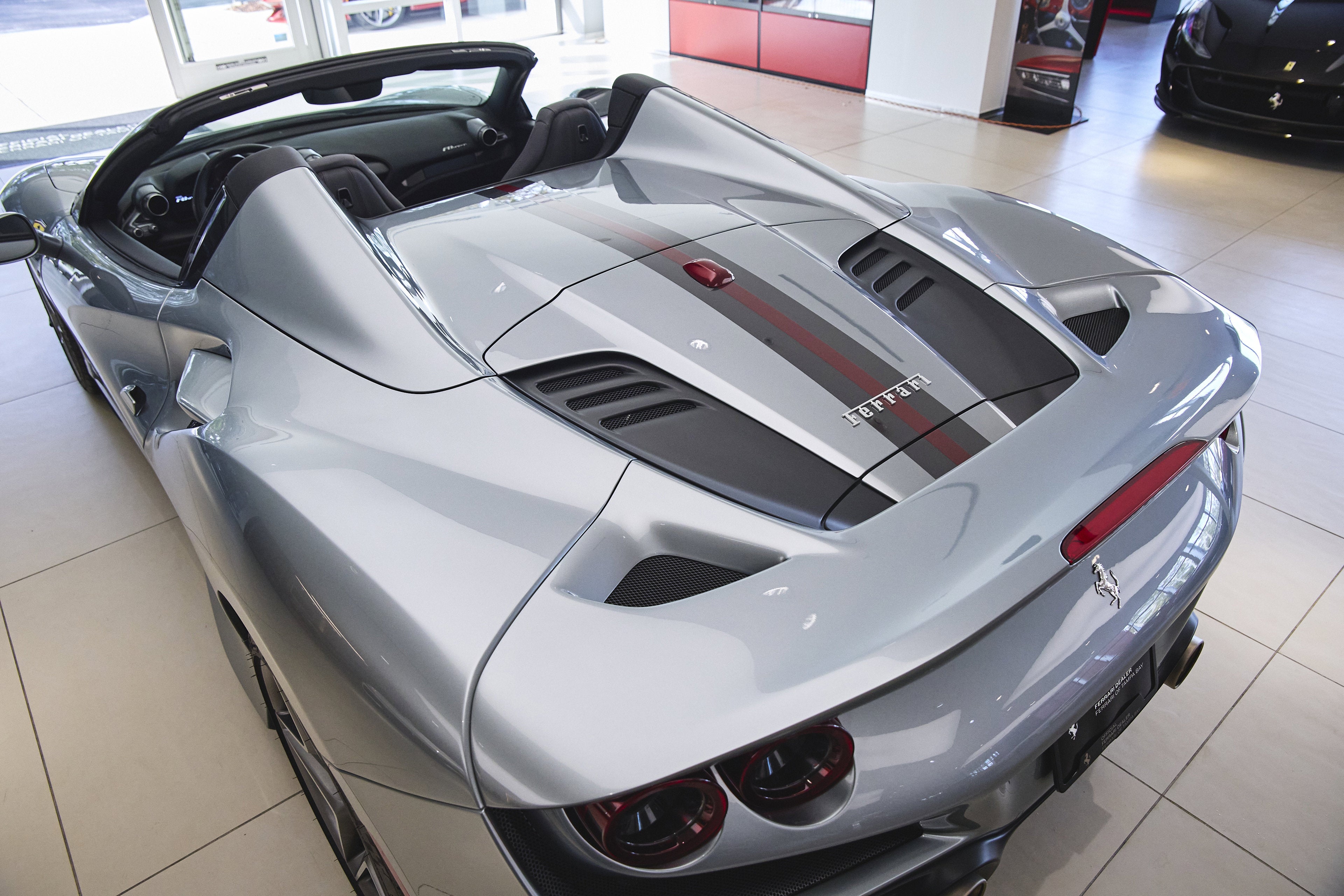 Atelier configured 2023 Ferrari F8 Spider now available at Ferrari of Tampa Bay!  Finished in 2-Layer Extracampionario Glossy Grigio Coburn (Gray Metallic) with Charcoal Interior.  Only 2,293 pampered miles on the odometer of this special F8.