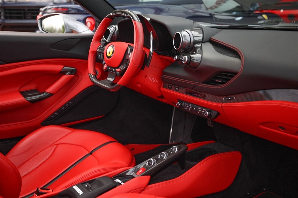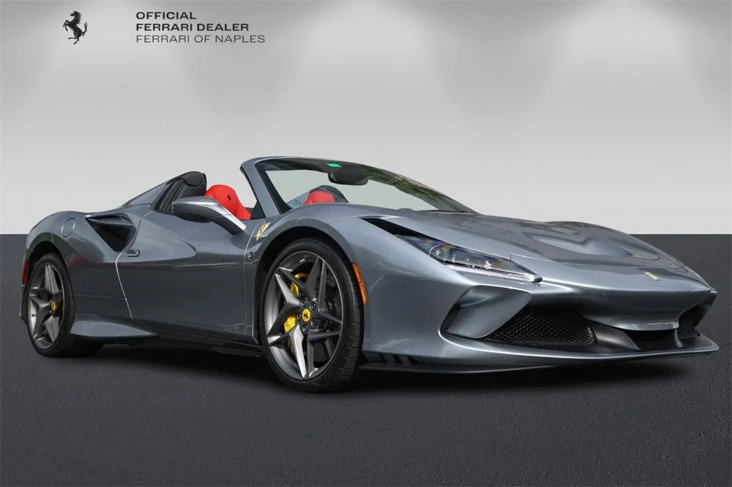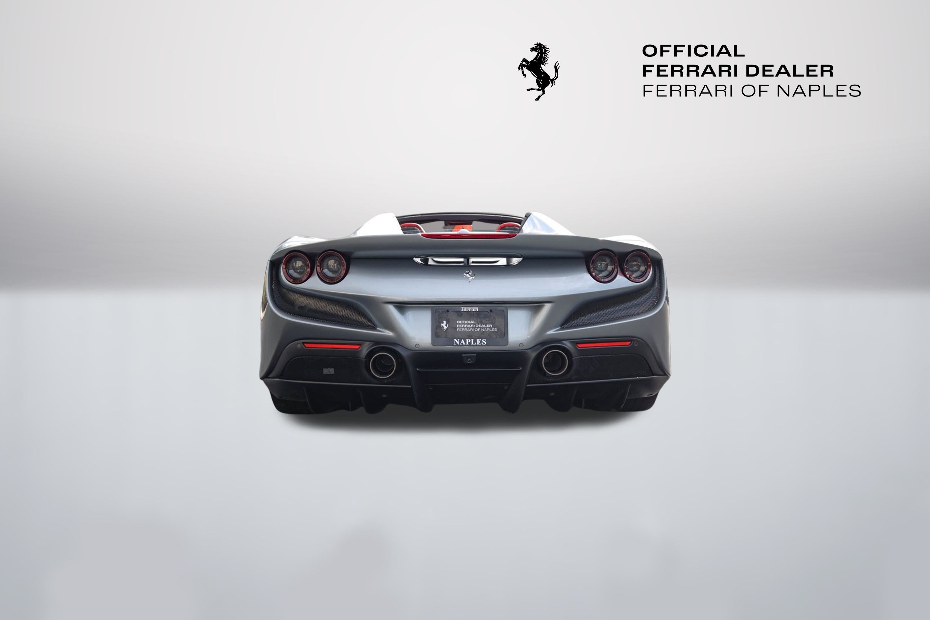 Ferrari of Naples is pleased to offer this exceptionally well-specified 2022 Ferrari F8 Spider, finished in the elegant and motorsport-inspired Grigio Titanio Metallic over a striking Rosso Ferrari leather interior. This example is one owner from new, was originally sold by us, and is offered today as a Ferrari Approved vehicle with only 4,773 miles. The F8 Spider represents the ultimate evolution of Ferraris mid-engine V8 Spider lineage, pairing the award-winning 710-horsepower twin-turbo V8 with open-air exhilaration, advanced aerodynamics, and refined usability. Factory Options & Specification Exterior Grigio Titanio Metallic exterior paint (EXTC) Giallo Modena brake callipers (CALY) Titanium tailpipe tips (EXAT) Scuderia Ferrari fender shields (LOGO) 20" forged wheels in matte Grigio Corsa (RIFS) Titanium wheel studs (TIWN) Interior Rosso Ferrari leather interior (INTC) Carbon fibre rear pillars (CERF) Carbon fibre inner door handles (CIDH) Carbon fibre driver zone with LED steering wheel (CIDL) Carbon fibre centre console (CILR) Carbon fibre dashboard accents (DATR) Yellow tachometer dial face (RPMY) Full-electric Style seats (RSFE / STYL) Rosso seat belts (CSB1) Leather steering wheel in Rosso Ferrari (STW1) Embroidered Cavallino headrests Overmats with embroidered vehicle logo Technology & Driver Assistance Adaptive Frontlight System (AFS) Front and rear suspension lift system Blind Spot Detection with rear radar Lane Departure Warning camera Rear parking camera Electrochromic exterior mirrors As the official Ferrari dealer of Southwest Florida, Ferrari of Naples offers an exclusive selection of Ferrari models, backed by unparalleled service and expertise. Our commitment to excellence ensures that each vehicle meets the highest standards of quality and performance. To schedule a private viewing or request a personalized video tour of this 2022 Ferrari F8 Spider, please contact us: Phone: (239) 256-1400 Email: smora@newcountry.