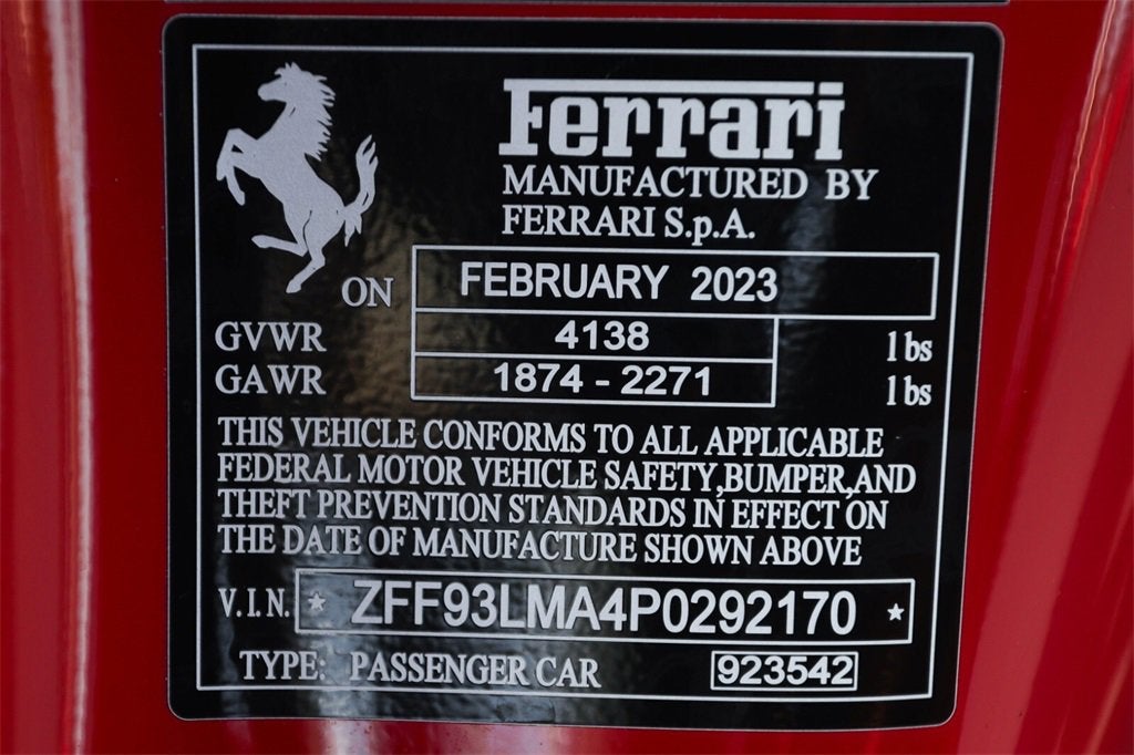 Ferrari of Naples is proud to present this exquisite 2023 Ferrari F8 Spider, finished in the timeless Rosso Corsa exterior over a rich Cuoio leather interior. Showing only 3,230 miles and certified Ferrari Approved, this example combines open-air exhilaration with the precision engineering that defines Ferraris mid-engine V8 lineage. Representing the pinnacle of the 3.9-liter twin-turbocharged V8 platform awarded International Engine of the Year for four consecutive years the F8 Spider embodies Ferraris philosophy of performance, beauty, and driving emotion. Factory Options & Features Exterior: Giallo Modena Brake Calipers (CALY) Matte Black Engine Compartment Lid Collar (COLL) Scuderia Ferrari Shields on Fenders (LOGO) 20" Gloss Brilliant Silver Wheels (RICS) Interior: Cuoio Leather Interior Carbon Fibre Steering Wheel with LEDs (LEDS) Passenger Display (PDIS) Yellow Tachometer Dial Face (RPMY) Full-Electric Seats (RSFE) Rosso Embroidered Cavallino on Headrests (EMPH) Special Rosso Stitching Throughout (STC2) Black Carpets (Nero 152) (CRPT) Electronics & Equipment: Apple CarPlay (ACPL) AFS Adaptive Front Lighting System (AFS1) Blind Spot Detection and Rear Radar (BRAD) Front and Rear Suspension Lift (ELEV) Lane Departure Warning Camera (FCAM) Electrochromic Exterior Mirrors (MIR3) Rear Parking Camera (PAC1) Front Parking Sensors (PAR2) Premium Hi-Fi Audio System (SNDH) This Ferrari Approved 2023 Ferrari F8 Spider has passed Ferraris rigorous 101-point inspection, ensuring it meets the highest standards of performance and quality. With just 3,230 miles, it remains in outstanding, original condition - both mechanically and cosmetically. Included are all factory keys, manuals, and Ferrari Certified documentation. As the official Ferrari dealer of Southwest Florida, Ferrari of Naples offers an exclusive selection of Ferrari models, backed by unparalleled service and expertise. Our commitment to excellence ensures that each vehicle meets the highest standards of quality and performance. To schedule a private viewing or request a personalized video tour of this 2023 Ferrari F8 Spider, please contact us: Phone: (239) 256-1400 Email: smora@newcountry.