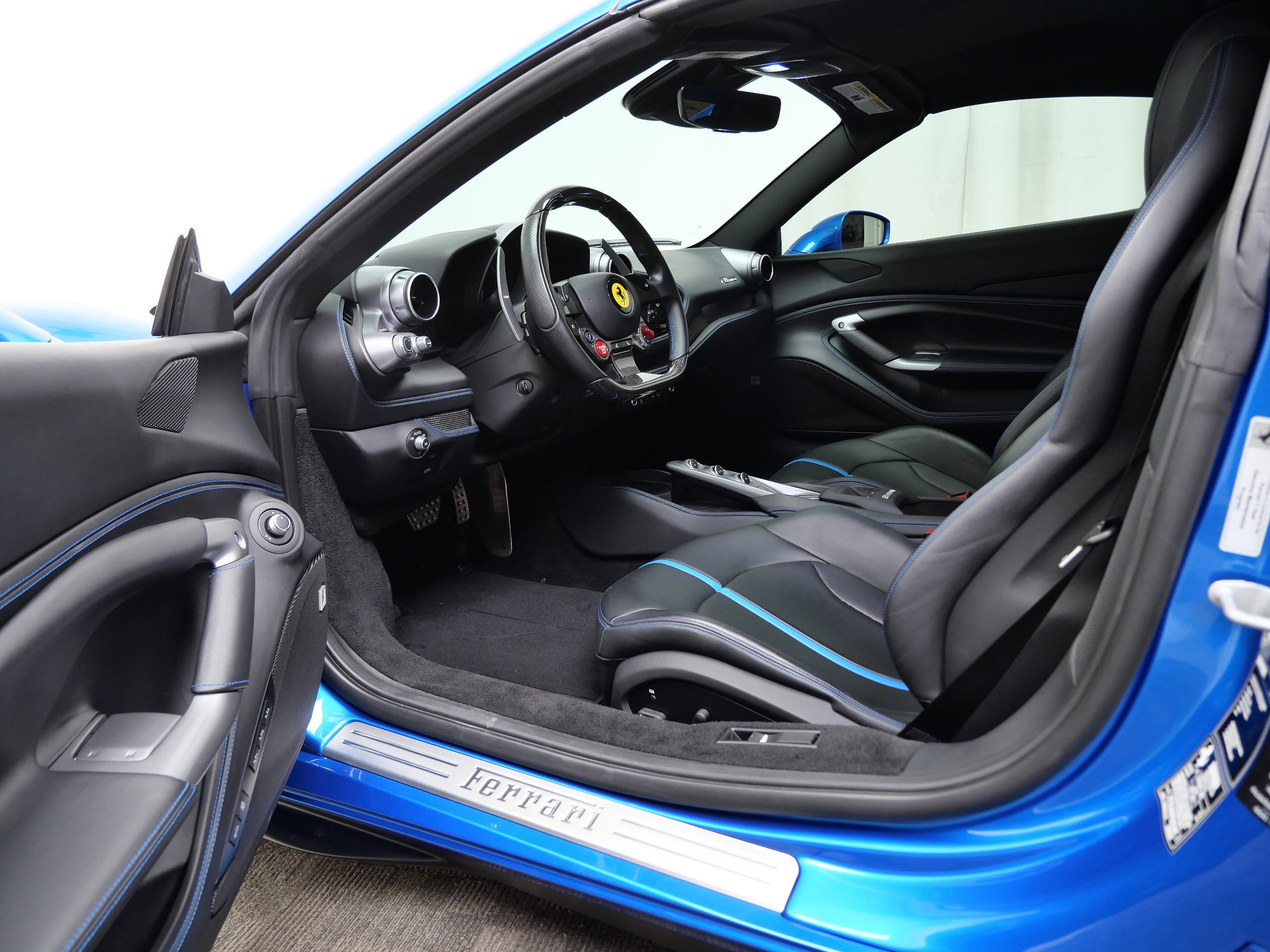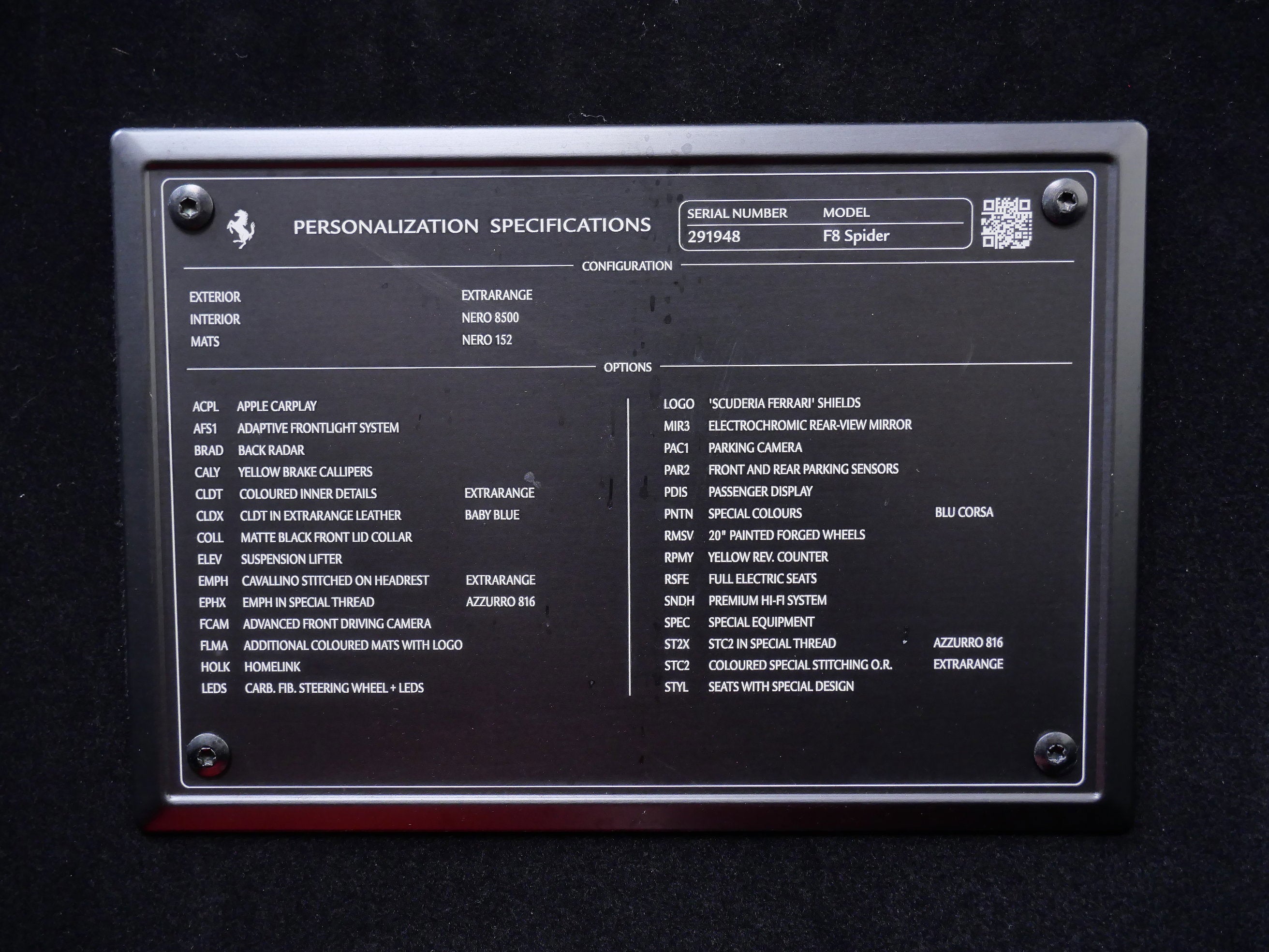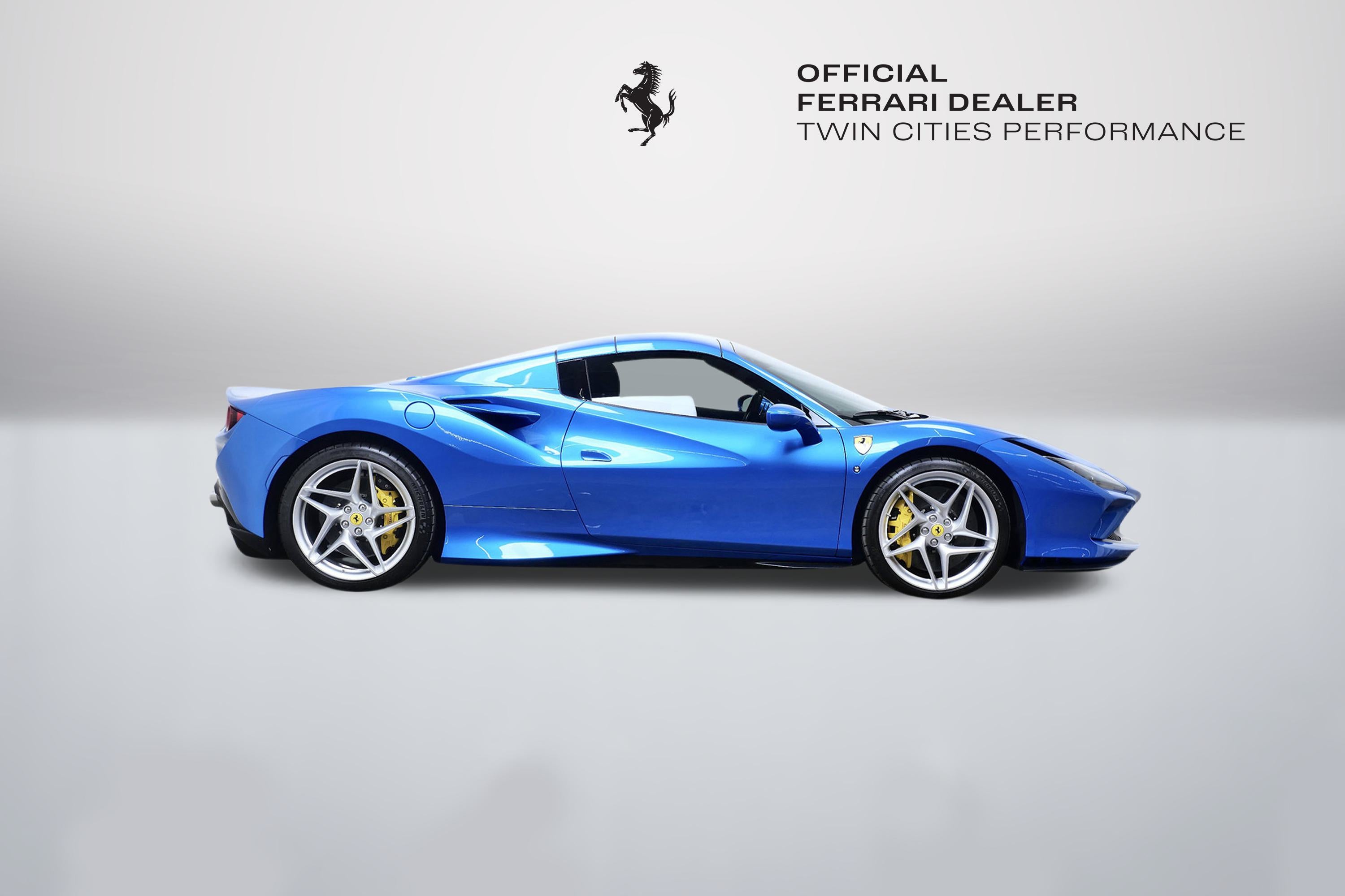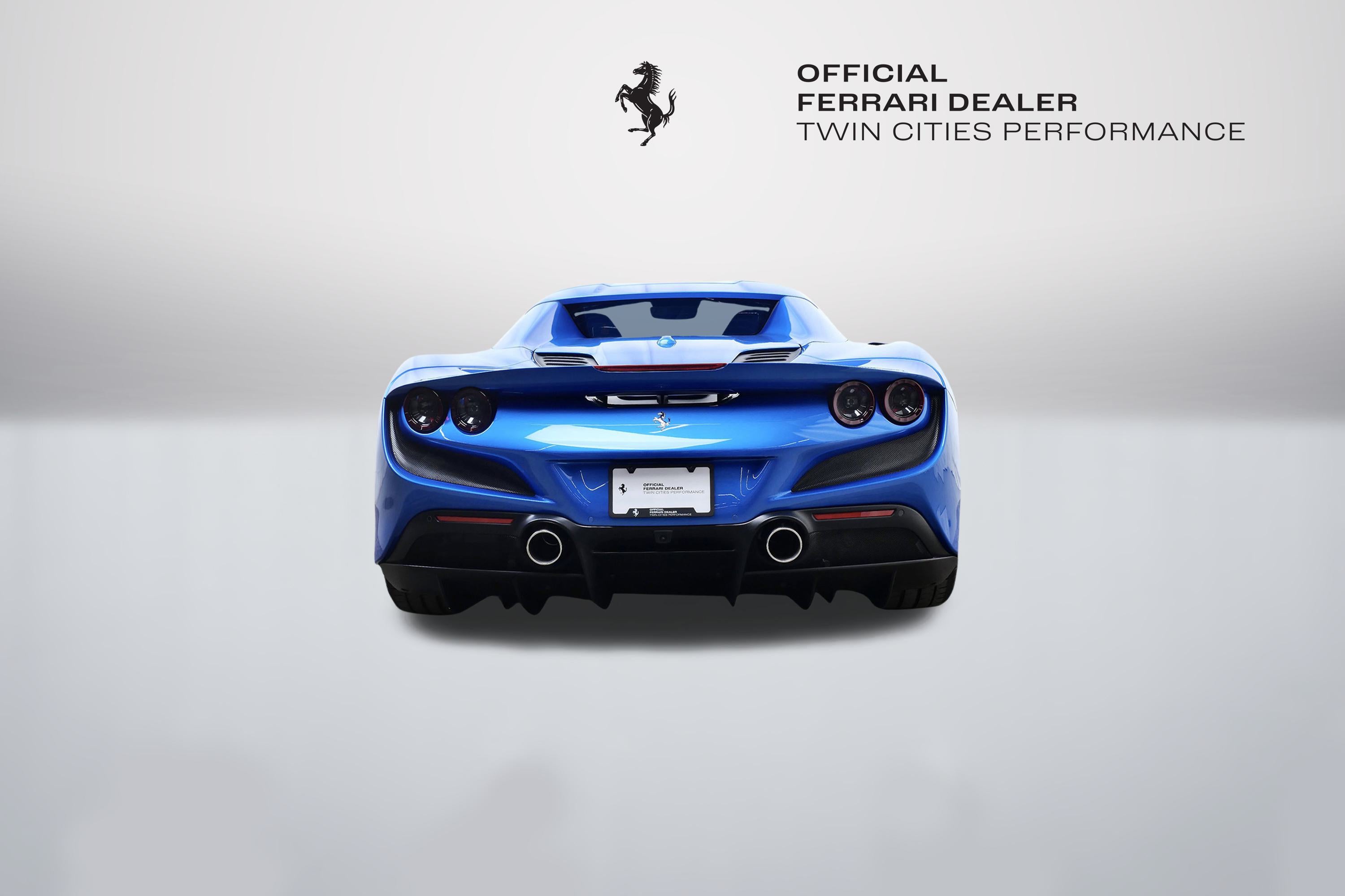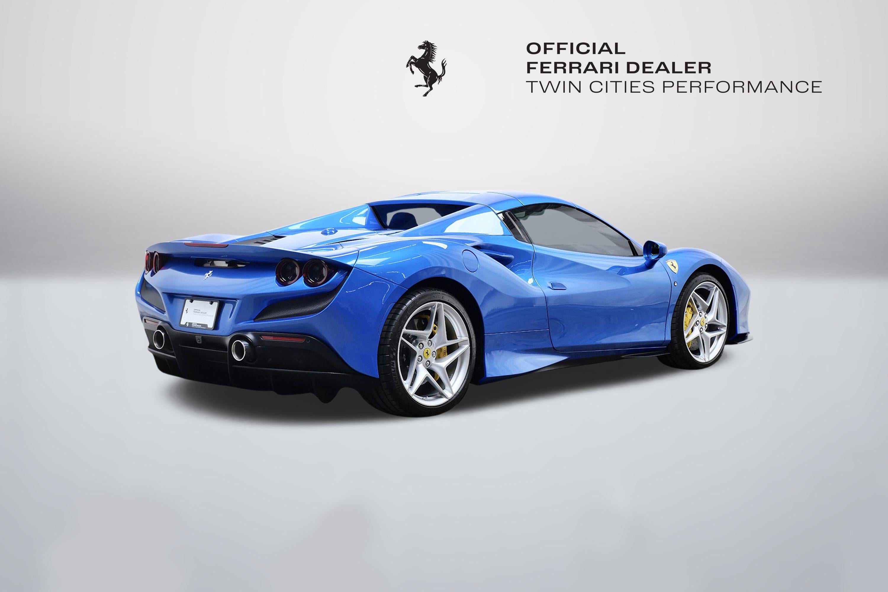 Ferrari Approved Certified Pre-Owned CPO Options: Blu Corso over Nero, Giallo Modena Brake Calipers, Carbon LED Steering Wheel, Scuderia Ferrari Shields, Passenger Display, Forged Wheels Brilliant Silver, Full Electric Seats, Leather Insert in Baby Blue, Mats with Logo, Embroidered Horse in Azzurro, Yellow Tachometer, Contrast Stitch in Azzurro, Style Seats, Apple CarPlay, Adaptive Frontlight System, Blind Spot Monitor System, Front Suspension Lift, Lane Departure Warning, Homelink Garage Door Opener, Electrochromic Mirrors, Rear Parking Camera, Front Parking Sensors, Premium Hifi Audio System. Blu Corsa 2023 Ferrari F8 Spider RWD 7-Speed Automatic 3.9L V8 Ferrari Approved Details: