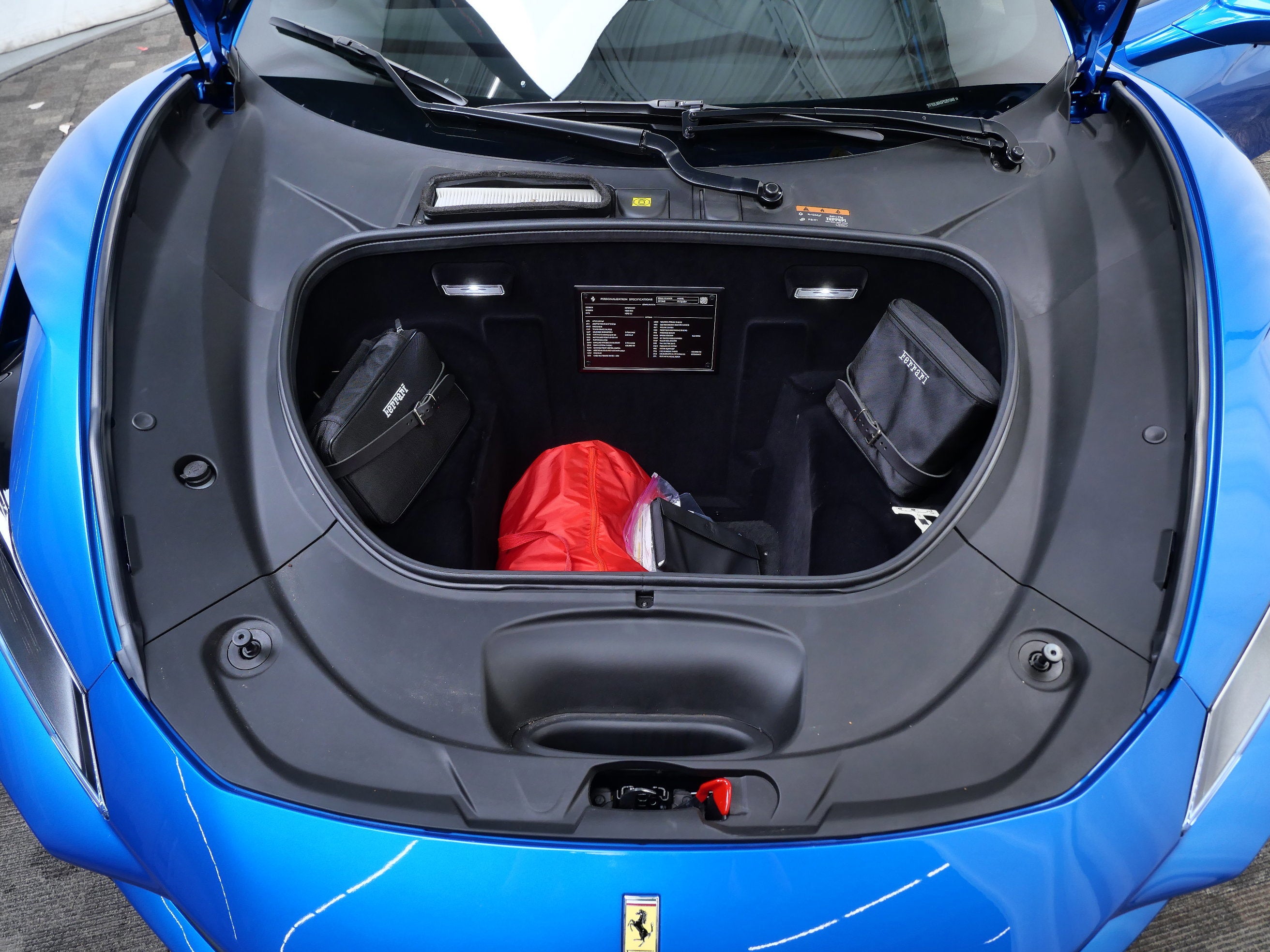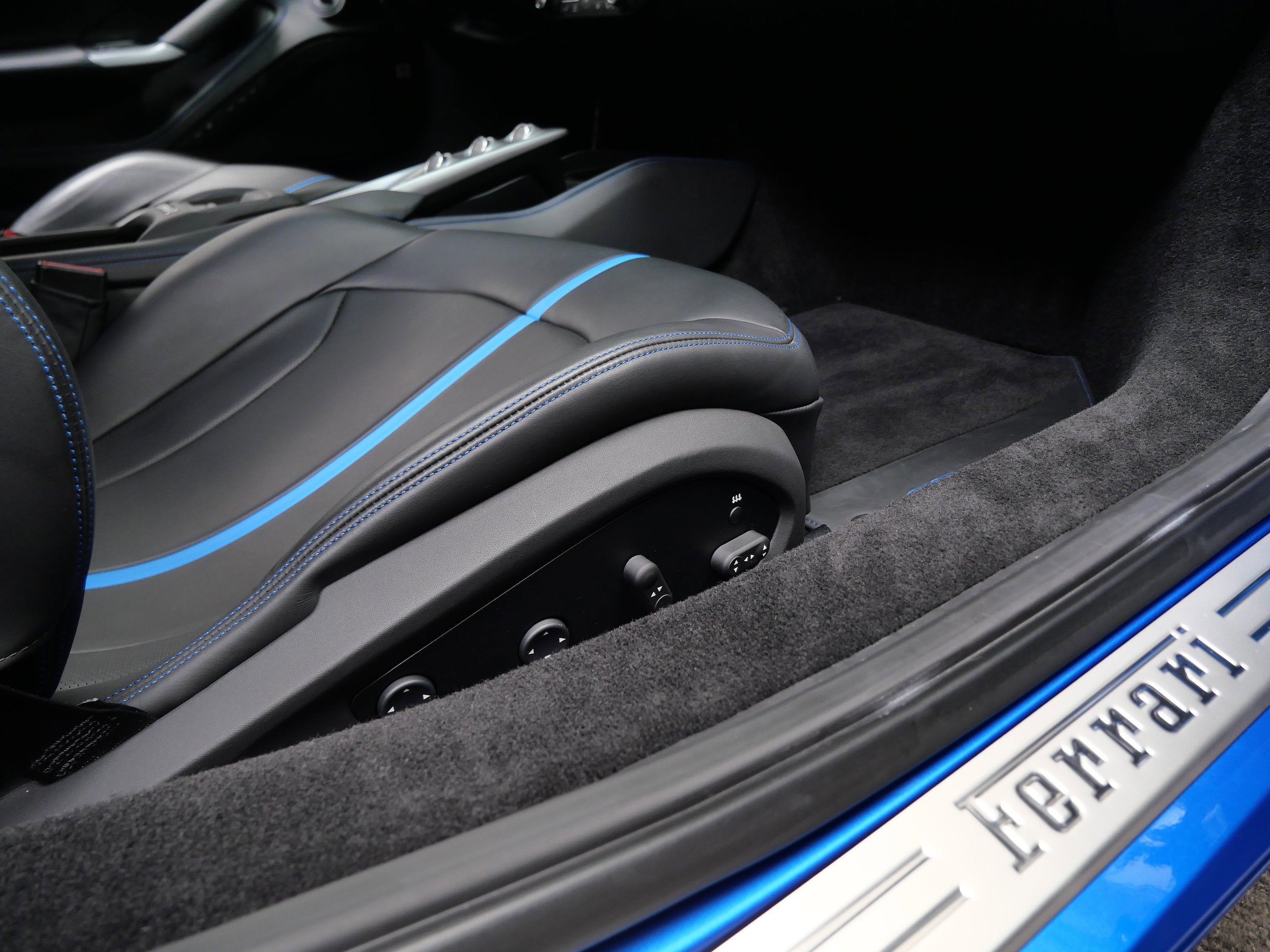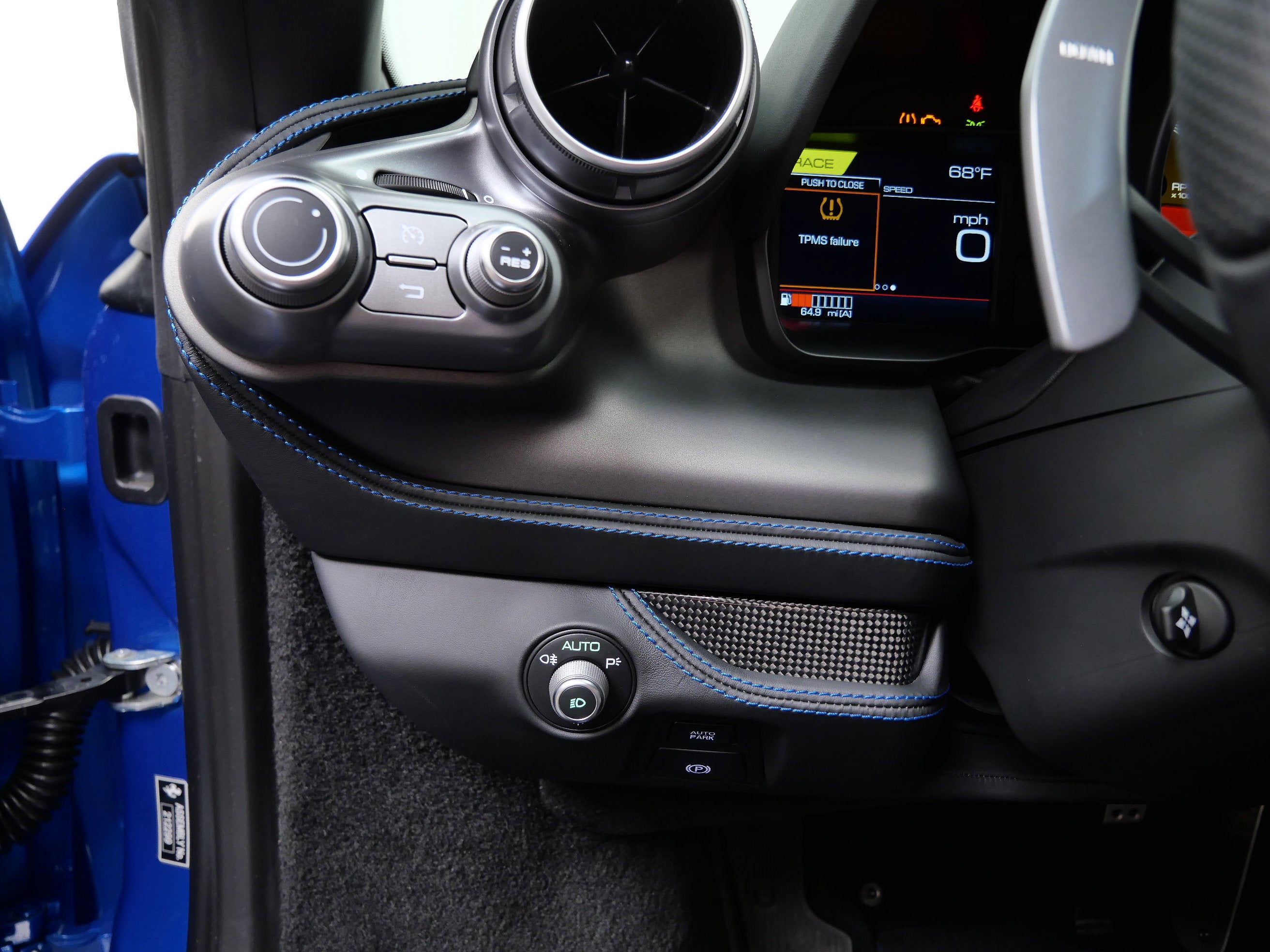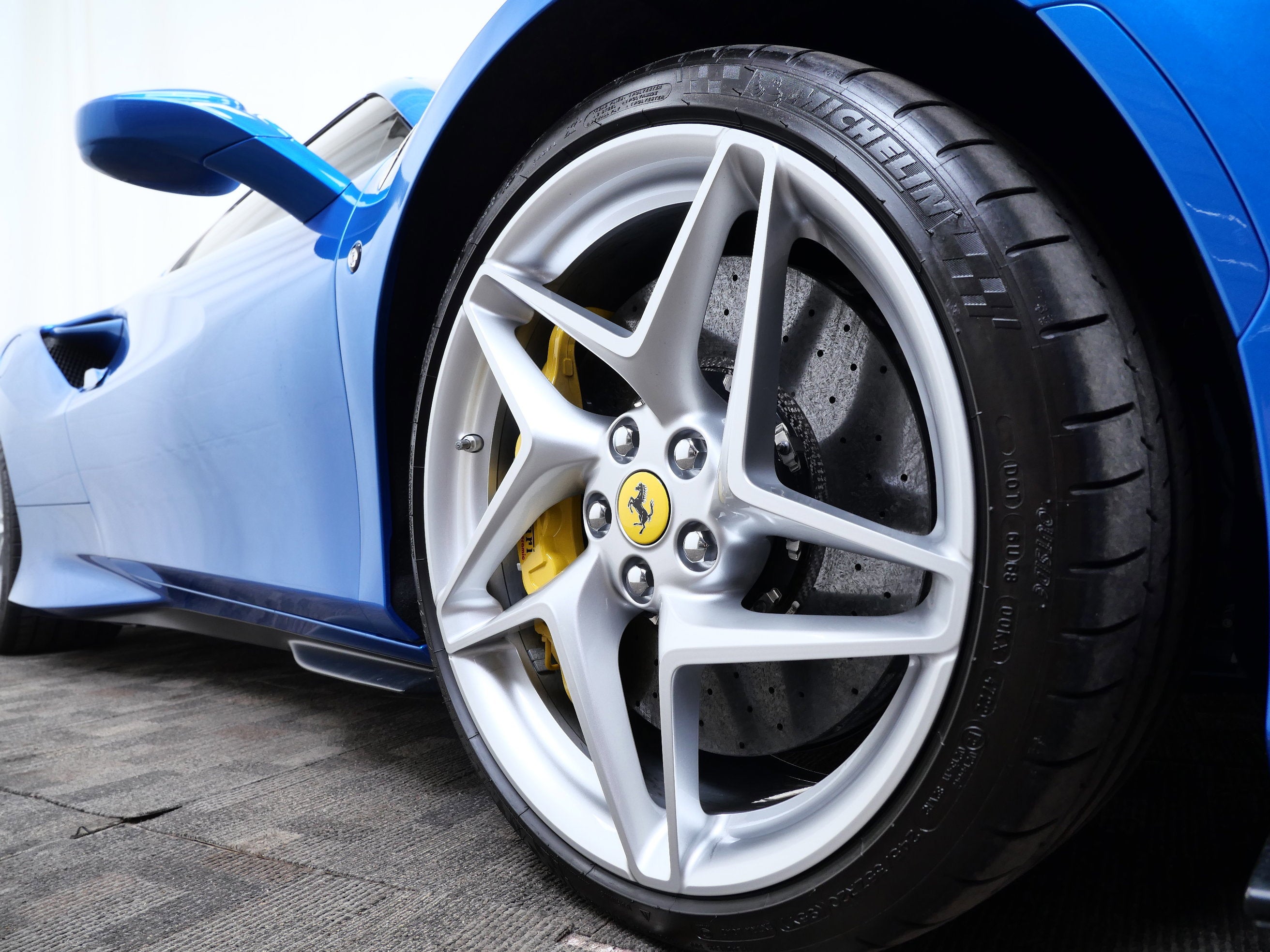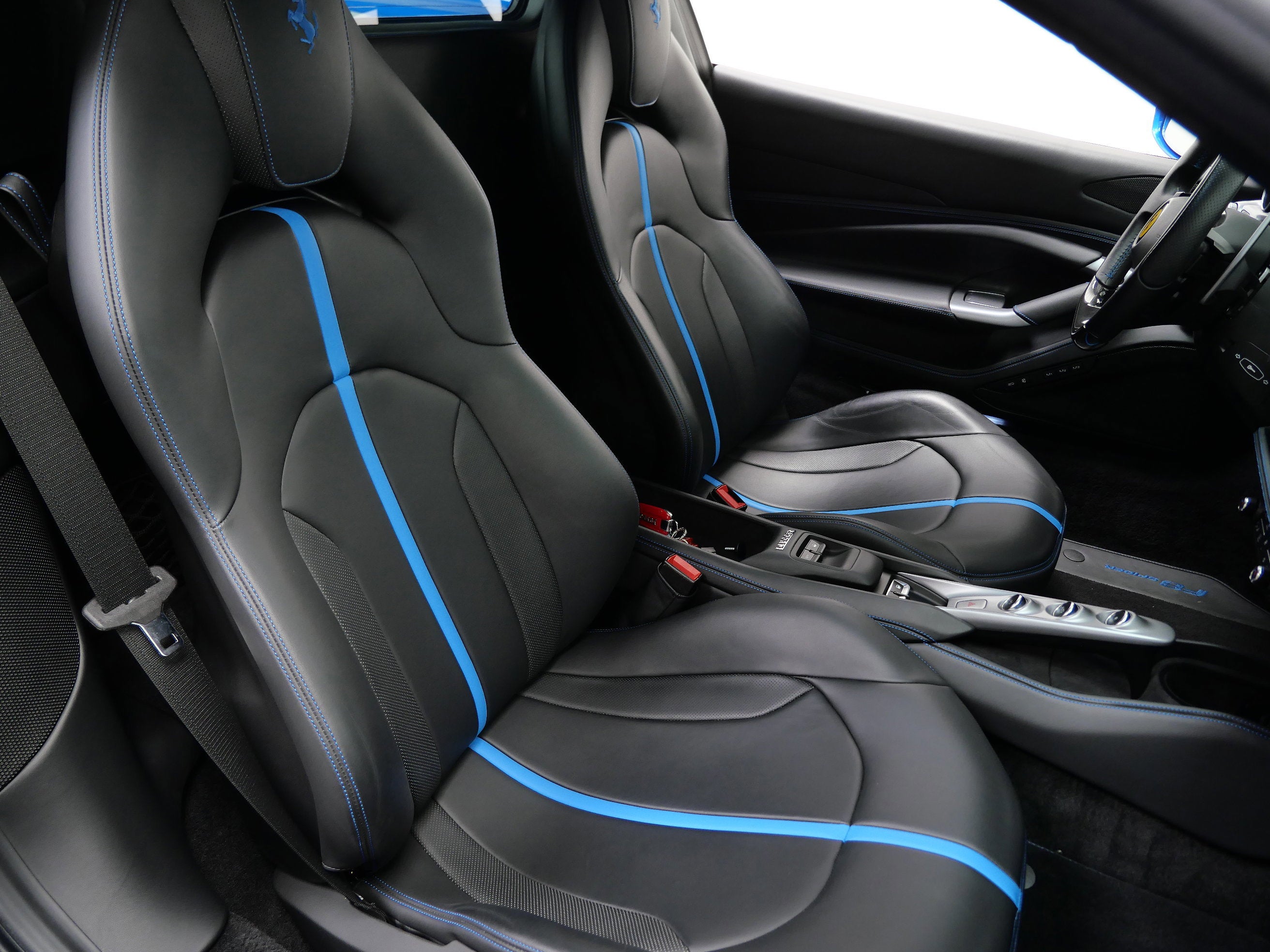 Ferrari Approved Certified Pre-Owned CPO Options: Blu Corso over Nero, Giallo Modena Brake Calipers, Carbon LED Steering Wheel, Scuderia Ferrari Shields, Passenger Display, Forged Wheels Brilliant Silver, Full Electric Seats, Leather Insert in Baby Blue, Mats with Logo, Embroidered Horse in Azzurro, Yellow Tachometer, Contrast Stitch in Azzurro, Style Seats, Apple CarPlay, Adaptive Frontlight System, Blind Spot Monitor System, Front Suspension Lift, Lane Departure Warning, Homelink Garage Door Opener, Electrochromic Mirrors, Rear Parking Camera, Front Parking Sensors, Premium Hifi Audio System. Blu Corsa 2023 Ferrari F8 Spider RWD 7-Speed Automatic 3.9L V8 Ferrari Approved Details: