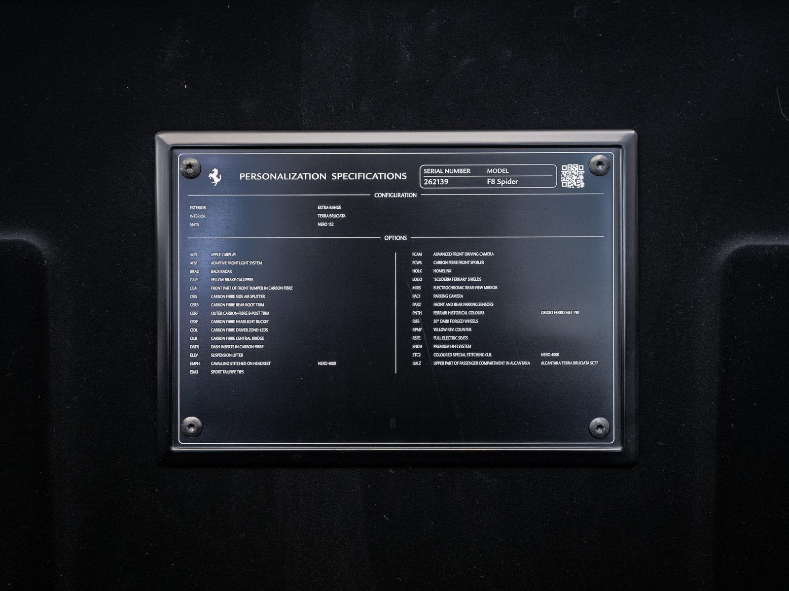 *Ferrari Silicon Valley* is proud to present this beautifully specified Pre-Owned *2021 Ferrari F8 Spider*. Finished in sophisticated *Grigio Ferro* over a rich *Terra Bruciata leather interior*, and showing just *1,161 miles*, this mid engine convertible combines breathtaking performance with unmistakable Ferrari craftsmanship and open air exhilaration. The F8 Spiders sculpted design is both aggressive and elegant, highlighted by performance enhancing elements such as a *carbon fiber front spoiler* and *carbon fiber lateral air intake splitters*, which optimize airflow and emphasize the cars racing pedigree. With its retractable hardtop, the F8 Spider seamlessly transitions between coupe-like refinement and thrilling open-top driving. Inside, the cockpit is tailored in luxurious *Terra Bruciata leather*, creating a warm contrast against the Grigio Ferro exterior. The *carbon fiber driver zone with LEDs* places Formula 1 inspired shift lights and controls directly within the drivers reach, while *full-electric seats* provide exceptional comfort and adjustability. A *premium Hi-Fi system* ensures immersive sound quality, and the *front and rear suspension lift* enhances practicality for navigating everyday road conditions. Engine and Performance: Powering the F8 Spider is a 3.9 liter twin turbocharged V8 engine producing an exhilarating *710 horsepower* and *568 lb ft of torque*. Paired with a lightning fast 7 speed dual clutch transmission, this Ferrari accelerates from 0 to 60 mph in just 2.9 seconds. With razor sharp steering, advanced aerodynamics, and explosive acceleration, the F8 Spider delivers one of the most engaging driving experiences in Ferraris V8 lineage. *Key Features:* *Carbon Fiber Front Spoiler: * Enhances aerodynamic performance and aggressive front-end styling. *Carbon Fiber Lateral Air Intake Splitters: * Improve airflow and reinforce the cars motorsport-inspired design. *Carbon Fiber Driver Zone with LEDs: * F1-inspired steering wheel with integrated shift lights and driver controls. *Full-Electric Seats: * Provide exceptional comfort and adjustability for both driver and passenger. *Front and Rear Suspension Lift: * Adds practicality by increasing ground clearance when needed. *Premium Hi-Fi System: * Delivers rich, high-quality audio throughout the cabin. This 2021 Ferrari F8 Spider is far more than just a car; it is the embodiment of the brand's commitment to peak automotive engineering and opulent design. Available at Ferrari Silicon Valley, this vehicle offers an invitation to experience the thrill of a luxury sports car that pushes the boundaries of excitement and elegance. Ferrari Silicon Valley is a member of the indiGO Auto Group. Our dealership features a beautiful Ferrari showroom, fully staffed factory certified service center, parts department, finance department, detail department, and Ferrari accessories boutique. Allow us to also help arrange transportation of your new car directly to your home anywhere in the world. Trade in proposals are always welcome. If you like this vehicle and have questions, simply call, email, or drop by our location at 2750 El Camino Real, Redwood City, CA 94061.