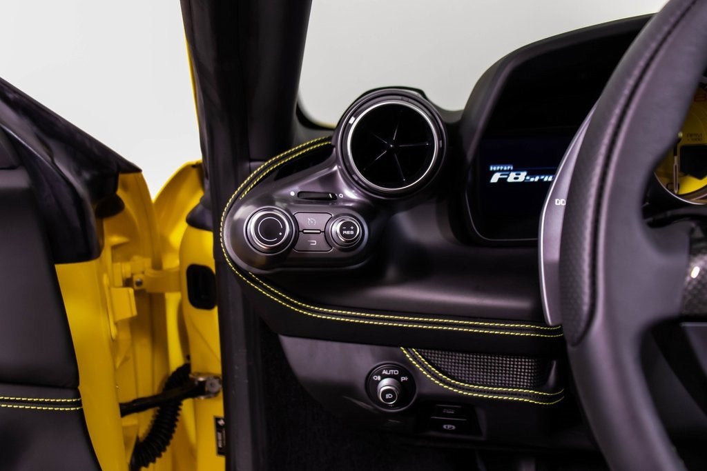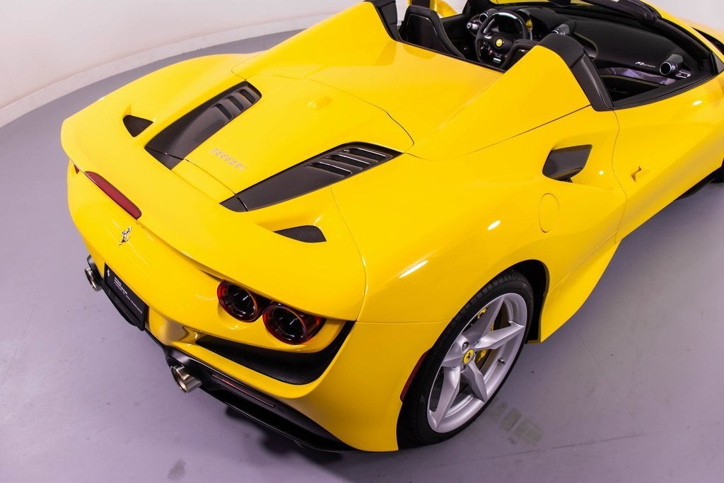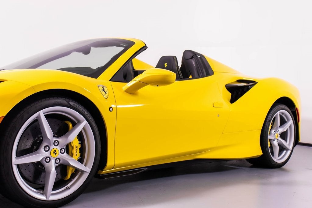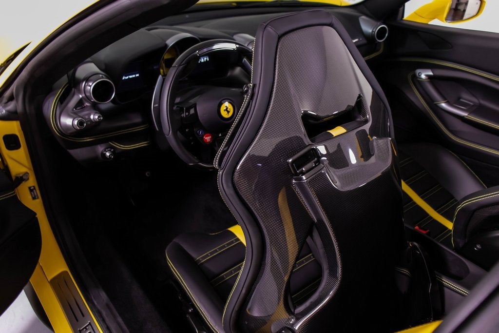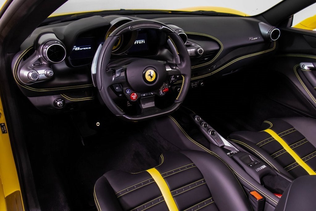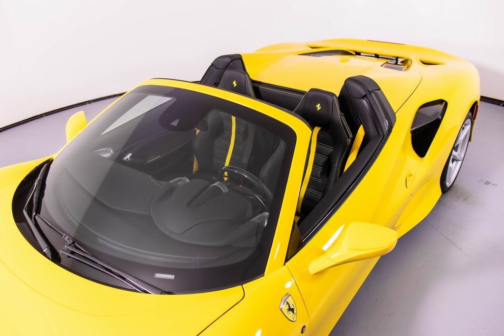 284563 Exterior: Giallo Modena Interior: Nero Mats: Nero 2022 Ferrari F8 Spider Options: Apple CarPlay Back Radar Yellow Brake Calipers Carbon Fiber Side Air Splitter Carbon Fiber Rear Boot Trim Colored Inner Details CLDT in Leather Giallo Colored Safety Belts in Yellow Cavallino Stitched on Headrest in Giallo Advanced Front Driving Camera Home Link Carb. Fib. Steering Wheel + LEDS 'Scuderia Ferrari' Shields Electrochromic Rear-View Mirror Parking Camera Front and Rear Parking Sensors Yellow Rev. Counter Daytona Racing Seats Racing Seat Lifter Special Equipment Colored Special Stitching O.R. in Giallo This 2022 Ferrari F8 Spider is a striking open-top supercar finished in iconic Giallo Modena, perfectly complemented by a Nero interior and matching mats. Designed to deliver exhilarating performance with unmistakable Ferrari style, it features yellow brake calipers, carbon fiber side air splitters, and a carbon fiber rear boot trim that emphasize its aggressive yet elegant design. Inside, the cabin showcases Daytona racing seats with racing seat lifter, Giallo leather accents, yellow safety belts, and Cavallino stitching on the headrests, all highlighted by a yellow rev counter for a true motorsport feel. Equipped with Apple CarPlay, a carbon fiber steering wheel with LEDs, advanced front driving camera, front and rear parking sensors, and a premium suite of comfort and technology features, this F8 Spider offers an exceptional blend of luxury, innovation, and thrilling Ferrari performance with the roof down.