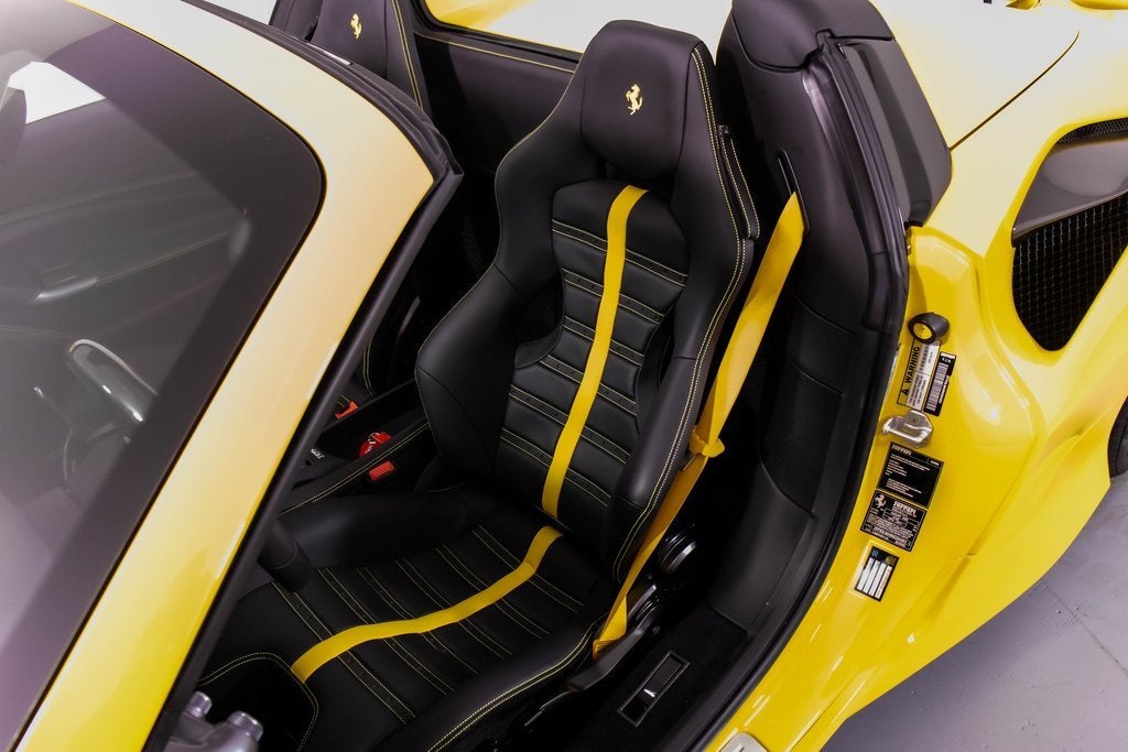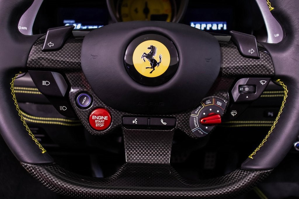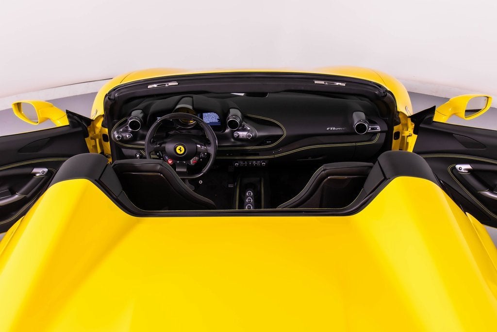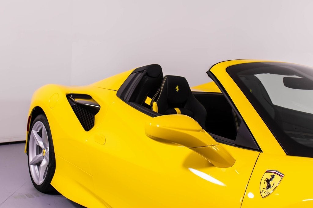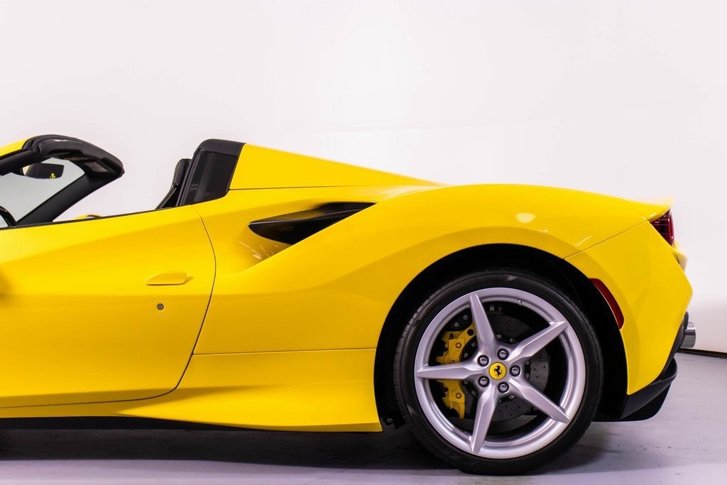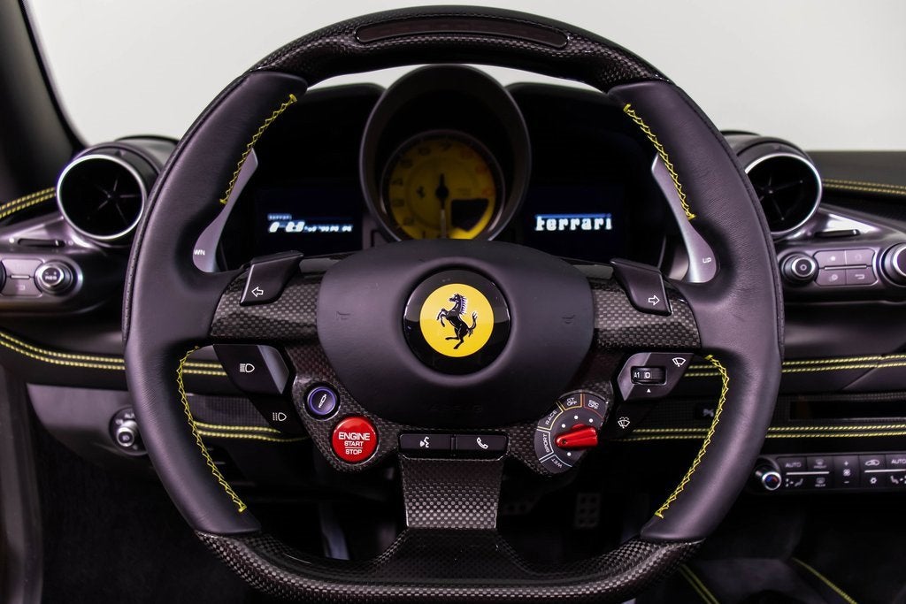 284563 Exterior: Giallo Modena Interior: Nero Mats: Nero 2022 Ferrari F8 Spider Options: Apple CarPlay Back Radar Yellow Brake Calipers Carbon Fiber Side Air Splitter Carbon Fiber Rear Boot Trim Colored Inner Details CLDT in Leather Giallo Colored Safety Belts in Yellow Cavallino Stitched on Headrest in Giallo Advanced Front Driving Camera Home Link Carb. Fib. Steering Wheel + LEDS 'Scuderia Ferrari' Shields Electrochromic Rear-View Mirror Parking Camera Front and Rear Parking Sensors Yellow Rev. Counter Daytona Racing Seats Racing Seat Lifter Special Equipment Colored Special Stitching O.R. in Giallo This 2022 Ferrari F8 Spider is a striking open-top supercar finished in iconic Giallo Modena, perfectly complemented by a Nero interior and matching mats. Designed to deliver exhilarating performance with unmistakable Ferrari style, it features yellow brake calipers, carbon fiber side air splitters, and a carbon fiber rear boot trim that emphasize its aggressive yet elegant design. Inside, the cabin showcases Daytona racing seats with racing seat lifter, Giallo leather accents, yellow safety belts, and Cavallino stitching on the headrests, all highlighted by a yellow rev counter for a true motorsport feel. Equipped with Apple CarPlay, a carbon fiber steering wheel with LEDs, advanced front driving camera, front and rear parking sensors, and a premium suite of comfort and technology features, this F8 Spider offers an exceptional blend of luxury, innovation, and thrilling Ferrari performance with the roof down.