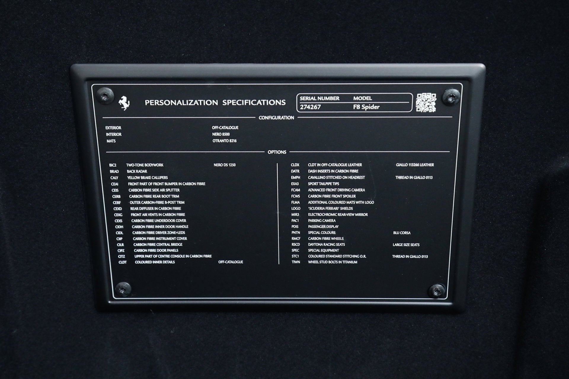 • Embroidered Cavallino emblem on headrest (Filo Giallo)