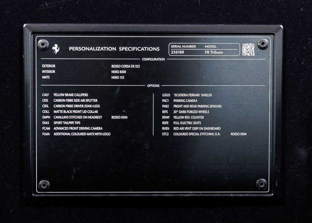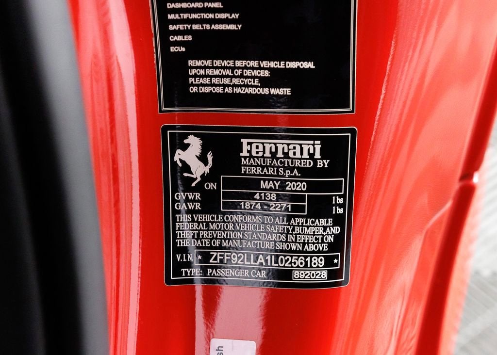 SALE PENDING! Wide World Ferrari is proud to present this exceptional 2020 Ferrari F8 Tributo, a beautifully specified example of Ferraris final evolution of the legendary mid-engine V8 berlinetta. Showing just 6,264 miles and accompanied by a clean Carfax, this F8 Tributo represents the pinnacle of Ferraris twin-turbocharged V8 performance lineage, blending cutting-edge aerodynamics, breathtaking speed, and unmistakable Italian design. Finished in iconic Rosso Corsa over Nero, this F8 Tributo embodies Ferraris racing heritage with a timeless yet aggressive presence. Yellow brake calipers provide a vibrant contrast behind the 20 forged Nero painted rims, while the Scuderia Ferrari shields on the fenders proudly reference the brands Formula 1 pedigree. Carbon fibre exterior appointments, including the carbon fibre side air splitter, add both visual drama and aerodynamic efficiency. A matte black bonnet upper insert introduces an additional motorsport-inspired accent, while sport exhaust pipes complete the rear with a purposeful, performance-focused look. Inside, the cockpit is unmistakably Ferrari driver focused, immersive, and crafted with motorsport inspiration throughout. The carbon fibre driver zone with integrated LED shift lights on the steering wheel places Formula 1derived technology directly at the drivers fingertips. A striking yellow rev counter dominates the instrument cluster, reinforcing the cars high-performance character. The interior is further elevated by Rosso special stitching, Rosso embroidered Cavallino headrests, and red rings on the dashboard vents, creating a cohesive and dramatic contrast against the Nero cabin. Comfort and technology are equally well considered. Full-electric seats provide tailored support and adjustability, while coloured floor mats with the Ferrari logo add a bespoke finishing detail. Practical features include an advanced front driving camera, rear parking camera, and front and rear parking sensors, making maneuvering effortless despite the cars supercar performance capabilities. Additionally, the car is Ferrari Approved and eligible for up to a 2-year Ferrari Certification warranty (available at an additional charge). As the only 4-Time Cavallino Winning Ferrari Center in the tri-state area and one of the first Ferrari Centers in North America, we pride ourselves on exceptional service. We assist with all aspects of your purchase, including trade-ins, shipping, registration, non-reported financing, and customizations. Conveniently located in Rockland County, just under 30 miles from Manhattan. For more information, email us at ferrarivip@newcountry.com or call 845-682-0129. Visit us at 101 Route 59, Spring Valley, NY 10977 to schedule a video walkaround or an in-person visit today! ROSSO CORSA NERO YELLOW BRAKE CALIPERS CARBON FIBRE SIDE AIR SPLITTER CARBON FIBRE DRIVER ZONE+LEDS BONNET UPPER INSERT BLACK MATT HORSE STITCHED ON HEADREST ROSS SPORT EXHAUST PIPES ADVANCED FRONT DRIVING CAMERA COLOURED MATS WITH LOGO 'SCUDERIA FERRARI' SHIELDS PARKING CAMERA FRONT AND REAR PARKING SENSORS 20 FORGED NERO PAINTED RIMS YELLOW REV.