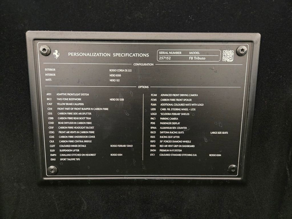 Highly Optioned! Ferrari of Las Vegas is pleased to offer this stunning F8 Tributo we recently picked up on trade. Literally every option was checked when designing this Ferrari. Over $120,000 in factory options make this F8 truly on of a kind! Finished in a timeless Rosso Corsa exterior with Nero interior this Ferrari looks as good as it drives! Buy with confidence from Southern Nevada's only authorized Ferrari dealer! Authorized Ferrari Retailer Perfect Color Combo! Clean Carfax No Accident Vehicle Ferrari Approved Certified Pre-Owned Program Over $120,000 In Options! Rosso Corsa Exterior Nero Interior AFS System $2531 Yellow Brake Calipers $1519 Suspension Lifter $5062 Carbon Fiber Steering Wheel + LEDS $5062 Scuderia Shields $1856 Premium Hi-Fi System $6243 Horse Stitched On Headrests $1266 Front Bumper Insert In Carbon Fiber $3375 Carbon Fiber Side Splitter $3712 Engine Covers In Carbon Fiber $7931 Rear Diffuser In Carbon Fiber $11812 Carbon Fiber Headlight Bucket $3375 Front Air Vents in Carbon Fiber $4219 Carbon Fiber Under Door Cover $8606 Carbon Fiber Rear Lid Accent $2531 Carbon Fiber Center Console $2869 Leather Seat Piping $1181 Sports Exhaust Pipes $759 20' Forged Diamond Wheels $8100 Logo Overmats $1350 Passenger Display $4556 Aluminum Tachometer $979 Special Stitching $759 Two-Tone Bodypainting $11,812 Daytona Racing Seats $10,799 Racing Seat Lifter $2531 All Books & Keys All Service Up To Date Trades Accepted Shipping Available! Authorized Dealer Buy with confidence from Southern Nevada's premier luxury and exotic car dealership Towbin Motorcars! We hand-select only the finest vehicles to offer to the public. All of our quality pre-owned vehicles undergo and extensive reconditioning process to ensure that only the finest examples are offered for sale. Call 702-932-7100