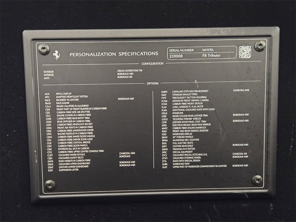 Massive Window! Ferrari of Las Vegas is pleased to offer this stunning F8 Tributo we recently picked up! Literally every option was checked when designing this Ferrari. Over $150,000 in factory options make this F8 truly on of a kind! Finished in a timeless Grigio Silverstone exterior with Bordeaux interior this Ferrari looks as good as it drives! Buy with confidence from Southern Nevada's only authorized Ferrari dealership! Authorized Ferrari Retailer Perfect Color Combo! Clean Carfax No Accident Vehicle One-Year CPO Included! Over $150,000 In Options! Grigio Silverstone Exterior Bordeaux Interior AFS System $2531 Aluminum Brake Calipers $1519 Suspension Lifter $5062 Electrochromic Rearview Mirror $1350 Carbon Fiber Driver Zone + LEDS $7593 Colored Safety Belts $928 Scuderia Shields $1856 Full Electric Seating $7300 Exterior Sill Kick In Carbon $2025 Premium Hi-Fi System $6243 Horse Stitched On Headrests $1266 Specific Design Seats $3375 Apple Carplay $4219 Leather Seat Backrest $1519 Back Radar $2767 Front Bumper Insert In Carbon Fiber $3375 Carbon Fiber Side Splitter $3712 Engine Covers In Carbon Fiber $7931 Rear Diffuser In Carbon Fiber $11812 Carbon Fiber Headlight Bucket $3375 Front Air Vents in Carbon Fiber $4219 Carbon Fiber Under Door Cover $8606 Carbon Fiber Racing Panels $1687 Carbon Fiber Rear Lid Accent $2531 Inner Door Handles In Carbon Fiber $4219 Carbon Fiber Center Console $2869 Out Door Panels In Carbon Fiber $6918 Carbon Fiber Upper Tunnel Trim $4050 Leather Seat Piping $1181 Carbon Fiber Dashboard Accents $6750 Upper Dashboard In Leather $1181 Lower Zone Passenger Compartment In Leather $1350 Titanium Tailpipes $2531 Forged Gloss Silver Wheels $6243 Homelink $1350 Front & Rear Parking Sensors $1519 Surround View $6075 Logo Overmats $1350 Leather Passenger Compartment $3206 Center Part Of Door Panel In Leather $1181 Passenger Display $4556 Aluminum Tachometer $979 Lower Bench In Leather $1687 Special Stitching $759 Upper Part Of Passenger Trim In Leather $2362 All Books & Keys All Service Up To Date Trades Accepted Shipping Available! Authorized Dealer Buy with confidence from Southern Nevada's premier luxury and exotic car dealership Towbin Motorcars! We hand-select only the finest vehicles to offer to the public. All of our quality pre-owned vehicles undergo and extensive reconditioning process to ensure that only the finest examples are offered for sale. Call 702-932-7100
