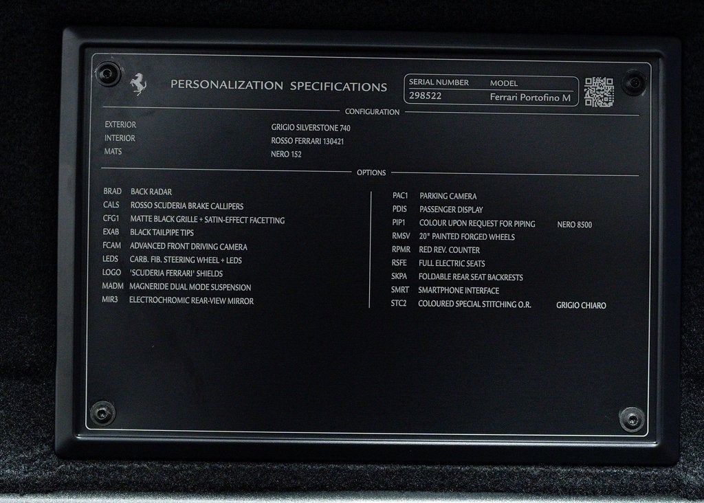 Wide World Ferrari is thrilled to present this striking 2023 Ferrari Portofino M, a refined evolution of Ferraris open-top grand tourer that seamlessly blends everyday usability, sculptural beauty, and legendary performance. With just 2,150 miles, one meticulous owner, and a clean history, this Portofino M is a showcase of Italian design and driving passion, originally commissioned and delivered by our dealership. Finished in the sophisticated Grigio Silverstone, this Portofino M exudes elegance with a subtle yet commanding presence. Its exterior is enhanced by 20-inch forged wheels in Liquid Silver, Rosso Scuderia brake calipers, and iconic Scuderia Ferrari shields on the fenders. The black ceramic-coated tailpipes and front grille with chrome accents bring added refinement and contrast, completing the cars aggressive yet luxurious profile. Inside, the cabin is trimmed in rich Rosso Ferrari leather, beautifully contrasted by Grigio Chiaro special stitching and Nero piping on the seats. The full-electric seats with memory function ensure personalized comfort for both driver and passenger, while the folding rear seat backrests with ski passage add practicality without compromising elegance. A carbon fiber steering wheel with integrated LEDs provides a tactile connection to Ferraris racing DNA, and the passenger display allows your co-pilot to share in the driving experience. A red tachometer stands out as a bold centerpiece, further underscoring the cars performance focus. This Portofino M is equipped with cutting-edge driver assistance and convenience features, including Blind Spot Detection, rear radar, an Advanced Front Driving Camera, a rear parking camera, and electrochromic exterior rearview mirrors. The Dual Mode MagneRide suspension delivers adaptive comfort and precision handling, while smartphone connectivity ensures a seamless integration of technology and luxury. Additionally, the car is Ferrari Approved, with eligibility for up to a 2-year Ferrari Certification warranty, available at an additional charge. This car benefits from active warranty until December 2026 and complimentary maintenance until December 2030. As the only 4-Time Cavallino Winning Ferrari Center in the tri-state area and one of the first Ferrari Centers in North America, we are dedicated to providing exceptional service. We assist with all aspects of your purchase, including trade-ins, shipping, registration, non-reported financing, and customizations. Conveniently located in Rockland County, just under 30 miles from Midtown Manhattan. For more information, email us at ferrarivip@newcountry.com or call us at 845-682-0129. Visit us at 101 Route 59, Spring Valley, NY 10977.