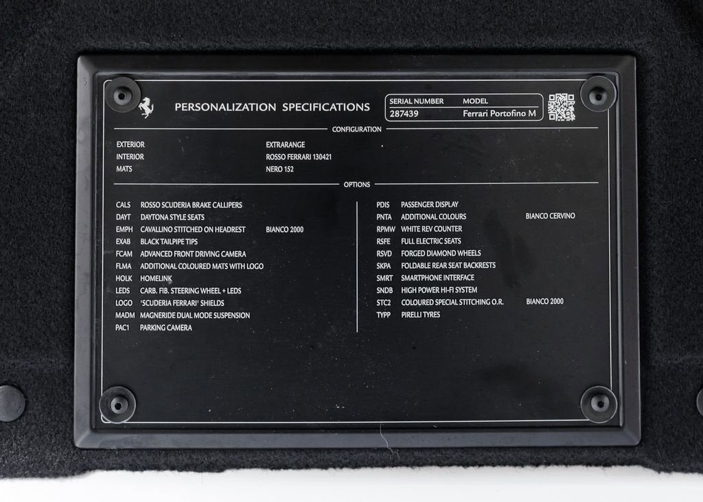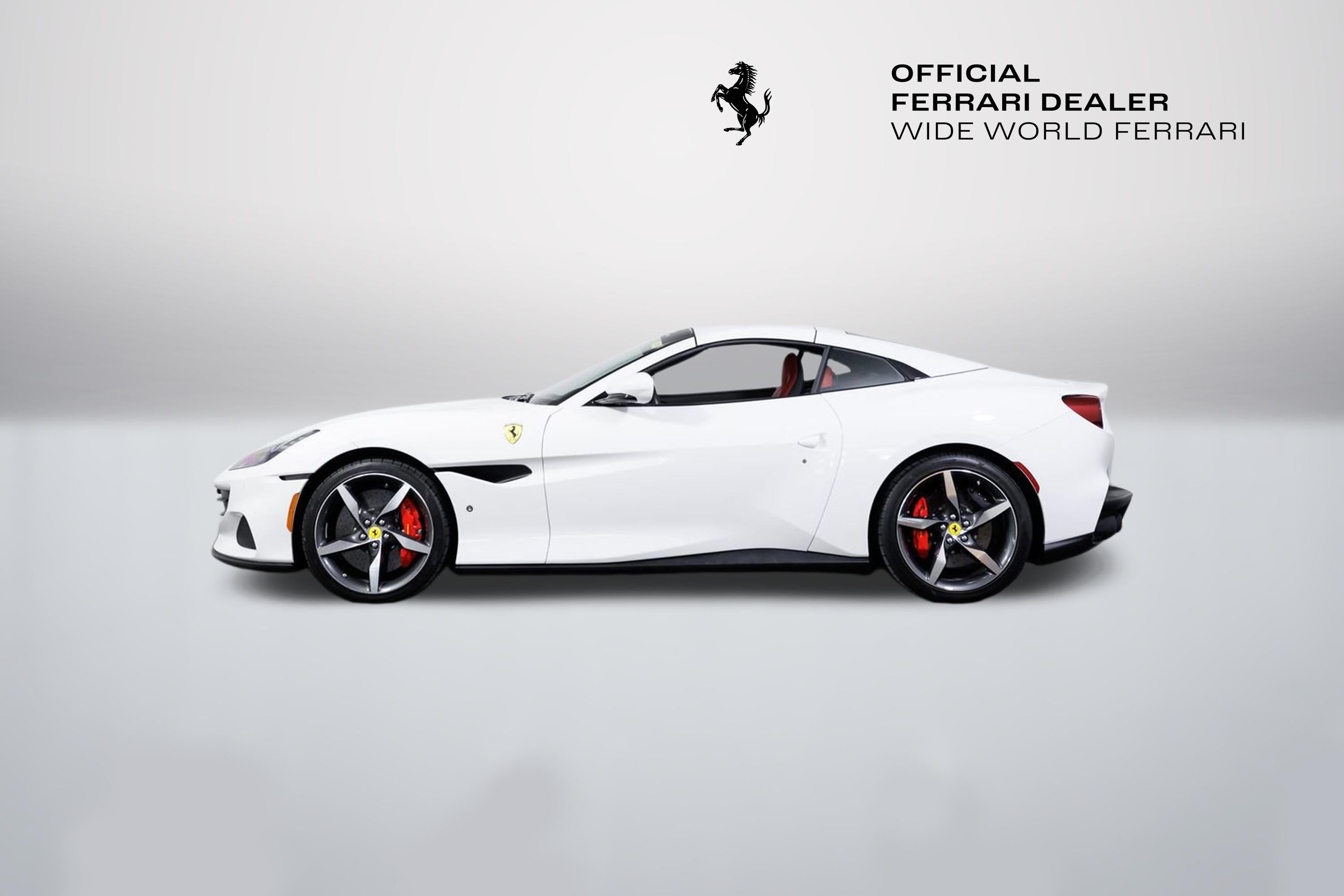 Wide World Ferrari is proud to present this exceptional 2023 Ferrari Portofino M, a beautifully specified example of Ferraris refined and versatile grand touring convertible. Showing just 4,129 miles and accompanied by a clean Carfax and one-owner history, this Portofino M perfectly balances exhilarating performance with everyday usability, delivering open-air driving in unmistakable Italian style. Finished in elegant Bianco Cervino over a striking Rosso Ferrari interior, this Portofino M offers a sophisticated yet sporty presence. Rosso Scuderia brake calipers stand out vividly behind the 20 Dynamic forged wheels with a diamond-polished finish, while the iconic Scuderia Ferrari shields on the fenders proudly reference the marques racing pedigree. Black ceramic-coated tailpipes provide a modern and aggressive contrast at the rear, complementing the cars sleek and aerodynamic design. Inside, the cabin is a seamless blend of luxury, craftsmanship, and performance-focused design. Daytona-style seats are upholstered in rich Rosso Ferrari leather and accented with special Bianco stitching, creating a bold and elegant contrast. Embroidered Cavallino headrests in Bianco further elevate the interior, while the white tachometer dial face adds a distinctive and driver-centric focal point to the instrument cluster. The carbon fibre steering wheel with integrated LED shift lights brings Formula 1-inspired technology directly to your fingertips, enhancing the immersive driving experience. A passenger display ensures your co-pilot remains engaged, showcasing real-time performance data. Comfort and advanced technology are thoughtfully integrated throughout. Full-electric seats with memory function provide personalized comfort, while overmats with embroidered vehicle logos add a bespoke finishing touch. The dual-mode MagneRide suspension delivers an exceptional balance between dynamic handling and ride comfort, making the Portofino M equally at home on spirited drives or long-distance touring. Practicality and convenience are equally impressive. Features such as the advanced front driving camera, rear parking camera, and front and rear parking sensors make maneuvering effortless. Folding rear seat backrests with a ski passage enhance versatility, while the Homelink home access system and smartphone connectivity provide modern convenience. A premium Hi-Fi sound system ensures an exceptional audio experience, perfectly complementing every drive. Additionally, the car is Ferrari Approved and eligible for up to a 2-year Ferrari Certification warranty (available at an additional charge). Currently benefits from complimentary maintenance until March 2030. As the only 4-Time Cavallino Winning Ferrari Center in the tri-state area and one of the first Ferrari Centers in North America, we pride ourselves on exceptional service. We assist with all aspects of your purchase, including trade-ins, shipping, registration, non-reported financing, and customizations. Conveniently located in Rockland County, just under 30 miles from Manhattan. For more information, email us at ferrarivip@newcountry.com or call 845-682-0129.