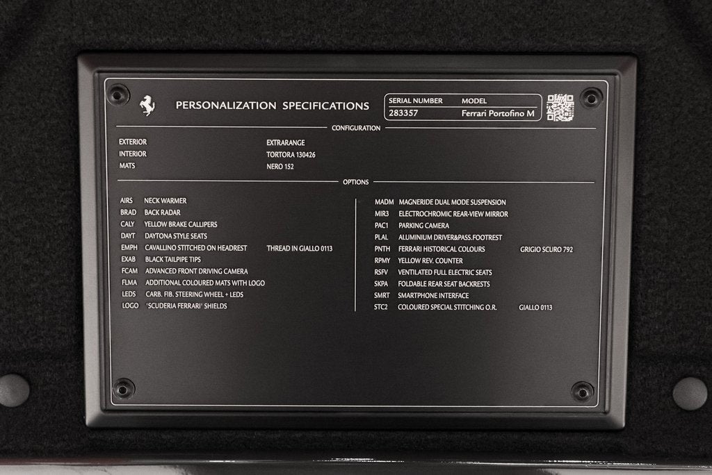 Ferrari of Lake Forest is Proud to Present this Certified Pre Owned 2022 Ferrari Portofino M Finished in Historic Grigio Scuro over Tortora Leather Interior. This Ferrari Portofino M is Optionally Equipped with: Giallo Brake Calipers Black Tailpipes Scuderia Ferrari Shields Magneride Duel Mode Suspension Parking Camera Carbon Fiber Steering Wheel with LEDs Neck Warmer Back Radar Daytona Style Seats Cavallino Stitched on Headrests in Giallo Advanced Front Driving Camera Colored Mats with Logo Electrochromic Rear View Mirror Aluminum Driver and Passenger Footrests Giallo Rev Counter Ventilated Full Electric Seats Foldable Rear Seat Backrests Smartphone Interface Colored Special Stitching in Speciale Giallo This Portofino M has been enhanced with a set of Vossen wheels, a set of OEM wheels is included with the purchase. The Ferrari Portofino M is a refined coastal cruiser with a mischievous streak. Its twin-turbo V8 delivers effortless thrust, while the updated gearbox and sharper chassis give it a livelier edge than the original Portofino. Roof up or down, it feels polished, quick and quietly confident, blending everyday comfort with the unmistakable sparkle of a true Ferrari. The Ferrari Certified Pre Owned Coverage is Included in our asking price. For more information on this Ferrari Portofino M call one of our Ferrari Specialists today at 847.295.6560