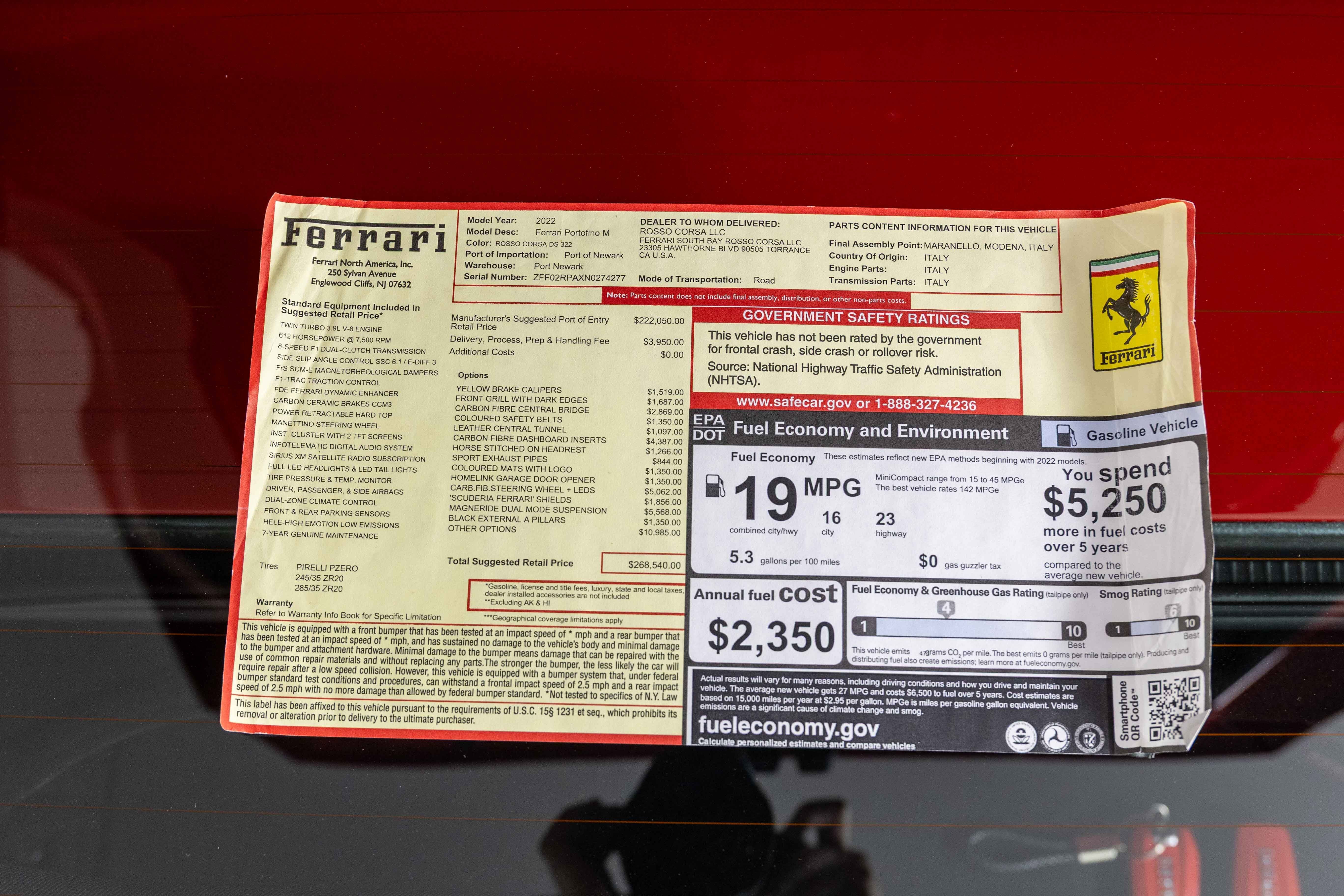 Ferrari South Bay is delighted to offer this gorgeous Factory Certified, One-Owner Ferrari Portofino M finished in iconic Rosso Corsa with Beige Tradizione Leather interior stitched and piped in Nero. The legendary M’ suffix, for Modificata, in its name, is a nod to the evolution of the Ferrari Portofino. This current Prancing Horse 2+ spider GT Ferrari boasts a slew of new technical and design features, most notably the new 8-speed dual-clutch gearbox with upgraded power of 620hp and a five-position Manettino, an absolute first for a Ferrari GT hard-top convertible. Each trip in this Portofino M an exercise in spirited driving. Quite literally the definition of a Grand Touring Ferrari: capable of crossing the country in comfort, hitting apexes at the racetrack, or cruising with the top down on your favorite coastal road. The Exterior of this Portofino M is finished in Ferrari's Historic Rosso Corsa and the A-Pillars are finished in black. Upgrades include 20 Dynamic Forged Wheels in Glossy Black surrounding Carbon Ceramic Brakes with Yellow Calipers. Scuderia Ferrari shields grace the front fenders, and Black Ceramic Exhaust Pipes handle duties out back. The Magneride Dual-Mode Suspension ensures your ride is smooth and supple, regardless the condition of the road. Inside you will find stylish Beige Tradizione leather with Full Electric Seats accentuated by Nero leather Piping and Stitching (including the Cavallinos embroidered into the seat headrests). Carbon Fiber is the standout material on the interior, and is present on Dashboard Inserts, Central Bridge and Exterior Sill Kicks. The driver, of course, is the center of the action and is treated to a Carbon Fiber Steering Wheel (with Ferrari's now-famous LED shift lights) in front of Carbon Fiber Shift Paddles. An aluminum foot rest helps your passenger brace themselves when the going gets twisty. Rear Parking Sensors make maneuvering in tight spaces a snap. This Portofino M has passed Ferrari's 101-point Certification inspection and is eligible for a two-year Ferrari Warranty at the time of purchase. The Ferrari Genuine Maintenance is effective through March 26, 2029. The car is offered complete with 2 keys, battery tender, car-cover and owner's manual. Please contact our knowledgeable sales staff for more information or to set up a viewing in our showroom. Ferrari South Bay is proudly part of Holand Automotive Group, one of North America’s leading luxury automotive retailers. We offer nationwide shipping, trade-in opportunities, financing, client consignments, and world-class delivery service. Contact us today to explore ownership of this remarkable SF90 Spider. Please visit us at 23305 Hawthorne Blvd, Torrance, CA 90505, or call us at (888) 578-8767.