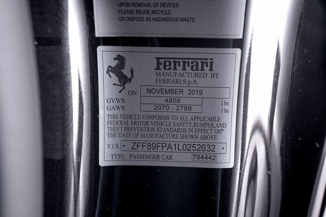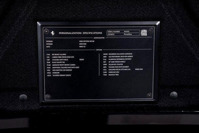 Ferrari of Long Island is excited to present to you the beautiful Ferrari Portofino Finished in Nero Daytona over Nero interior with Rosso stitching. This highly optioned model has the following options. -ROSSO CORSA BRAKE CALIPERS -SCUDERIA FERRARI FENDER SHIELDS -20 INCH FORGED WHEELS WITH MATTE GRIGIO CORSA FINISH -YELLOW TACHOMETER -ADVANCED FRONT DRIVING CAMERA -DUAL MODE MAGNERIDE SUSPENSION -FOLDING REAR SEAT BACKRESTS -SURROUND VIEW -ELECTROCHROMIC EXTERIOR REAR VIEW MIRRORS This Ferrari has passed a multi-point inspection performed by our factory trained technicians, and has been enrolled in the Ferrari Approved Certified Pre-Owned Program. The Certified program makes available up to two years of additional Ferrari Power Approved Warranty coverage. Please see dealer for more details.