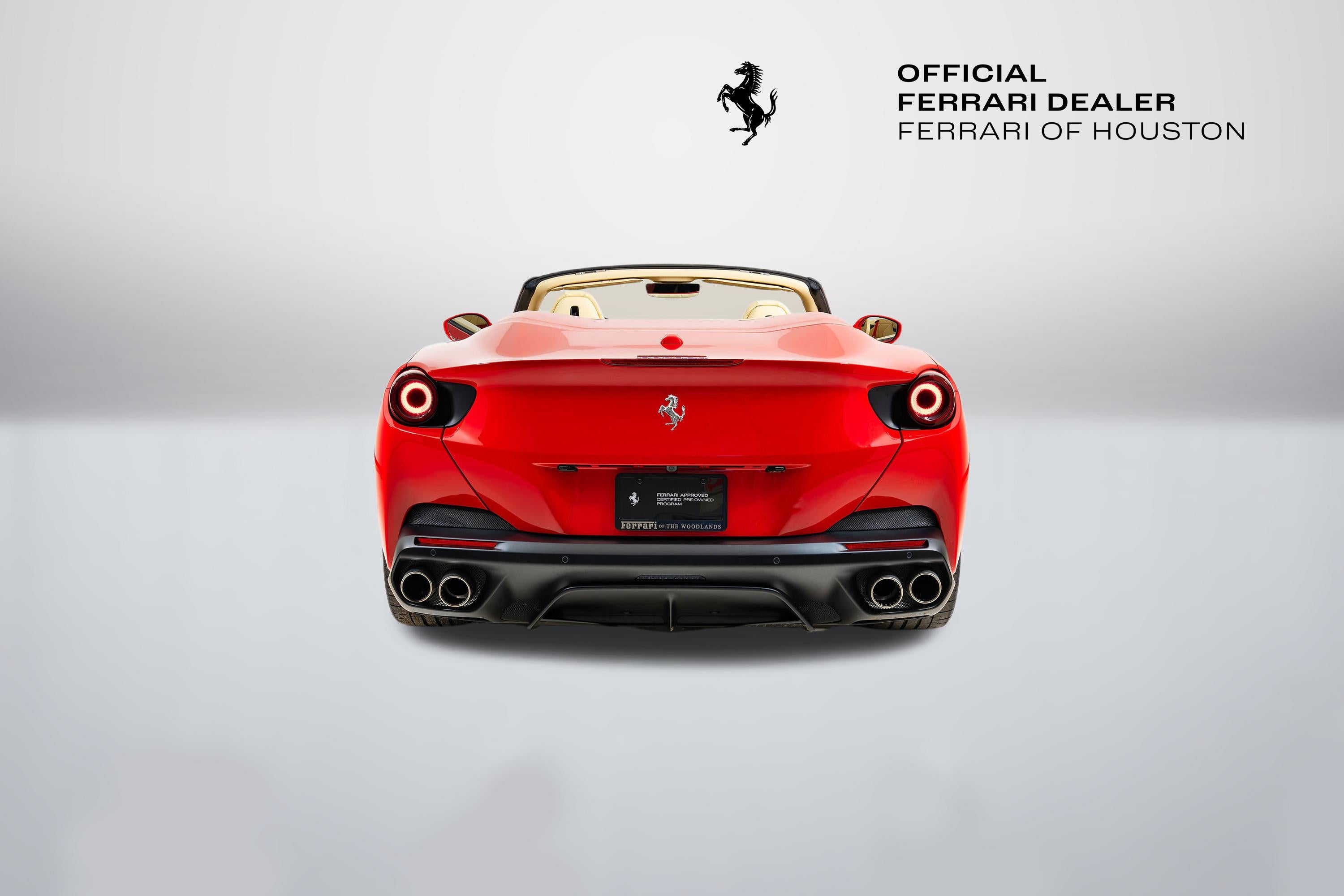 The Ferrari Portofino is one of our most popular Ferrari models, offering breathtaking Ferrari performance, stunning styling, and a distinctive Ferrari driving experience. It offers tremendous flexibility, from stylish coupe to convertible in 14 seconds, daily use, weekend touring, or even a weekend track day. This one-owner 2020 Portofino was originally sold new by Ferari of Houston and has covered only 1,087 miles. It was tastefully ordered in classic Rosso Corsa paint over Crema leather. It has a tremendous list of desirable factory options, including Magneride Dual Mode Suspension. This Portofino is of course Ferrari Approved, and has completed a comprehensive 101 Point Ferrari inspection, and has had all service, updates, recalls, and service bulletins performed. It is complete with all keys, books/manuals, car cover and battery charger. This Portofino comes with two years of Ferrari warranty. We offer a number of attractive financing programs through Ferrari Financial Services, including extended financing terms of up to 84 months, leasing, and balloon loan options that offer the flexibility of ownership with the affordable monthly obligation of a lease. Contact us today and let Ferrari of Houston structure a program for you. AFS2ADAPTIVE FRONT LIGHTS + SBL ALCSALCANTARA SEATS INNER TRIMALCANTARA CREMA 1595 ALDPALCANTARA DOOR PANELSALCANTARA CREMA 1595 ALRZALCANTARA REAR WALL TRIMALCANTARA CREMA 1595 BAC1LEATHER UPHOLST. SEAT BACKREST CALRRED BRAKE CALIPERS CFG1FRONT GRILL WITH CHROMED EDGES CRPTCarpets colorsNERO 152 (BLACK) CSB1COLOURED SAFETY BELTSCINTURE ROT (ROSSE) CTU4LEATHER CENTRAL TUNNELCREMA 3997 (CREAM) DAYTDAYTONA STYLE SEATS DSH7LEATHER LOWER DASHBOARDCREMA 3997 (CREAM) EMPHHORSE STITCHED ON HEADRESTROSSO (RED) 0504 EXA3SPORT EXHAUST PIPES EXTCExternal colorsROSSO CORSA DS 322 FLMACOLOURED MATS WITH LOGO HAW1HEAT INSULATING WINDSCREEN HELEHIGH EMOTION LOW EMISSION HOLKHOMELINK GARAGE DOOR OPENER INTCInternal colorsCREMA 3997 (CREAM) LEDPINNER COLOUR DOOR PANNEL TRIM LERZINNER COLOUR REAR LEATHER TRIM LOGO'SCUDERIA FERRARI' SHIELDS MADMMAGNERIDE DUAL MODE SUSPENSION MIR3ELECTROCHROMIC REARWIEW MIRROR PAC3FRONT AND REAR PARKING CAMERAS PIP1COLOUR UPON REQUEST FOR PIPINGROSSO FERRARI 130421 PLALALUMINIUM DRIVER&PASS.FOOTREST RIFS20" FORGED DARK PAINTED RIMS RPMYYELLOW REV.
