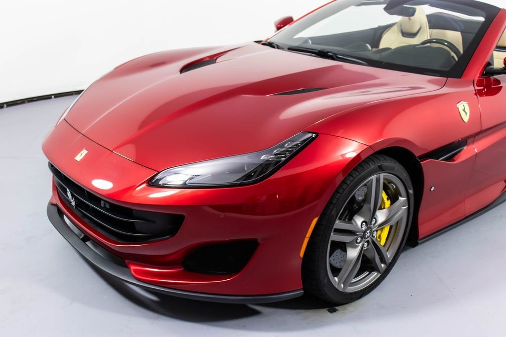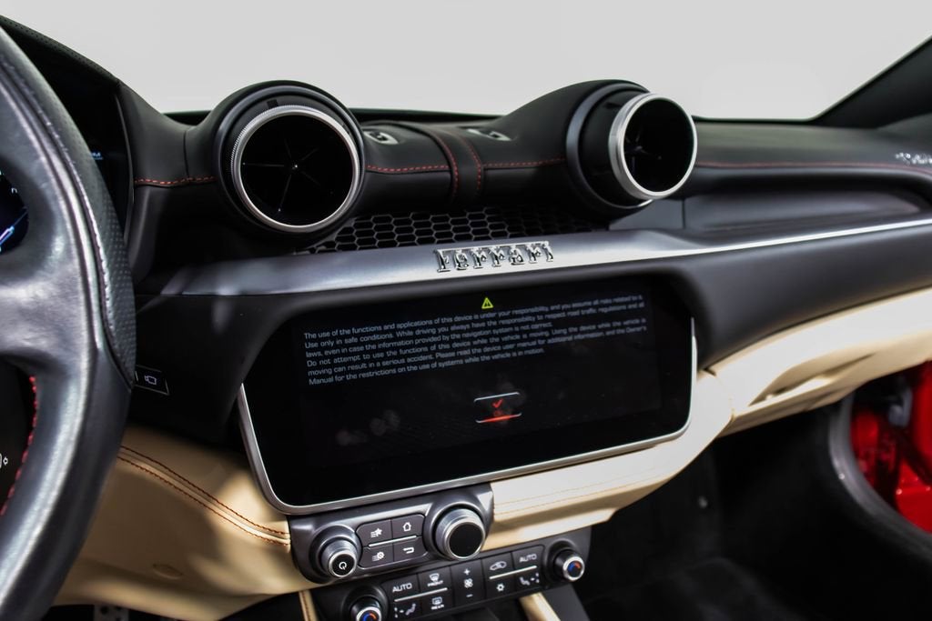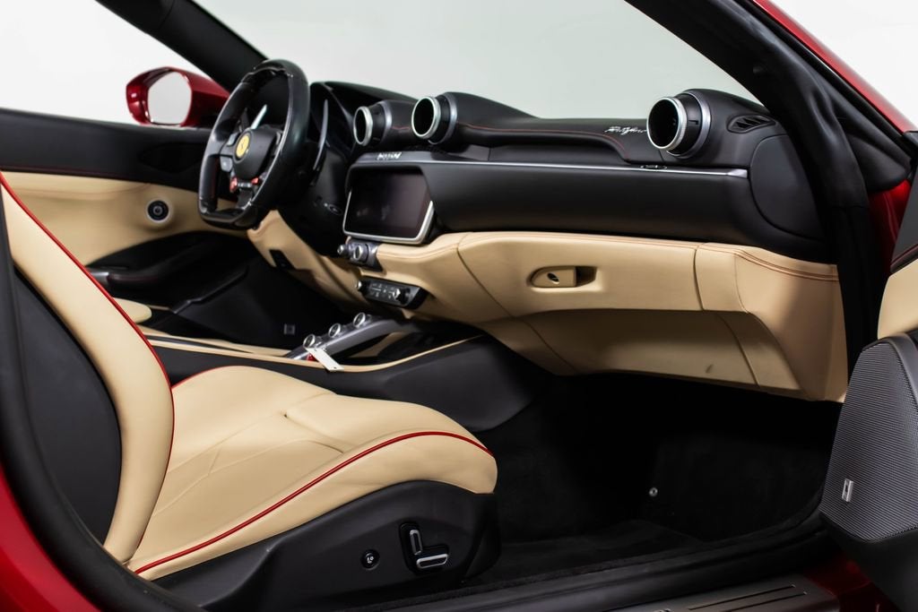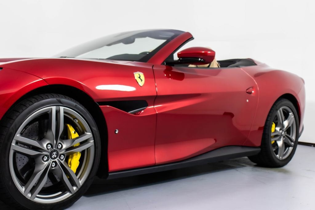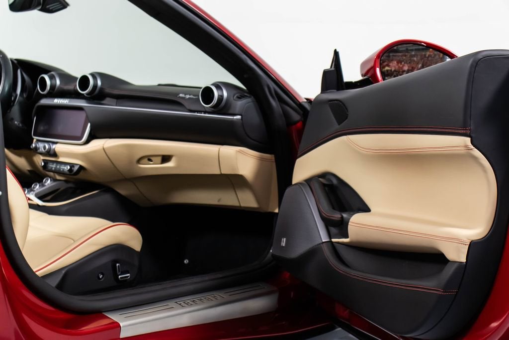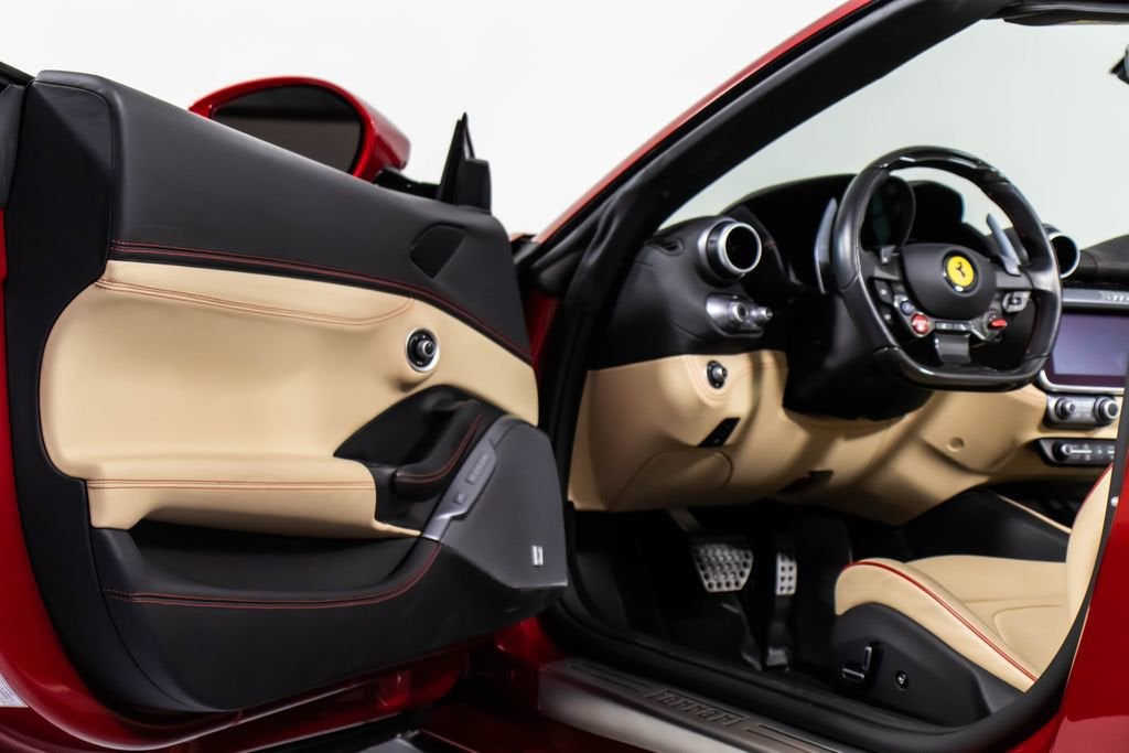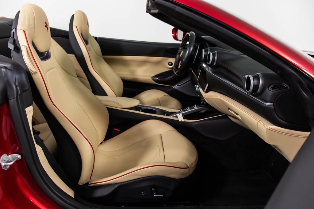 247139 Exterior: Rosso Portofino Interior: Sabbia Mats: Nero 2019 Ferrari Portofino Options: Yellow Brake Calipers Carbon Fiber Hub Caps Cavallino Stitched on Headrest in Rosso Black Tailpipe Tips High Emotion Low Emission Carb. Fib. Steering Wheel + LEDS 'Scuderia Ferrari' Shields Magneride Dual Mode Suspension Parking Camera Color Upon Request for Piping in Rosso Ferrari Special Colors in Rosso Portofino 20 Forged Dark Painted Rims Full Electric Seats High Power Hi-Fi System Colored Special Stitching O.R. in Rosso This 2019 Ferrari Portofino is a striking grand touring convertible finished in the rich and sophisticated Rosso Portofino over a beautifully contrasting Sabbia leather interior with Nero mats. Yellow brake calipers and 20-inch forged dark painted rims give the car a bold, athletic stance, while carbon fiber hub caps and a carbon fiber steering wheel with integrated LEDs reinforce its performance-focused DNA. Inside, Rosso Ferrari piping, Rosso contrast stitching, and a Rosso-stitched Cavallino on the headrests add bespoke detailing that complements the exterior perfectly. Equipped with Magneride dual-mode suspension, a parking camera, full electric seats, and a high-power Hi-Fi system, this Portofino seamlessly blends everyday comfort with thrilling twin-turbo V8 performance. Finished with Scuderia Ferrari shields and black tailpipe tips, this beautifully optioned example captures the essence of open-air Italian elegance and dynamic driving excitement.